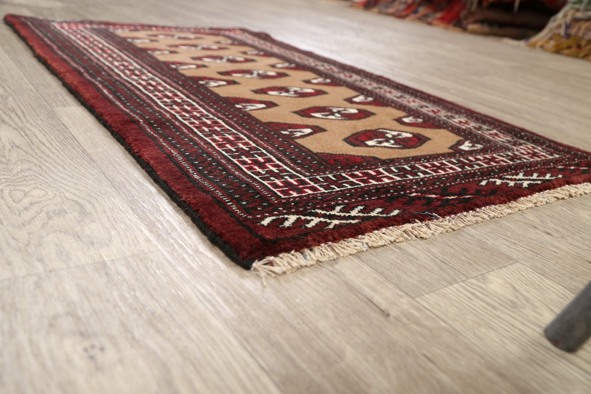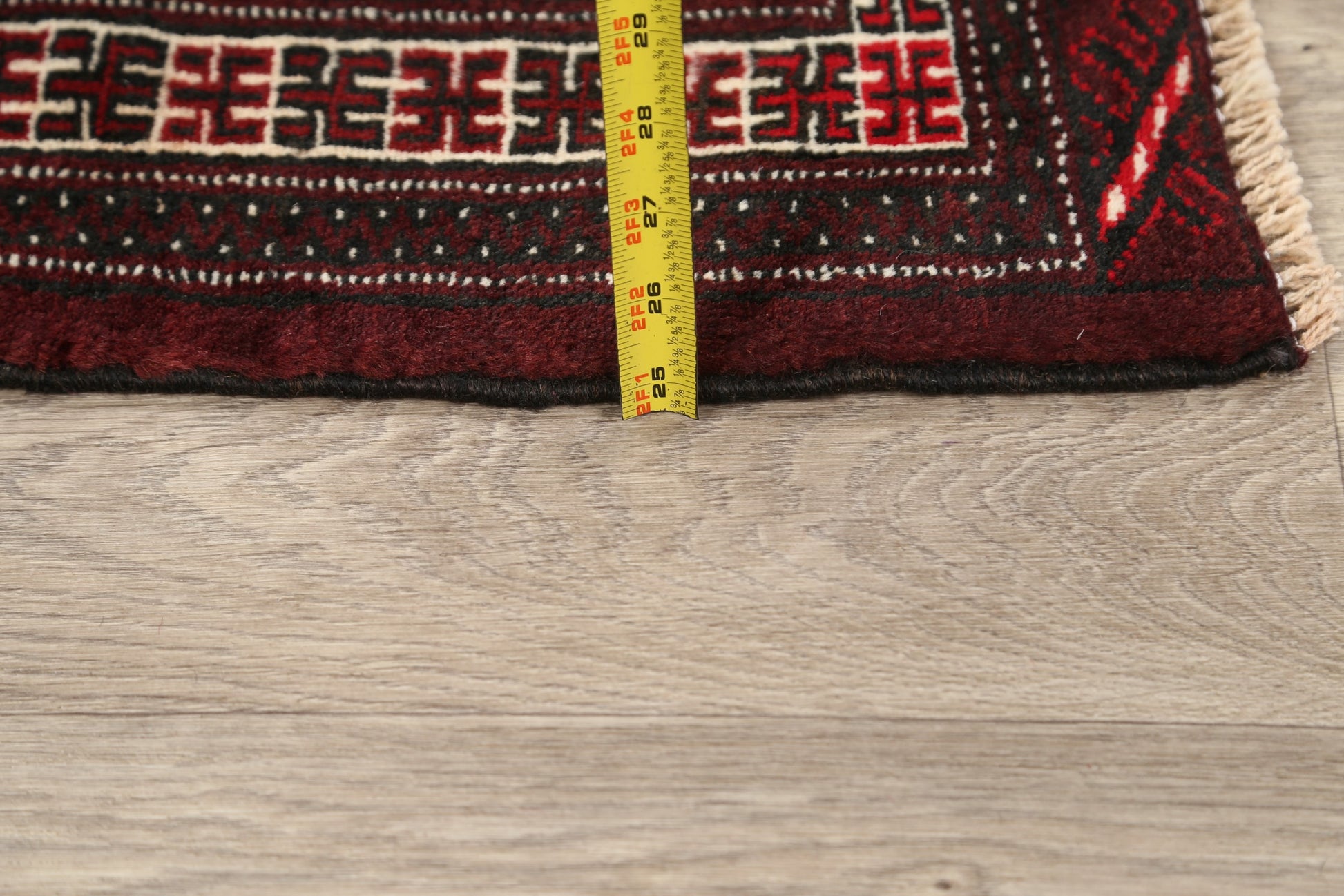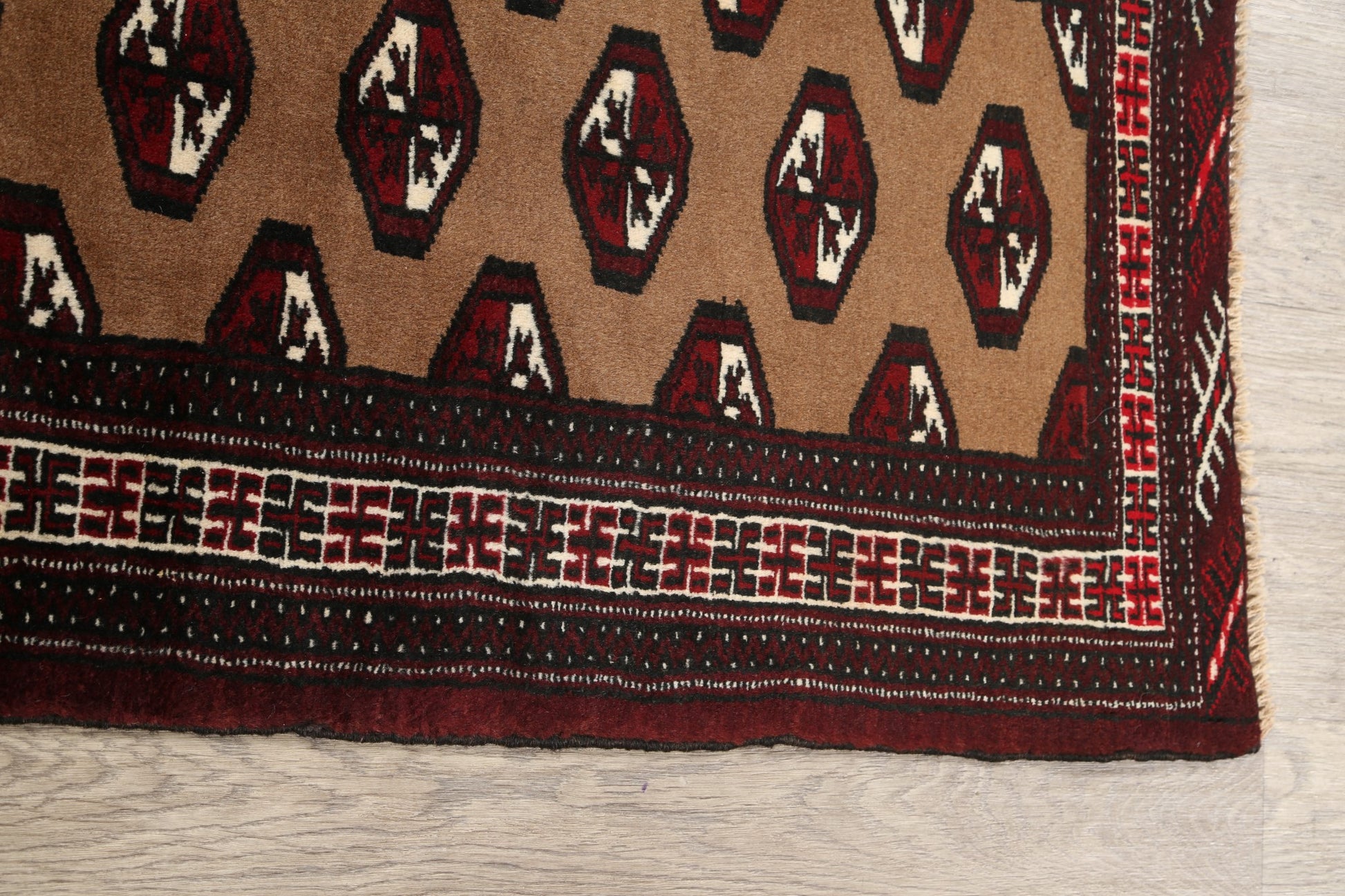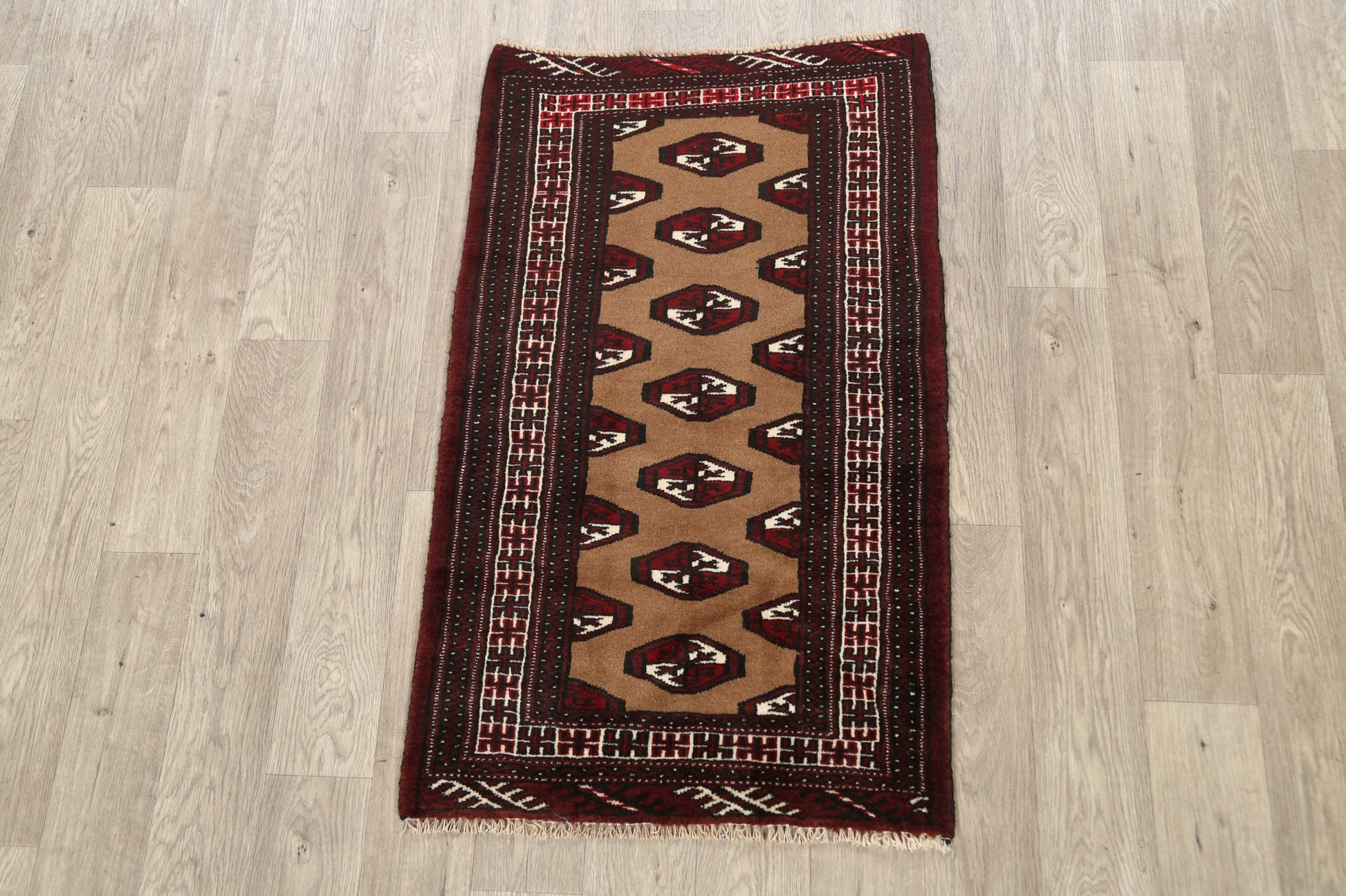 A Beautiful Genuine Persia ( Persia ) Balouch rug is Hand Knotted by skillful weavers in Persia ( Persia ) with 100% Wool Material. This rug is in New, First Quality condition. dimensions are 3' 11'' X 2' 4'' in foot and 119 X 71 in centimeter. the primary color is Brown.