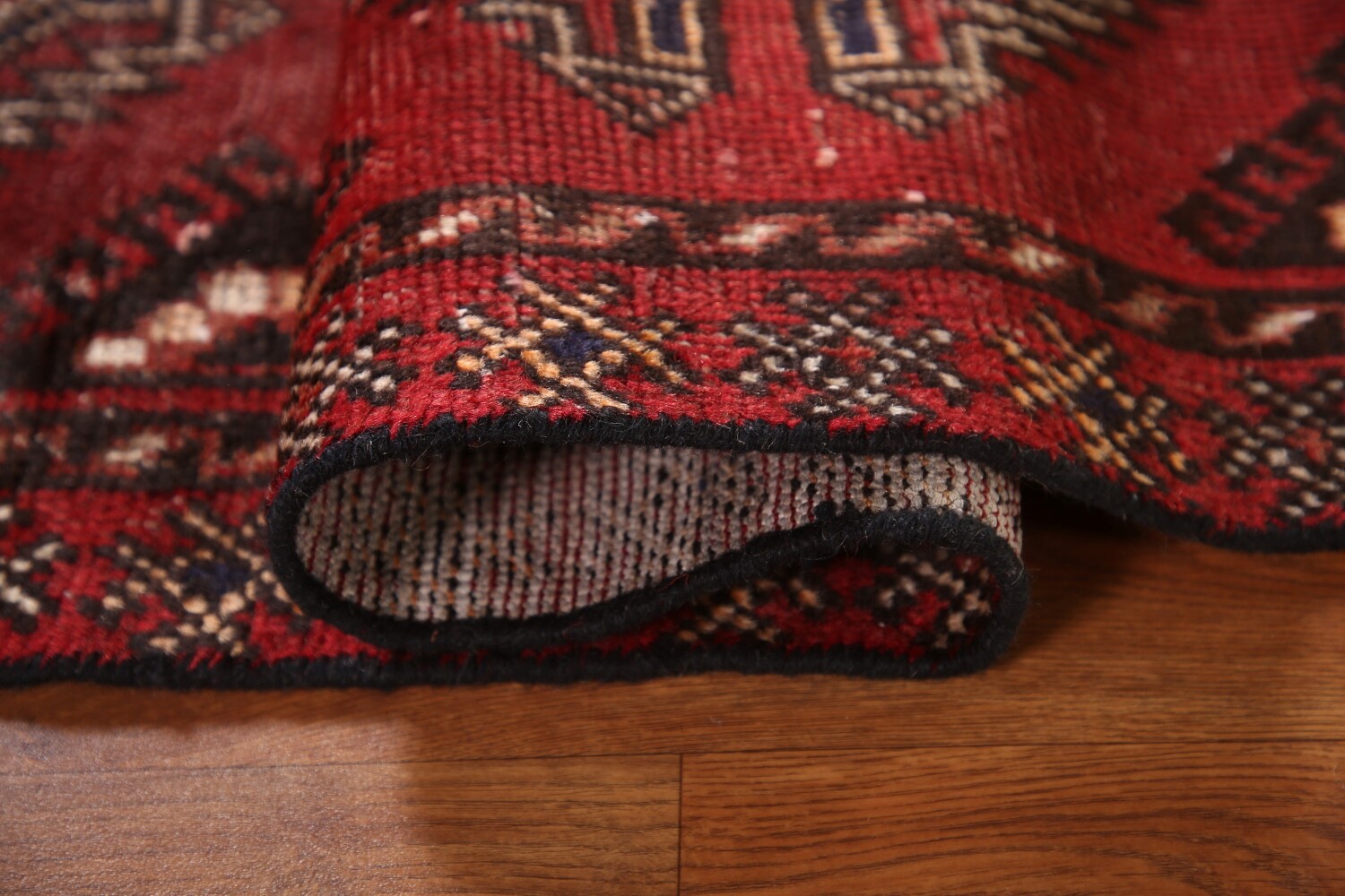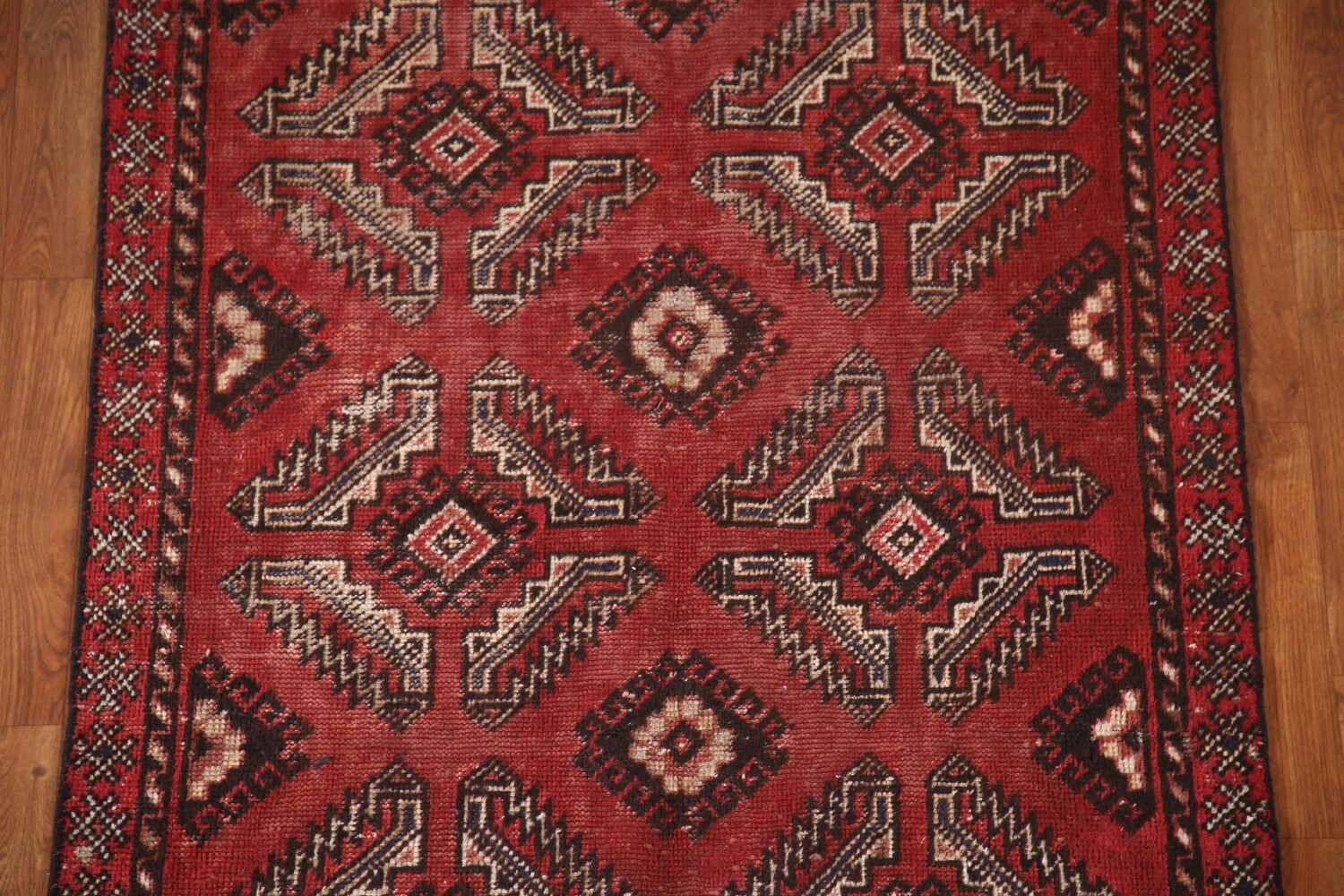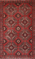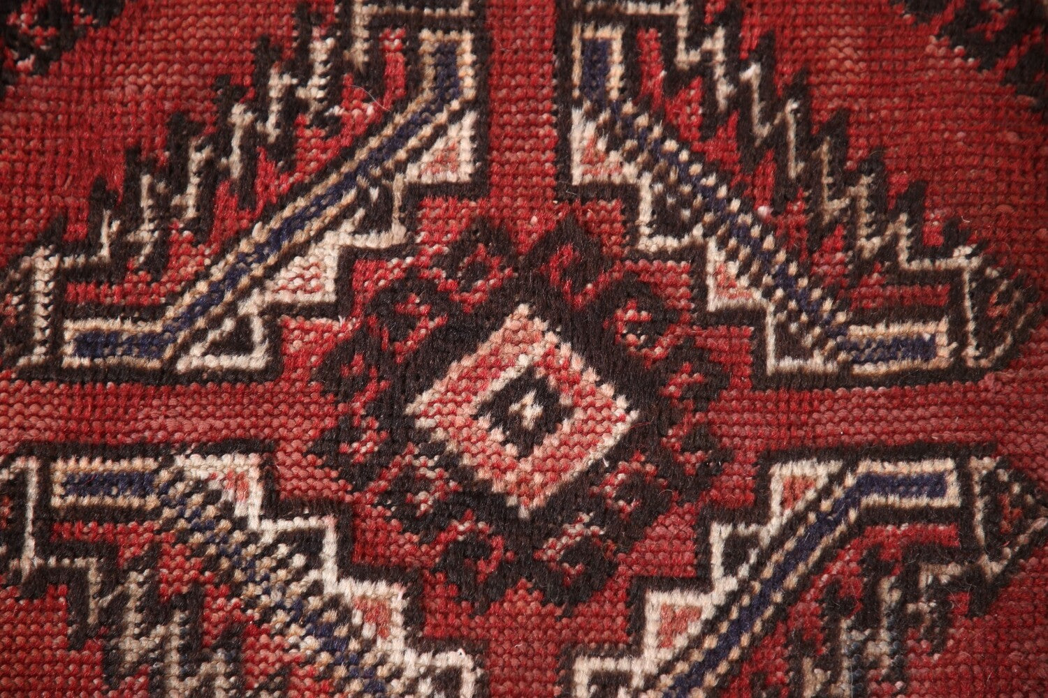 A Beautiful Genuine Persia ( Persia ) Balouch rug is Hand Knotted by skillful weavers in Persia ( Persia ) with 100% Wool Material. This rug is in Very Good (Evenly Low Pile) condition. dimensions are 6' 3'' X 3' 6'' in foot and 191 X 107 in centimeter. the primary color is Red.
