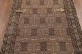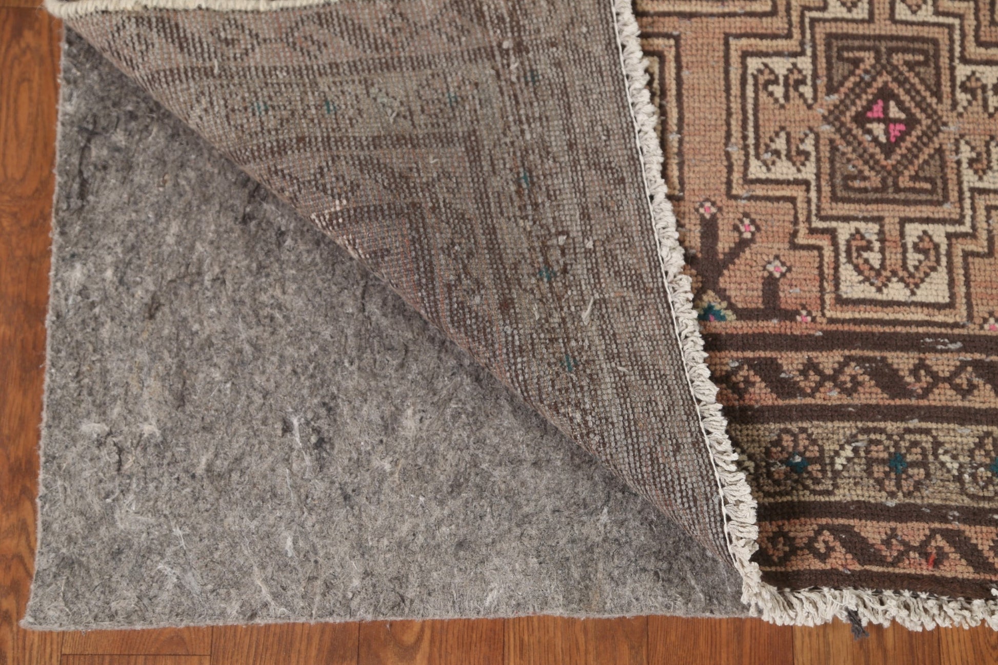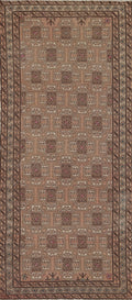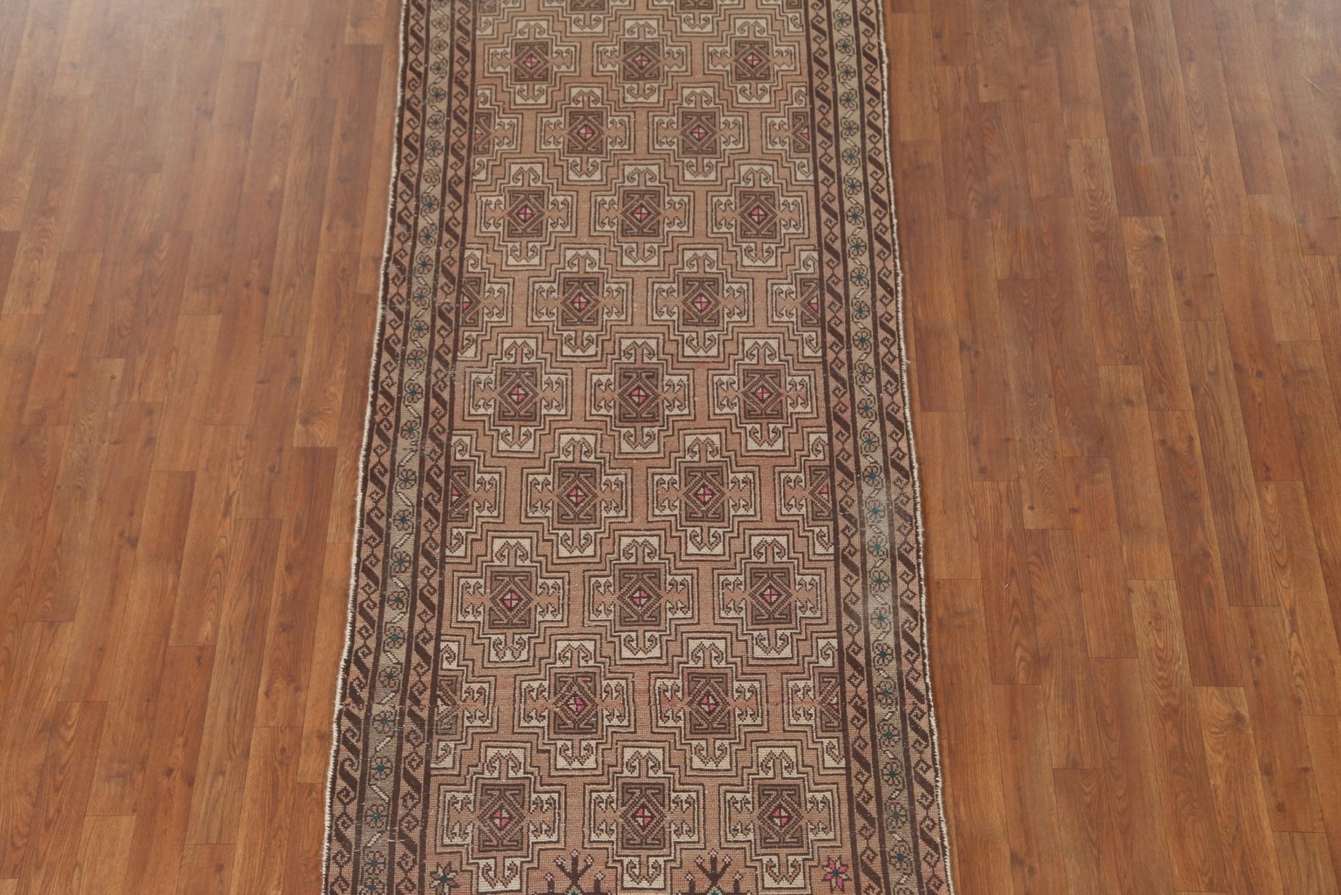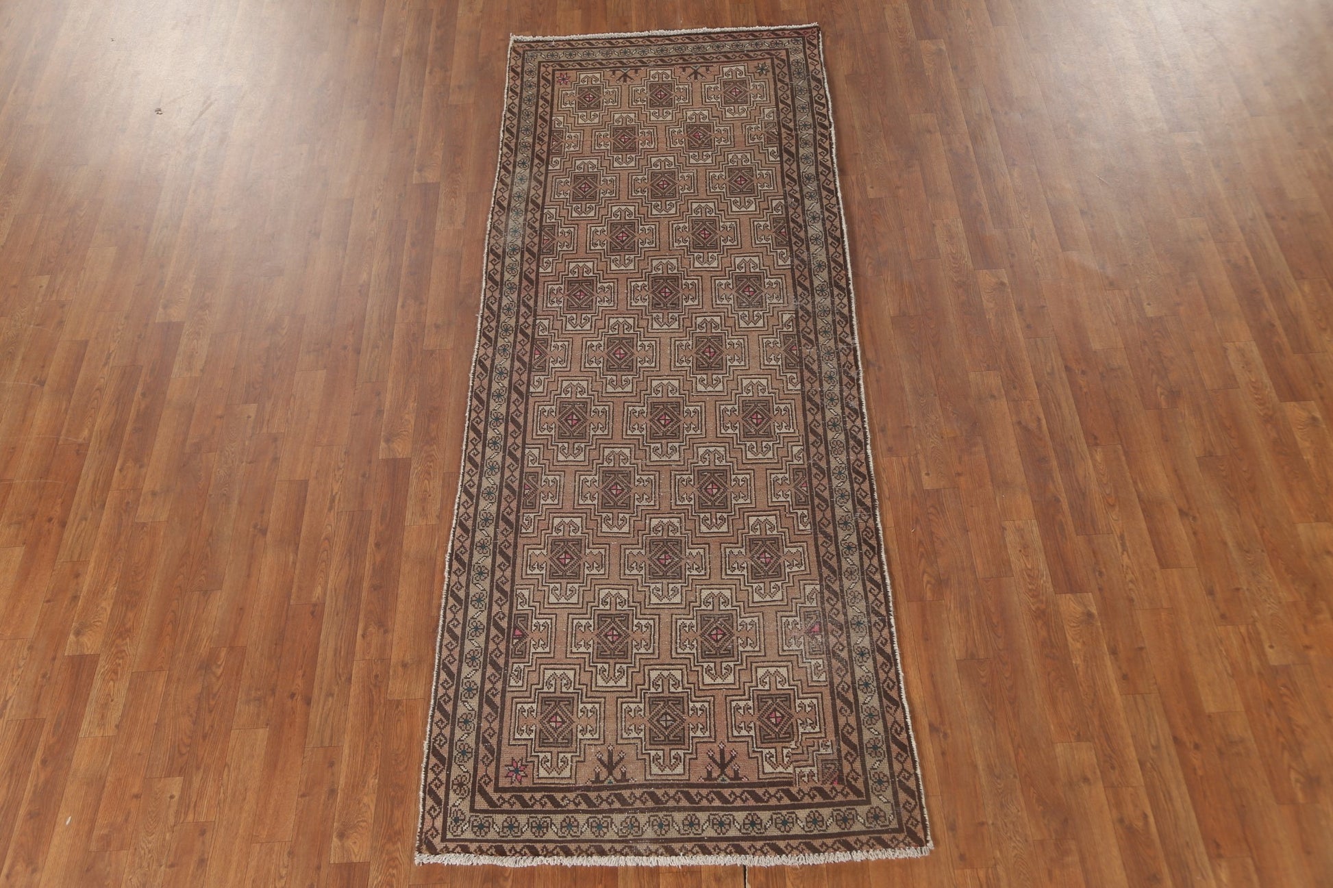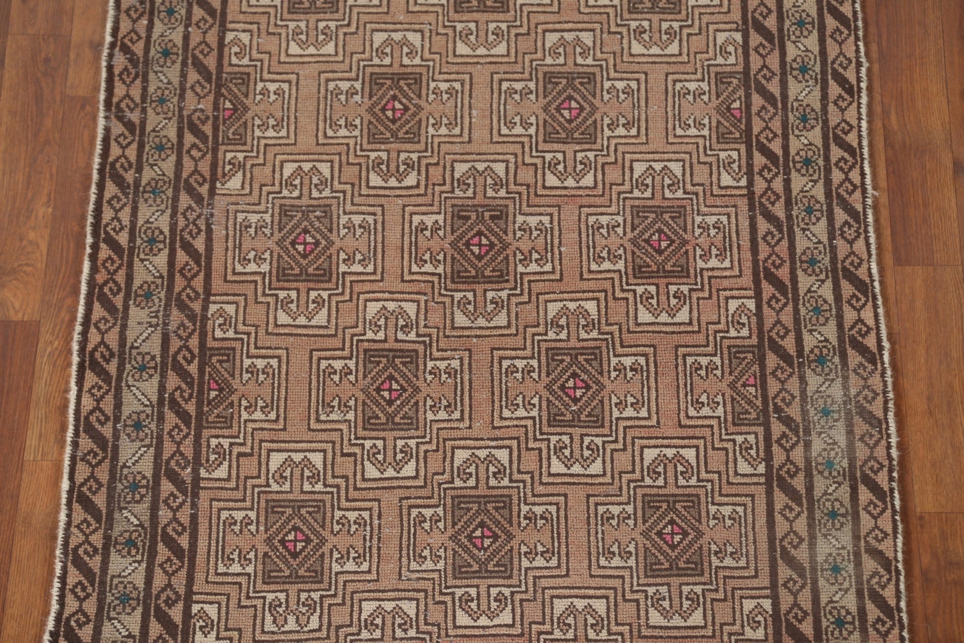 A Beautiful Genuine Persia ( Persia ) Balouch rug is Hand Knotted by skillful weavers in Persia ( Persia ) with 100% Wool Material. This rug is in Very Good (Evenly Low Pile-Repair) condition. dimensions are 8' 8'' X 3' 4'' in foot and 264 X 102 in centimeter. the primary color is Peach.