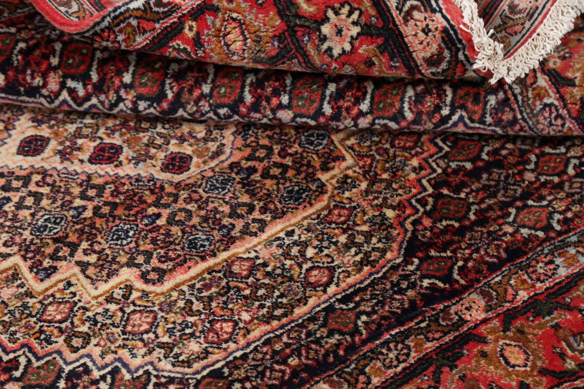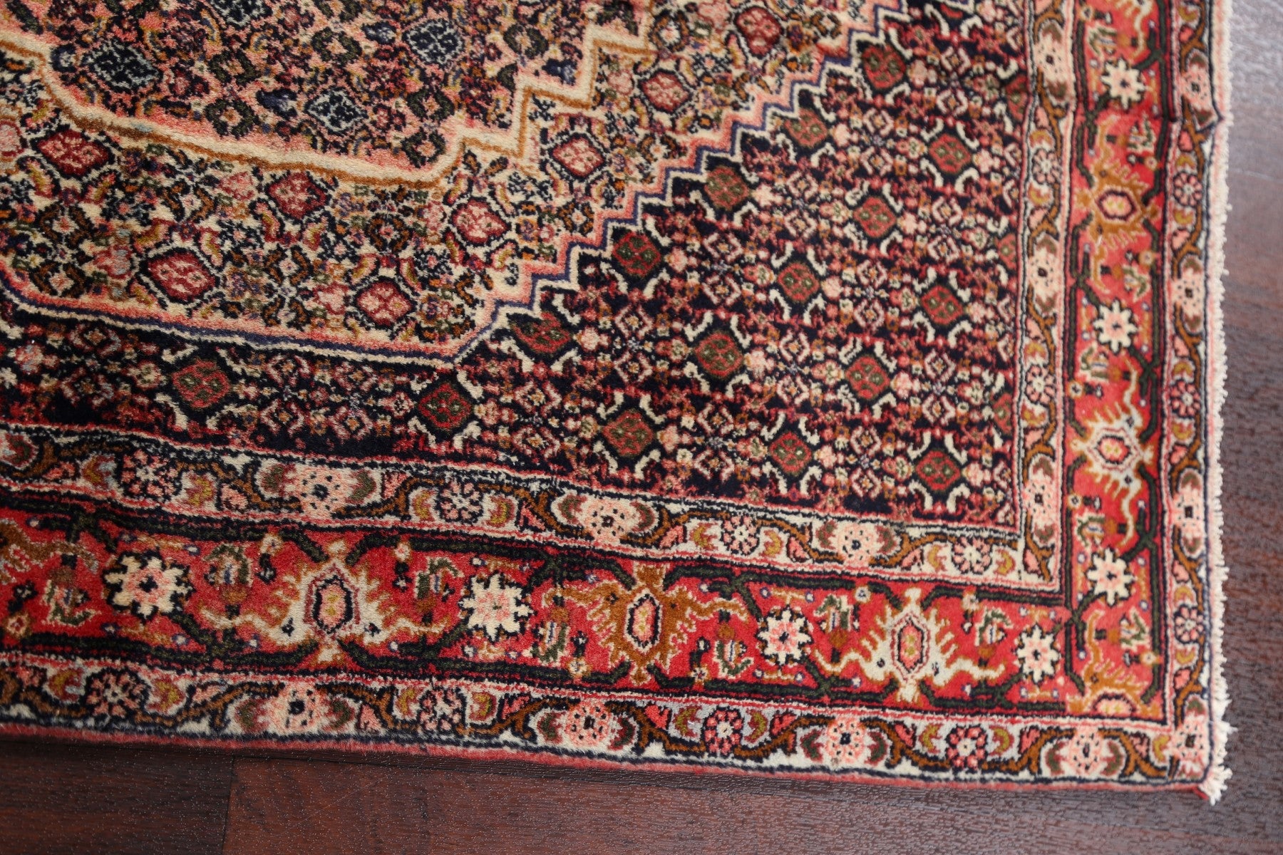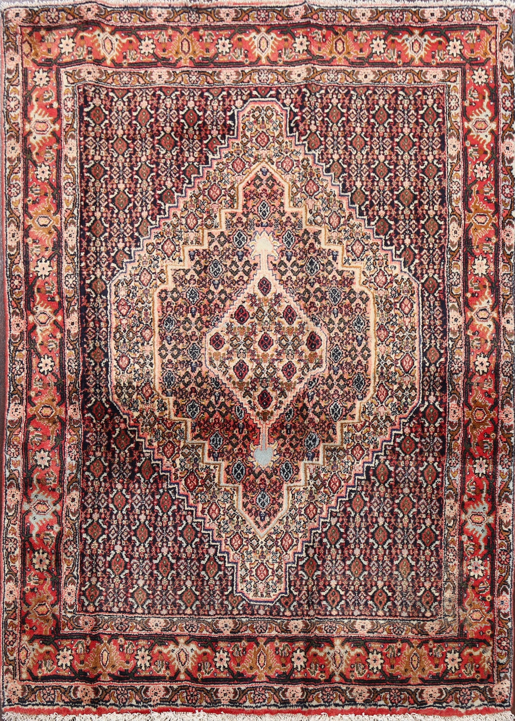 A Beautiful Genuine Persia ( Persia ) Bidjar rug is Hand Knotted by skillful weavers in Persia ( Persia ) with 100% Wool Material. This rug is in New, First Quality condition. dimensions are 4' 11'' X 3' 11'' in foot and 150 X 119 in centimeter. the primary color is Navy Blue & Blues.