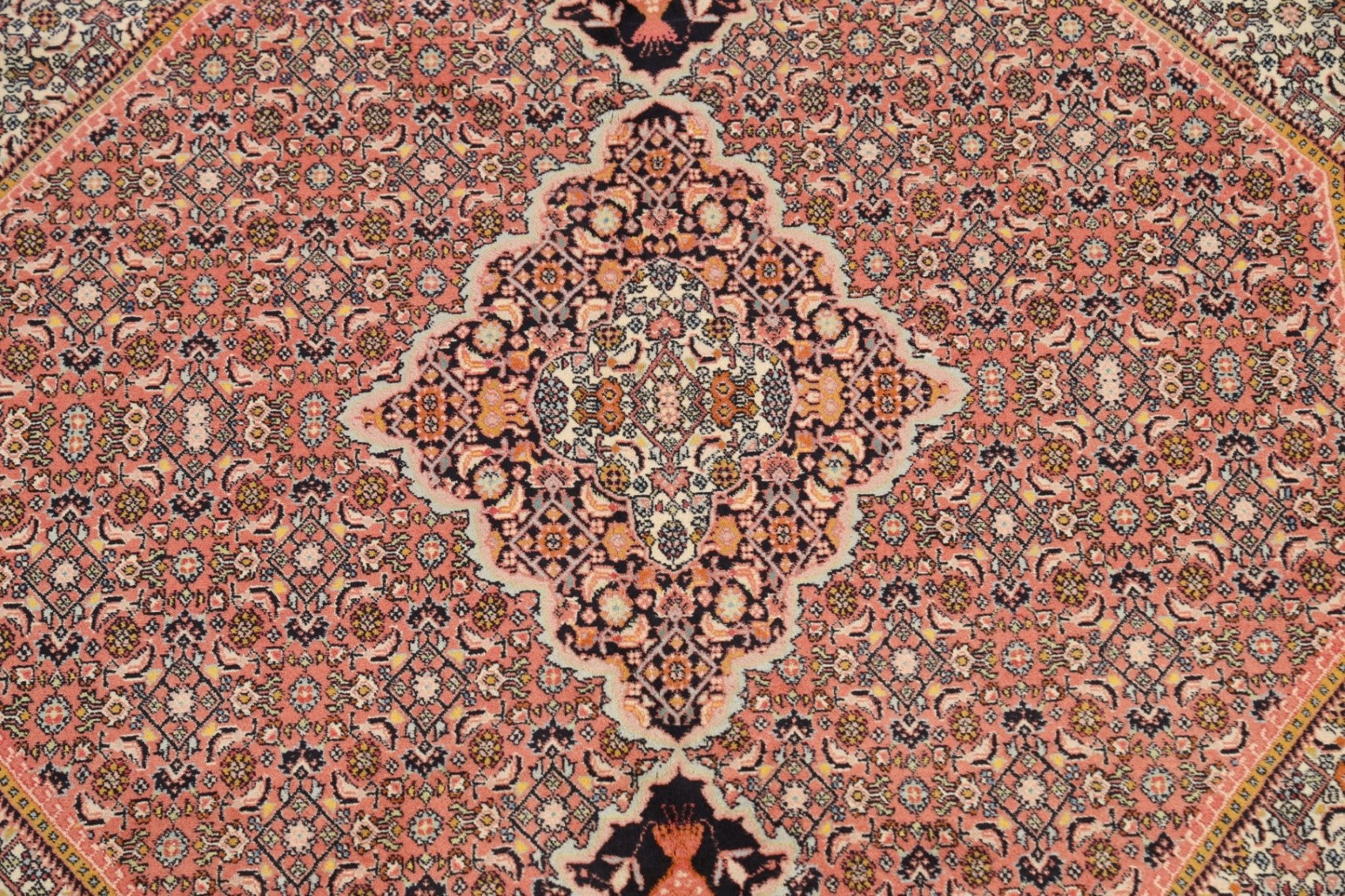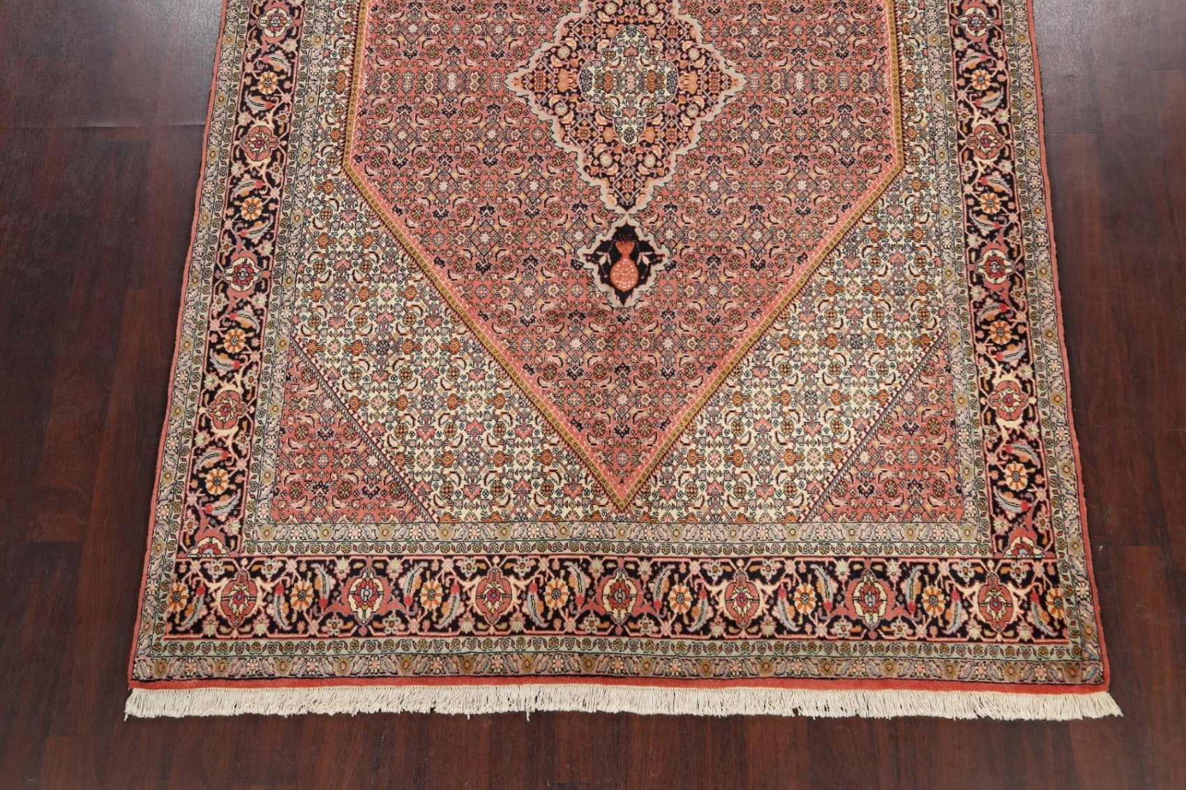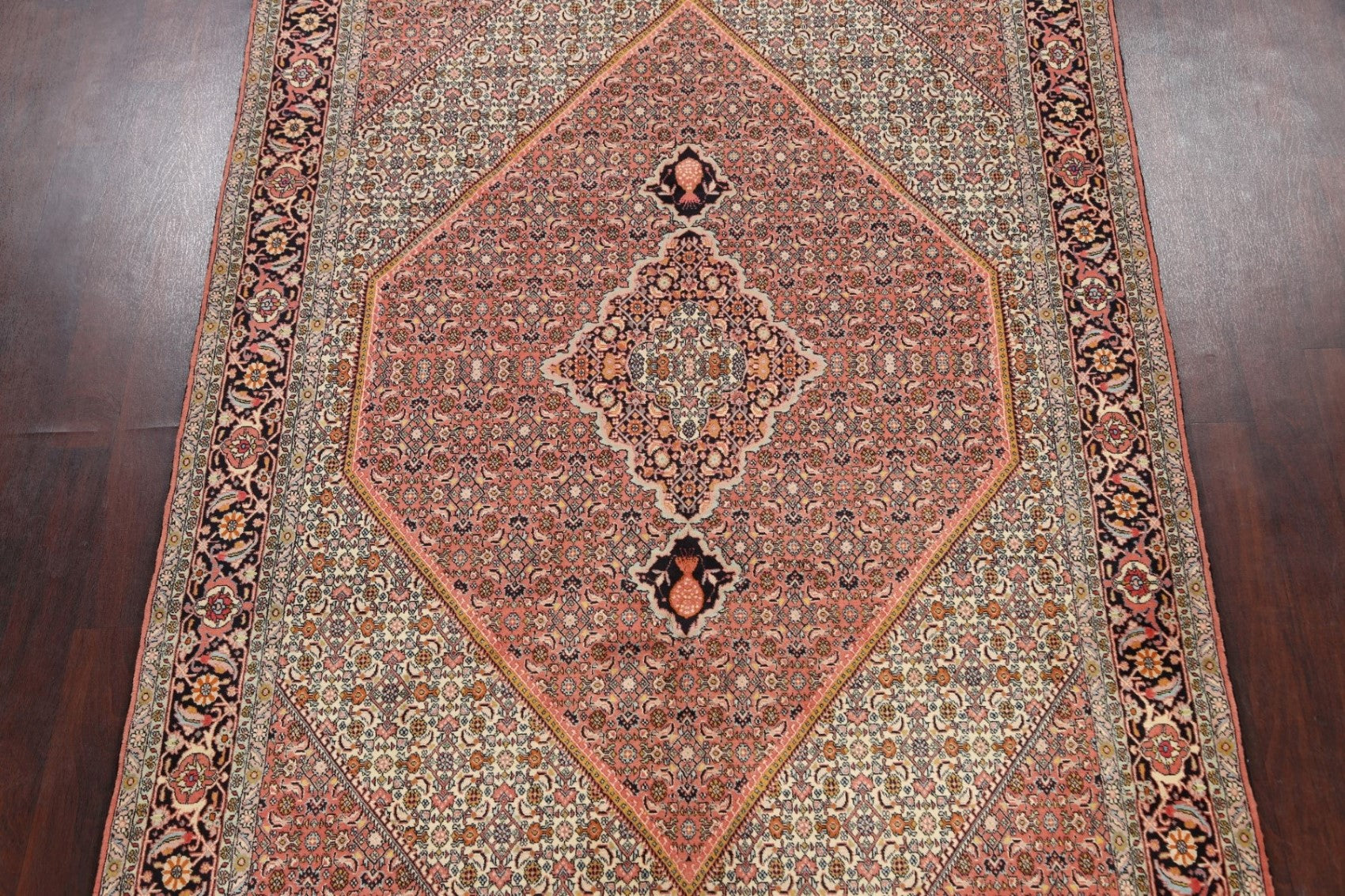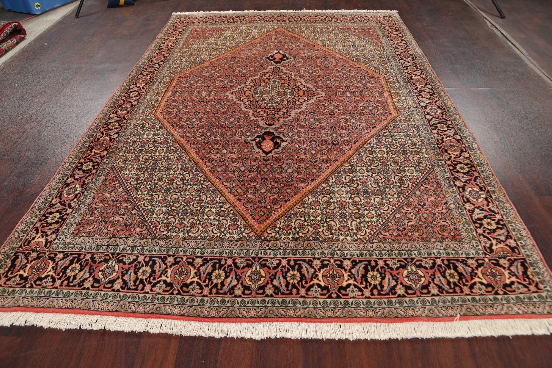 A Beautiful Genuine Persia ( Persia ) Bidjar rug is Hand Knotted by skillful weavers in Persia ( Persia ) with 100% Wool Material. This rug is in New, First Quality condition. dimensions are 9' 6'' X 6' 6'' in foot and 290 X 198 in centimeter. the primary color is Pink.