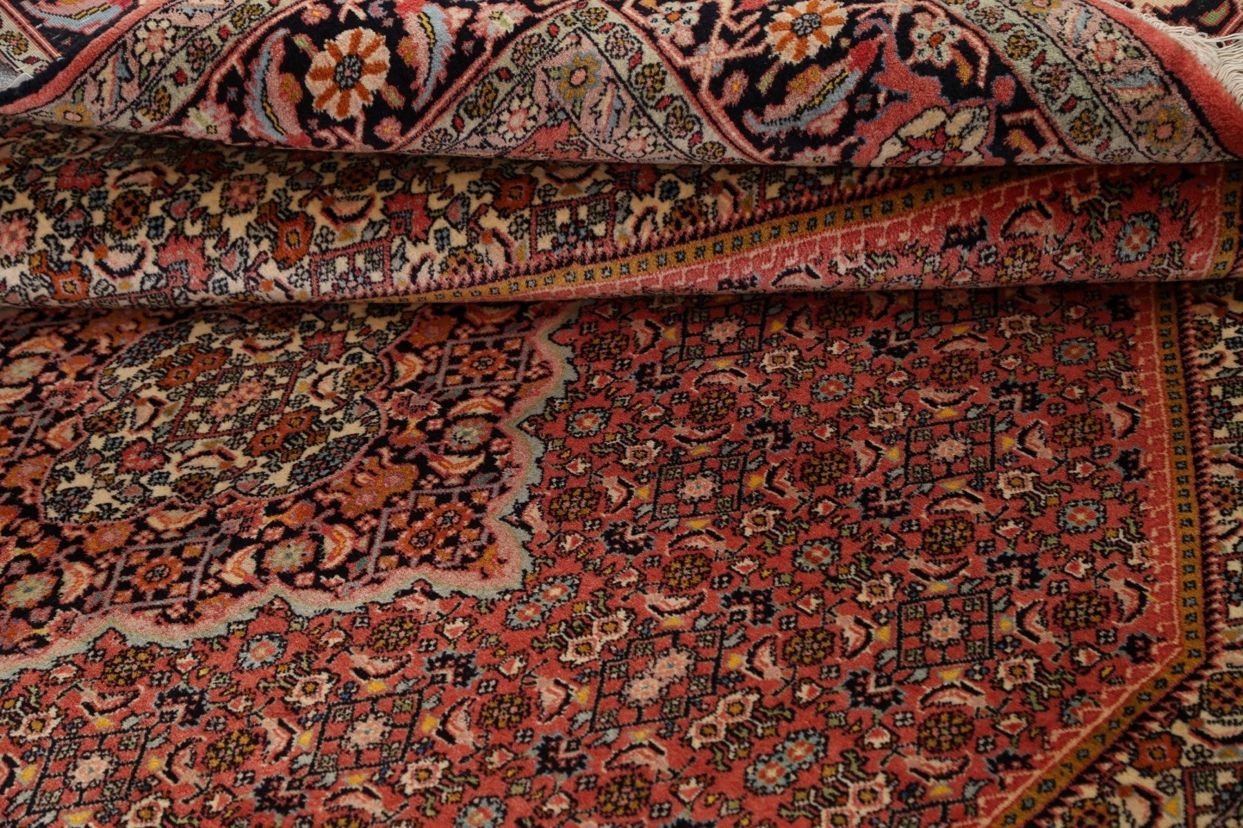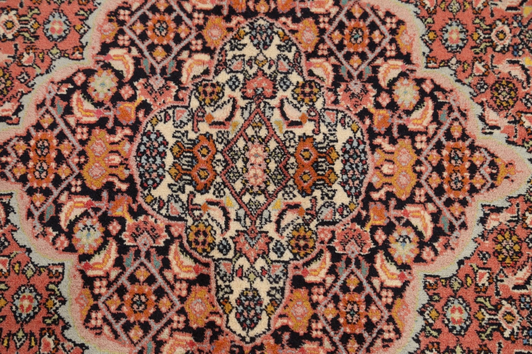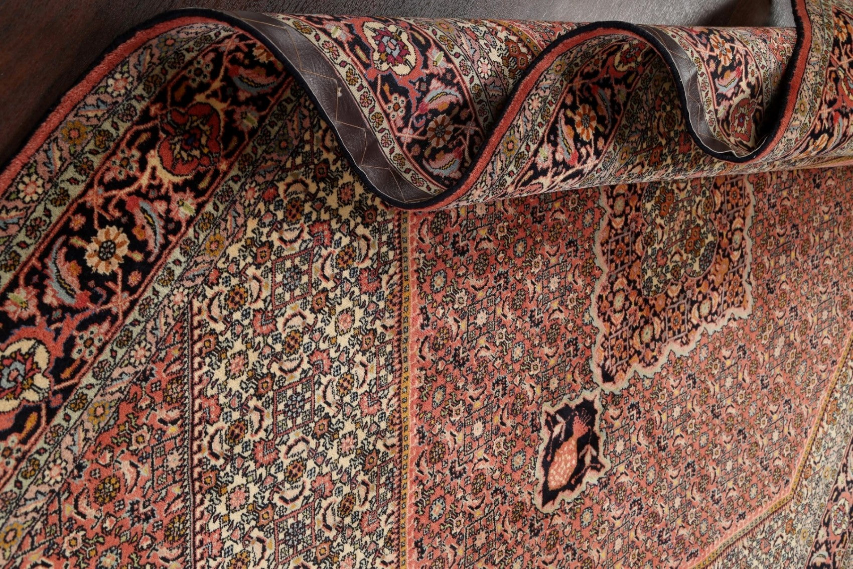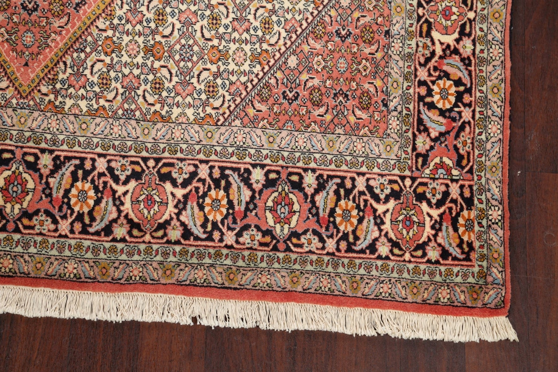 A Beautiful Genuine Persia ( Persia ) Bidjar rug is Hand Knotted by skillful weavers in Persia ( Persia ) with 100% Wool Material. This rug is in New, First Quality condition. dimensions are 9' 6'' X 6' 6'' in foot and 290 X 198 in centimeter. the primary color is Pink.