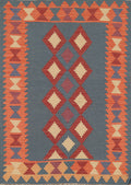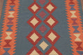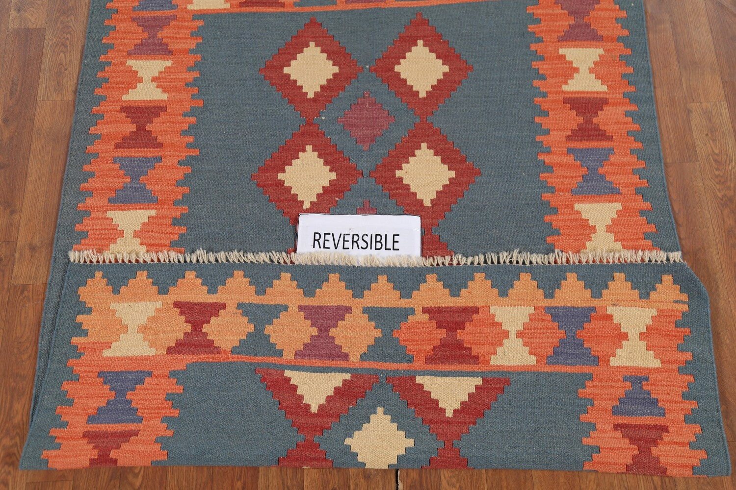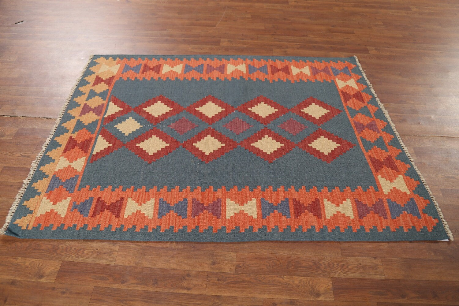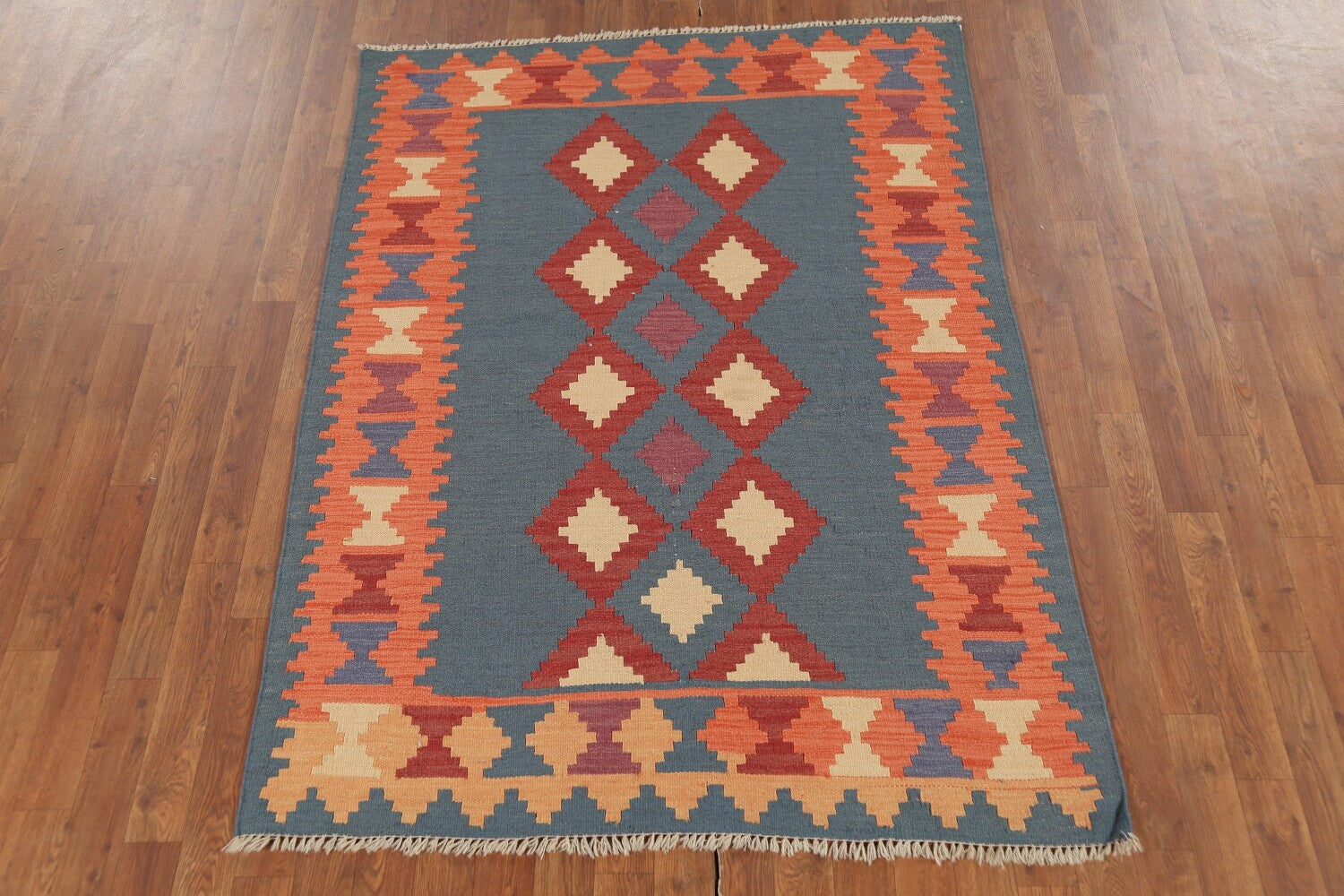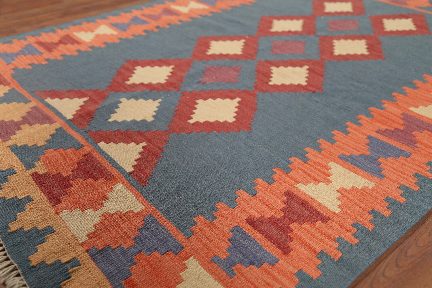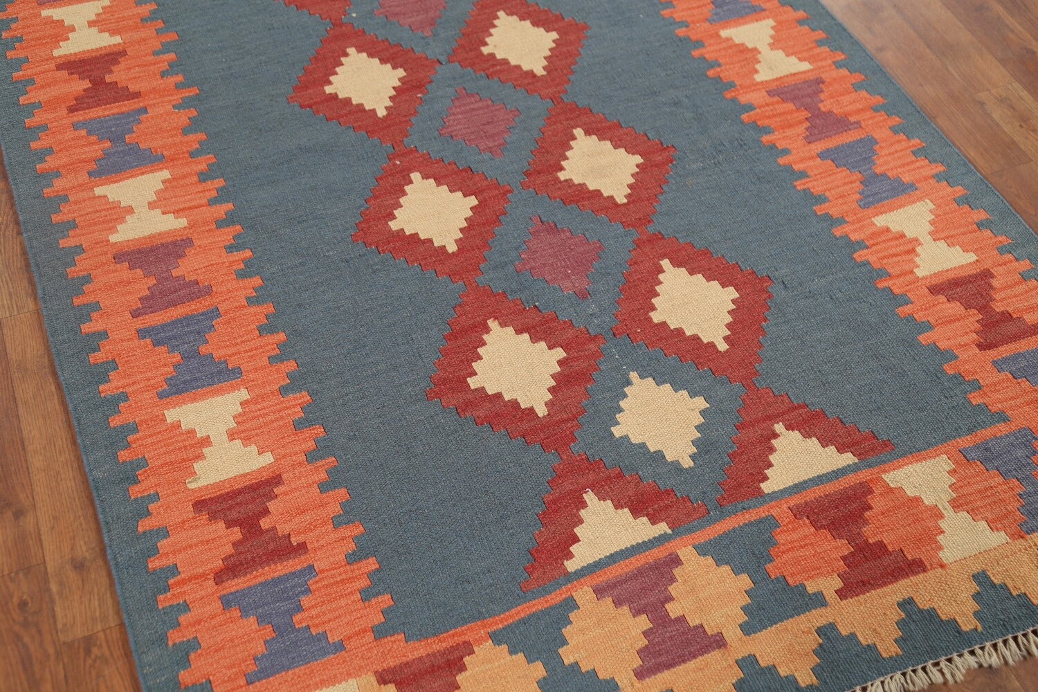 Geometric Blue Flat Weave Kilim Persian Rug 4x6