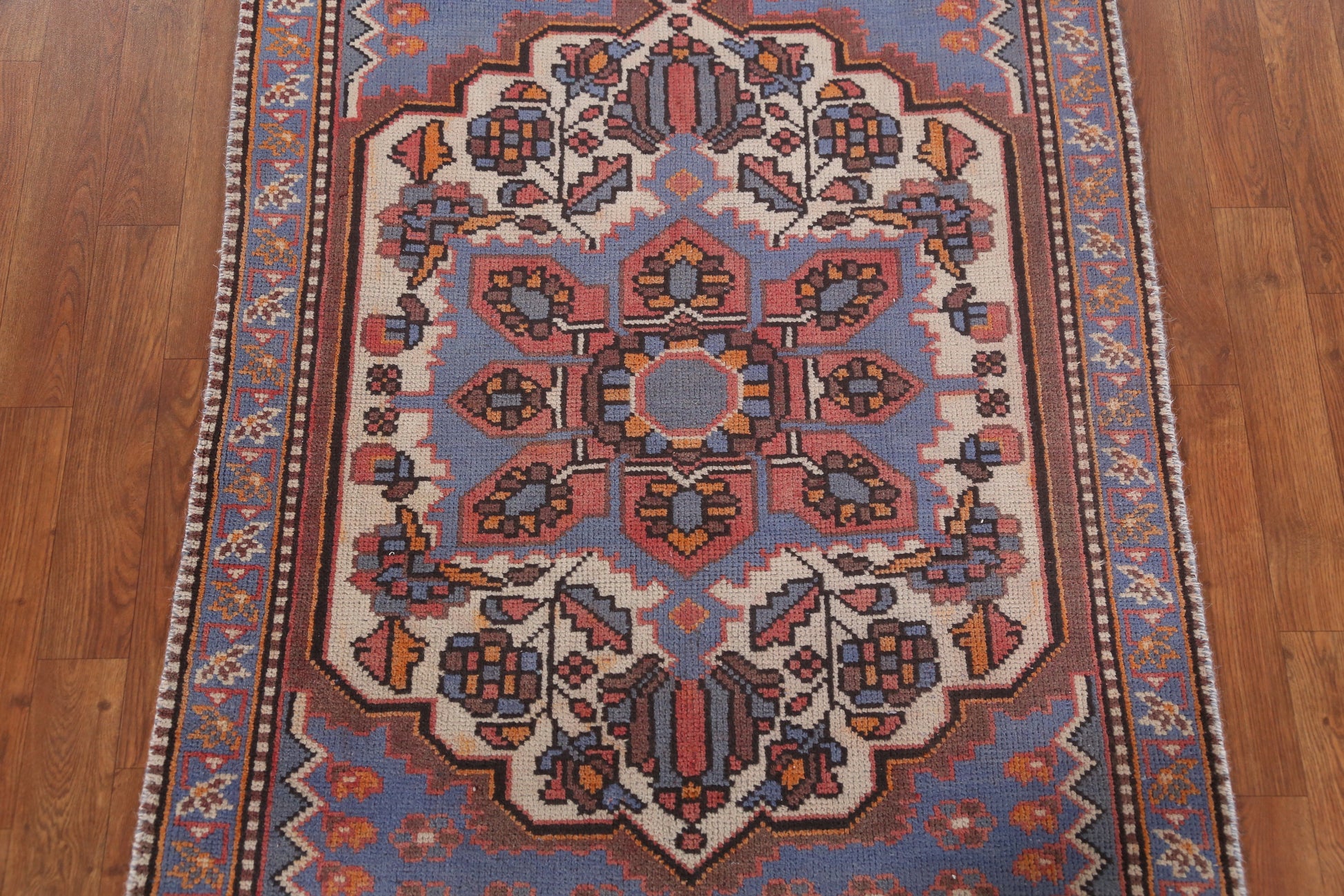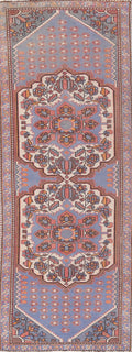 Geometric Blue Hamedan Persian Runner Rug 3x10