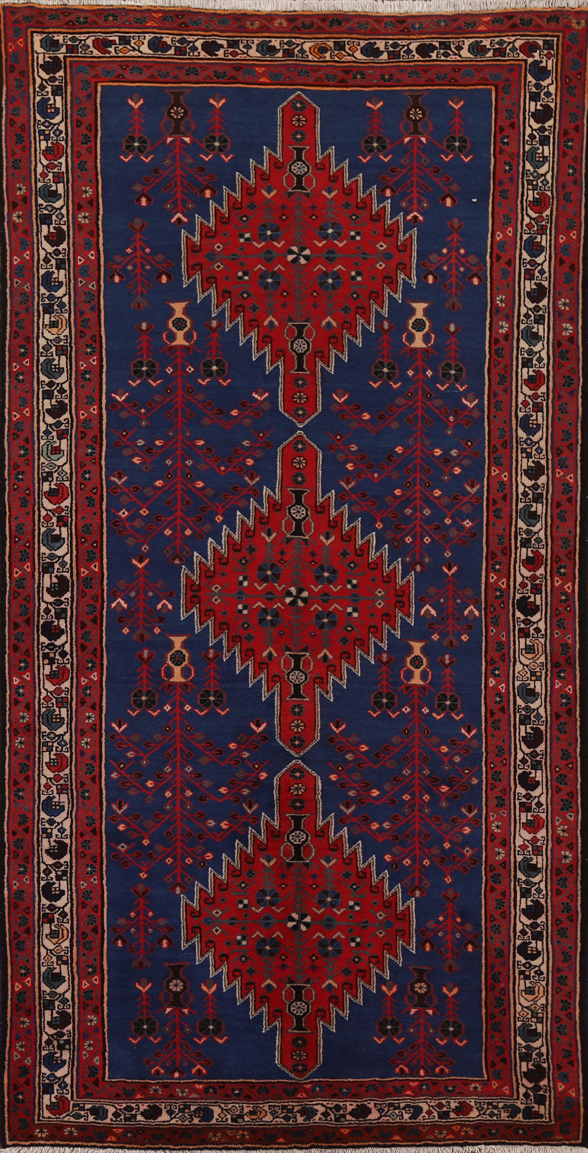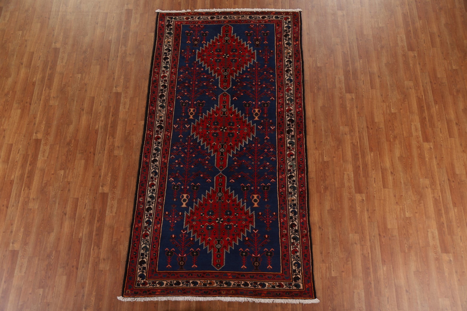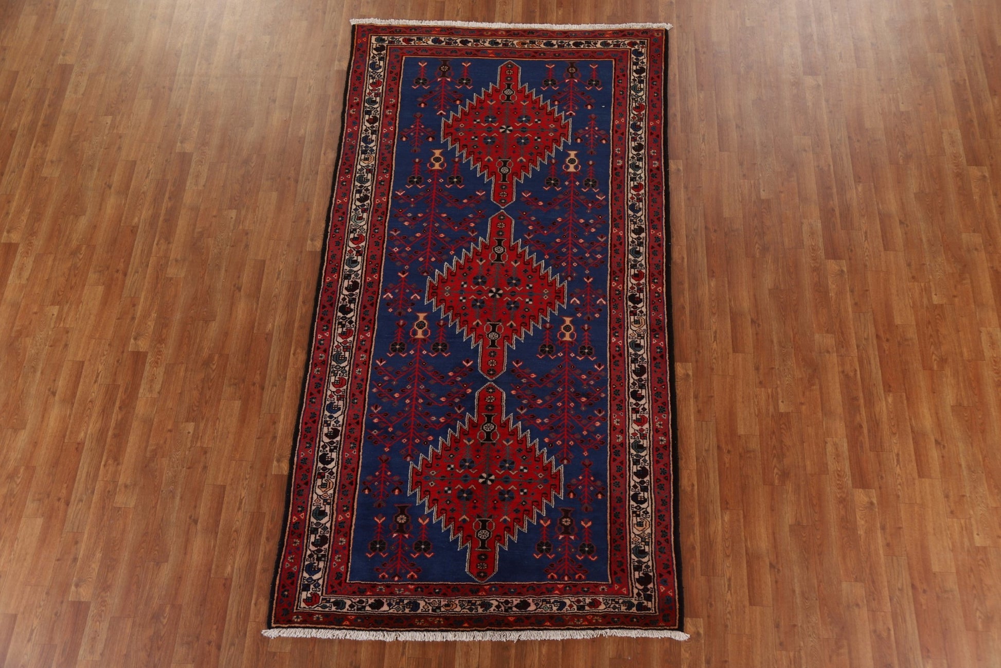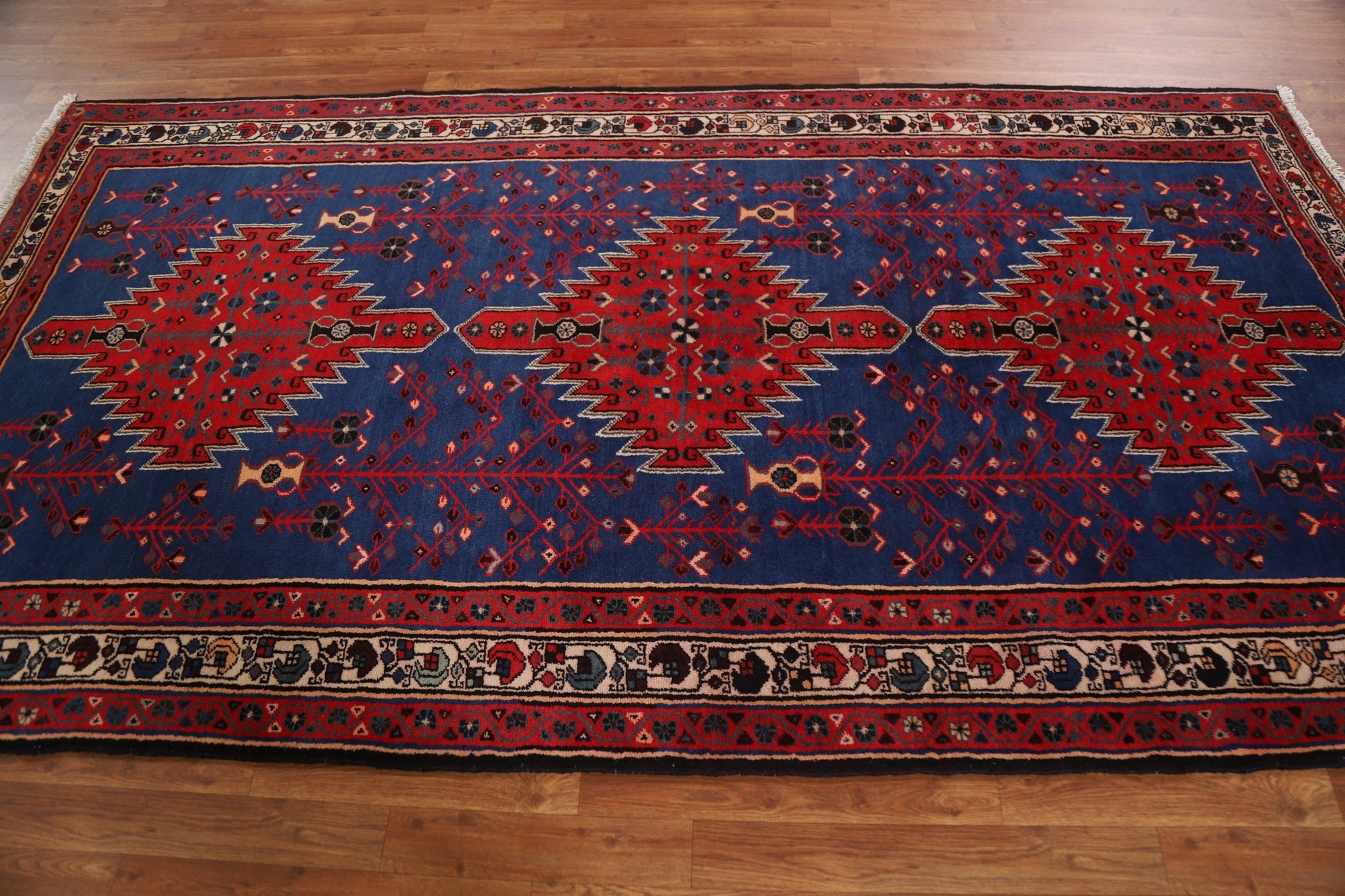Geometric Blue Sirjan Persian Area Rug 5x9