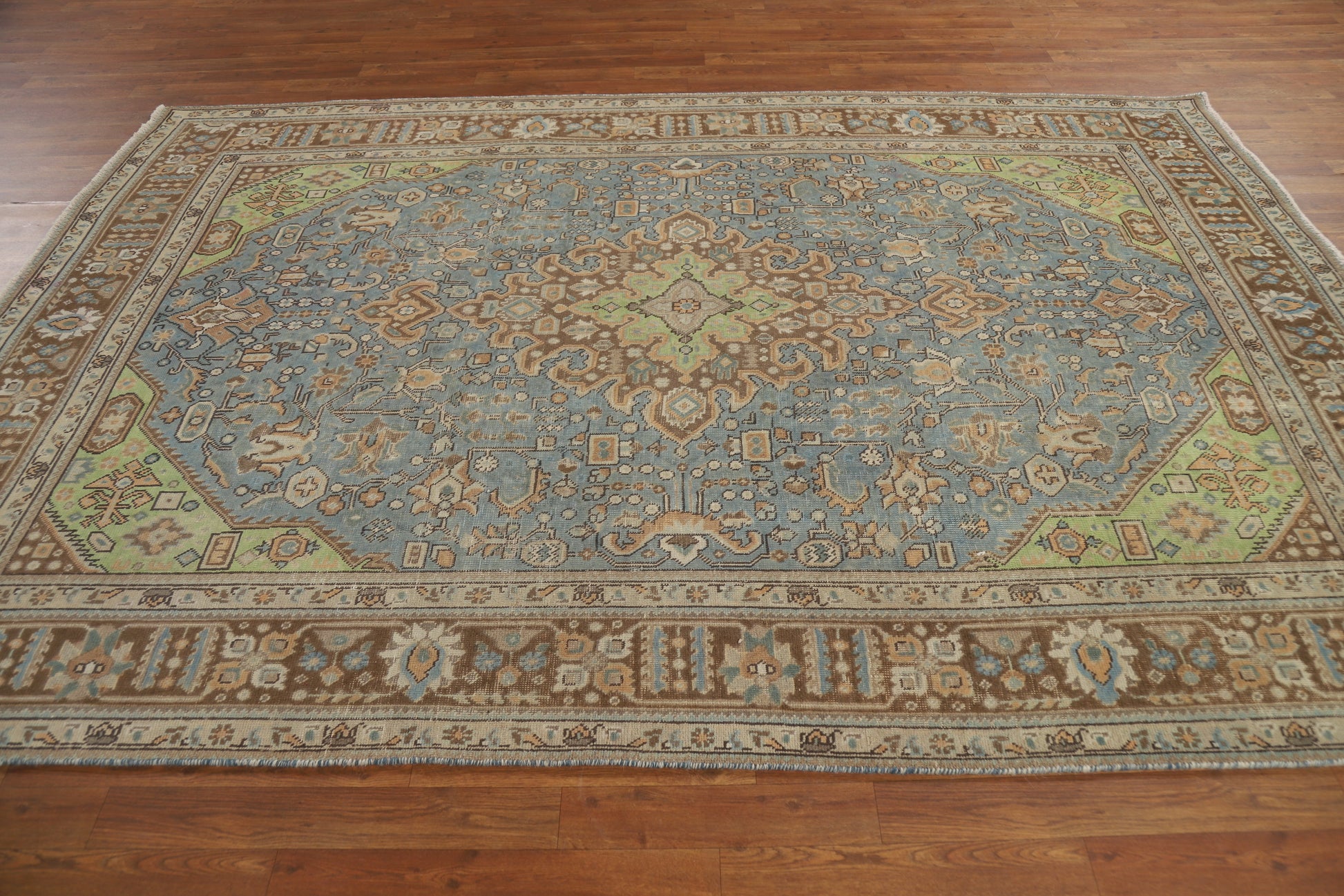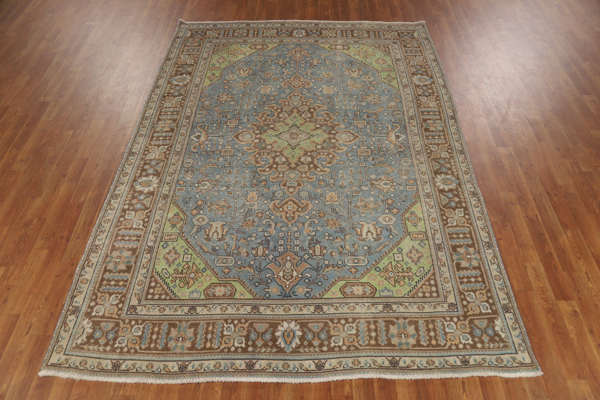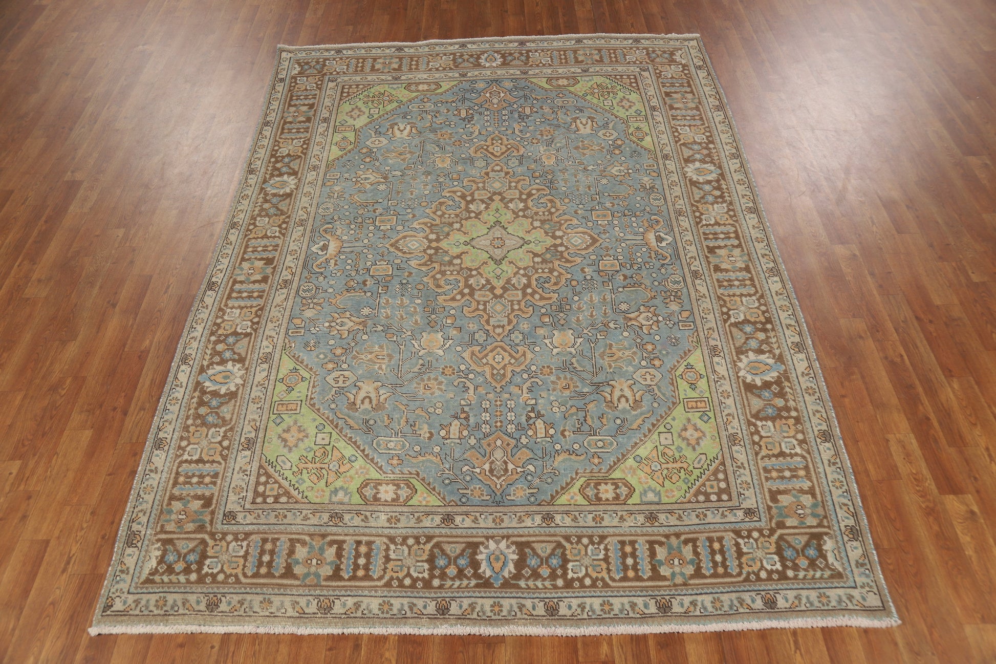 Geometric Blue Tabriz Persian Area Rug 6x9