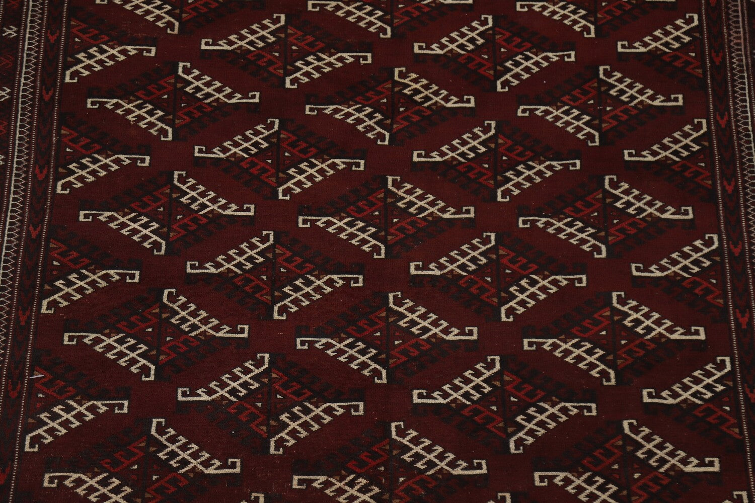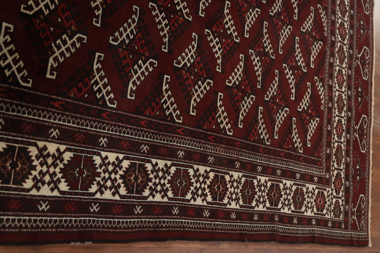 A Beautiful Genuine Pakistan Bokhara rug is Hand Knotted by skillful weavers in Pakistan with 100% Wool Material. This rug is in Very Good (Evenly Low Pile) condition. dimensions are 11' 9'' X 7' 2'' in foot and 358 X 218 in centimeter. the primary color is Red.