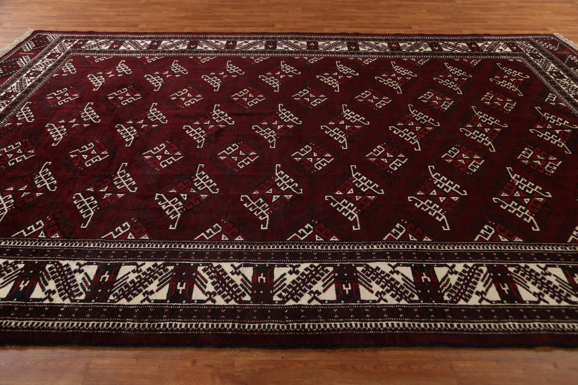A Beautiful Genuine Pakistan Bokhara rug is Hand Knotted by skillful weavers in Pakistan with 100% Wool Material. This rug is in Excellent condition. dimensions are 12' 5'' X 8' 3'' in foot and 378 X 251 in centimeter. the primary color is Red.