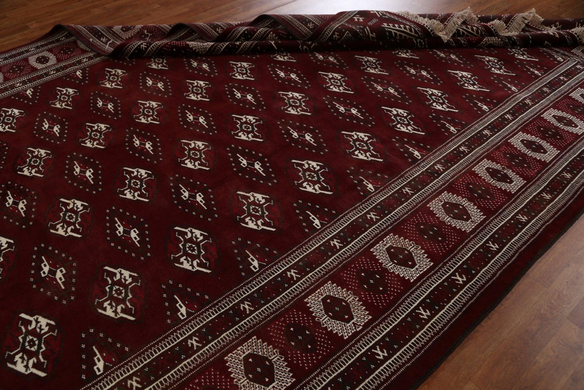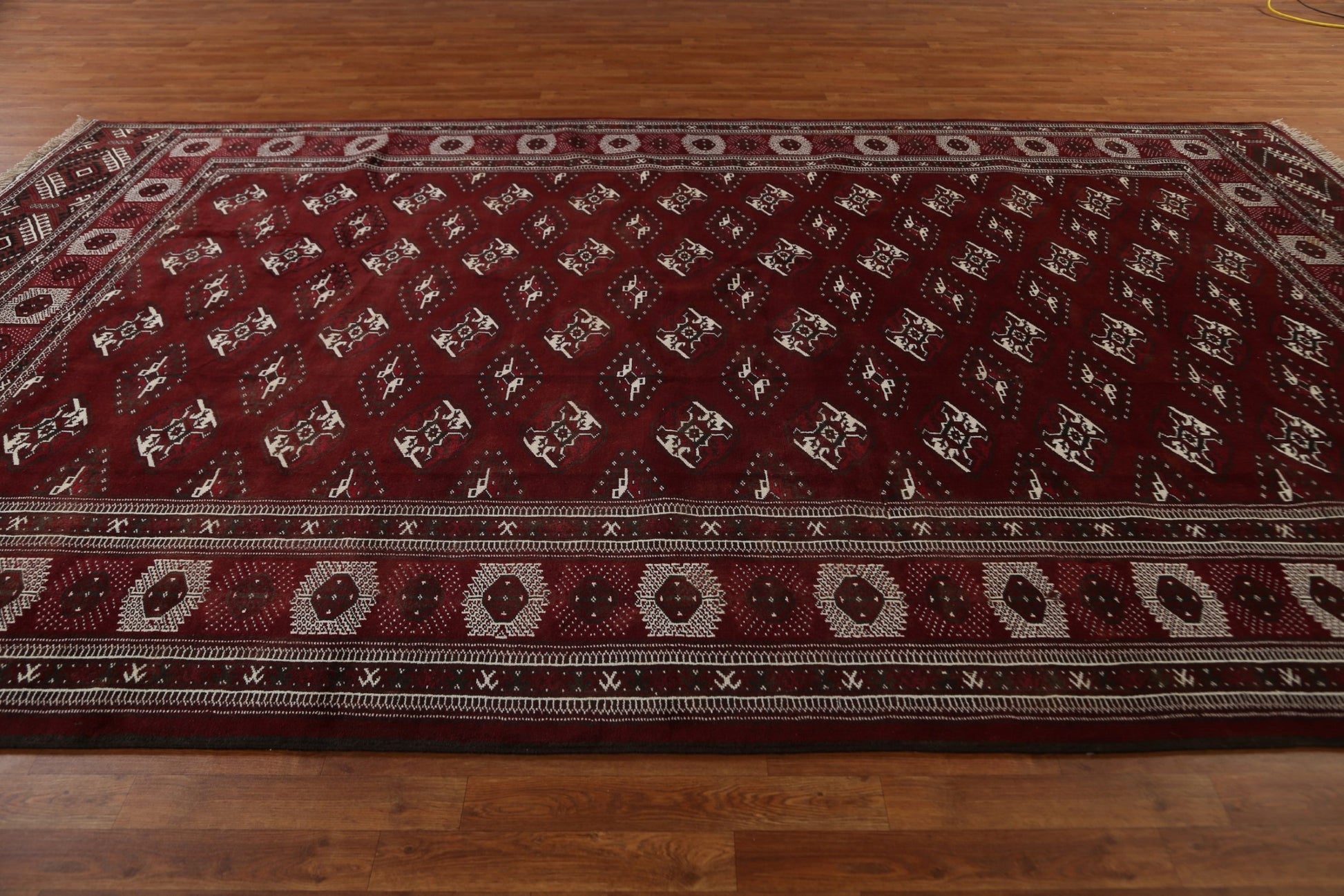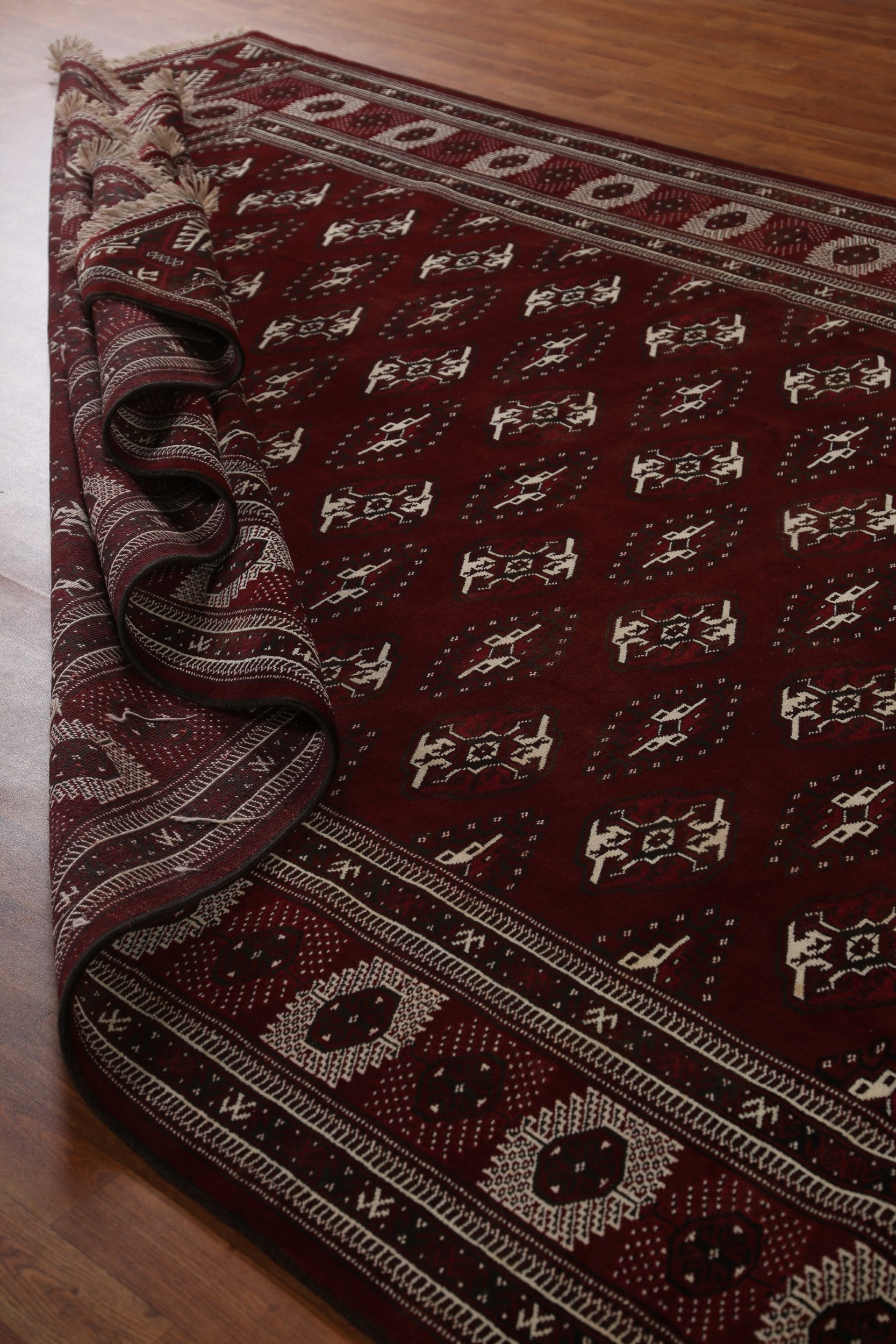A Beautiful Genuine Pakistan Bokhara rug is Hand Knotted by skillful weavers in Pakistan with 100% Wool Material. This rug is in Very Good condition. dimensions are 13' 0'' X 8' 2'' in foot and 396 X 249 in centimeter. the primary color is Red.
