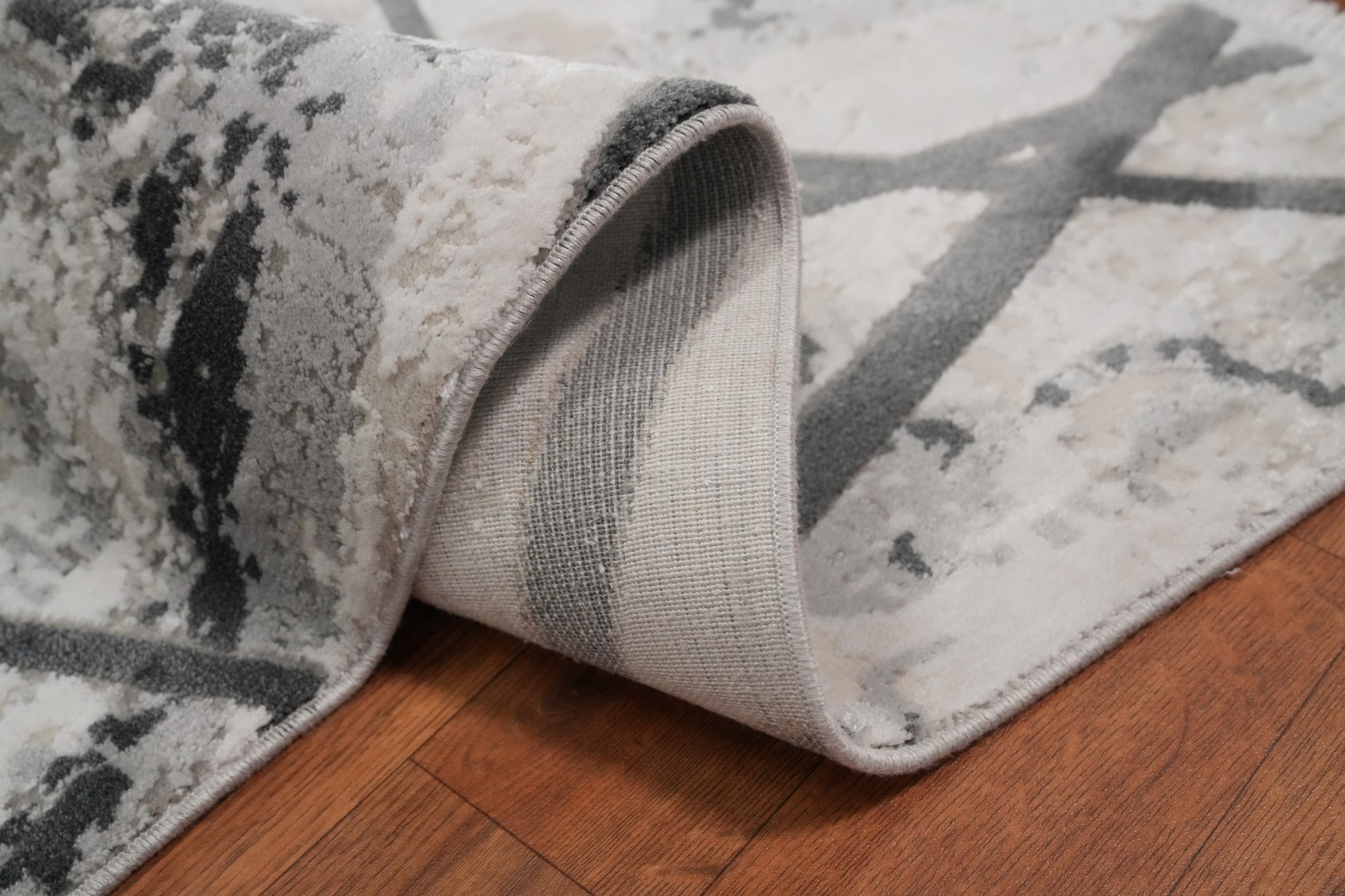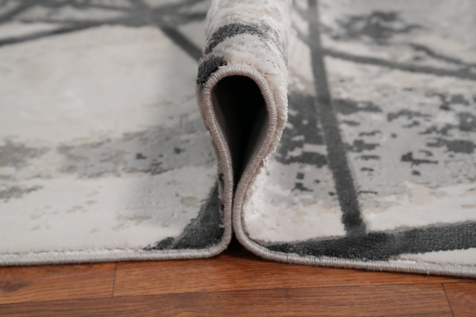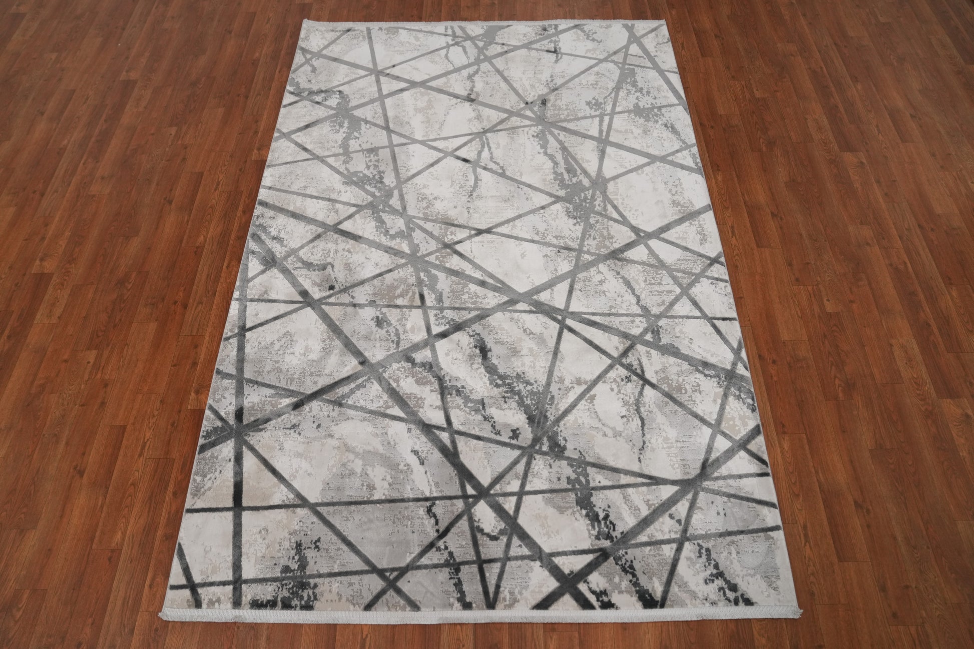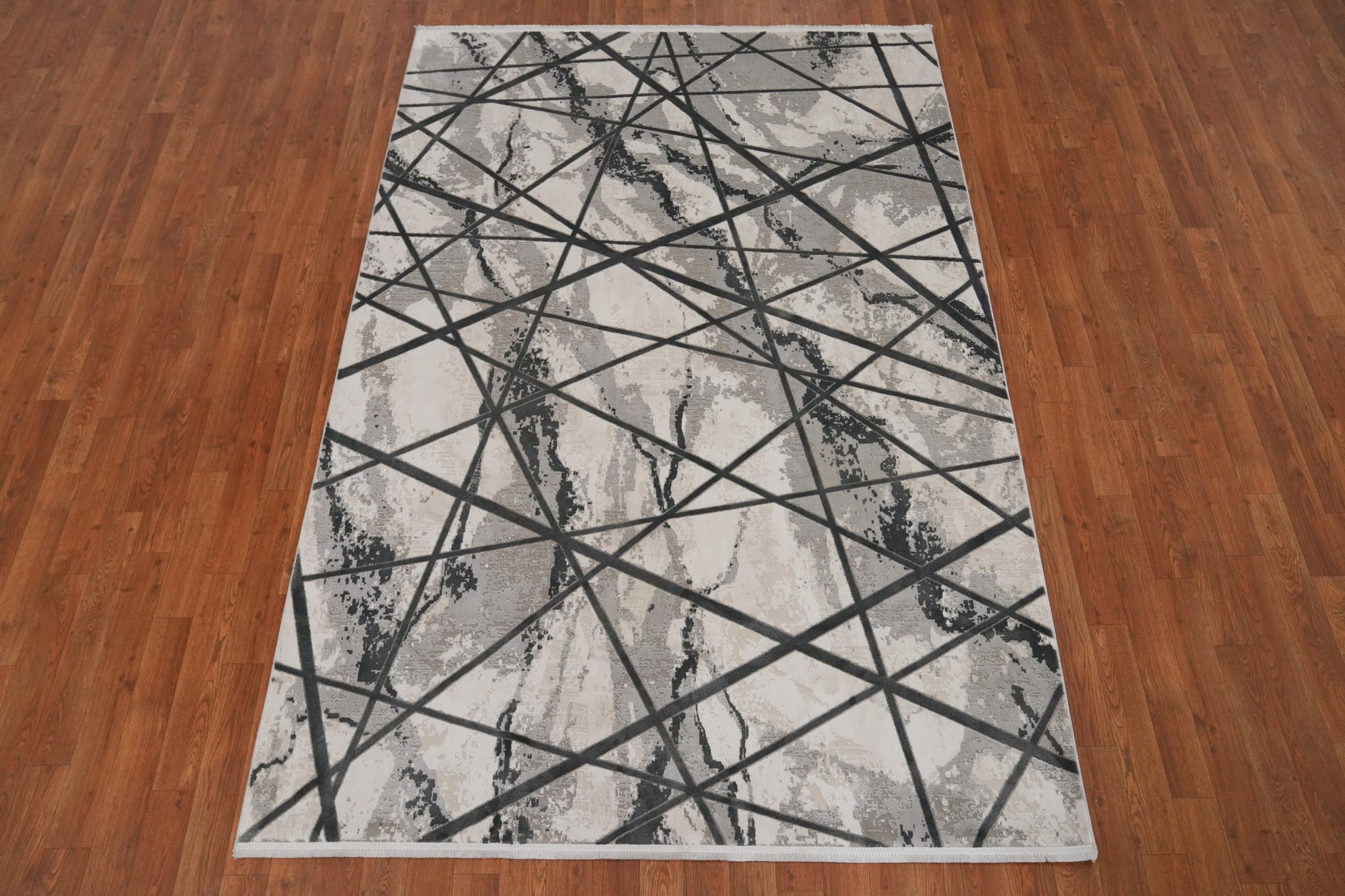 Geometric Design in Subtle Gray Hues Modern Abstract Rug 5x7