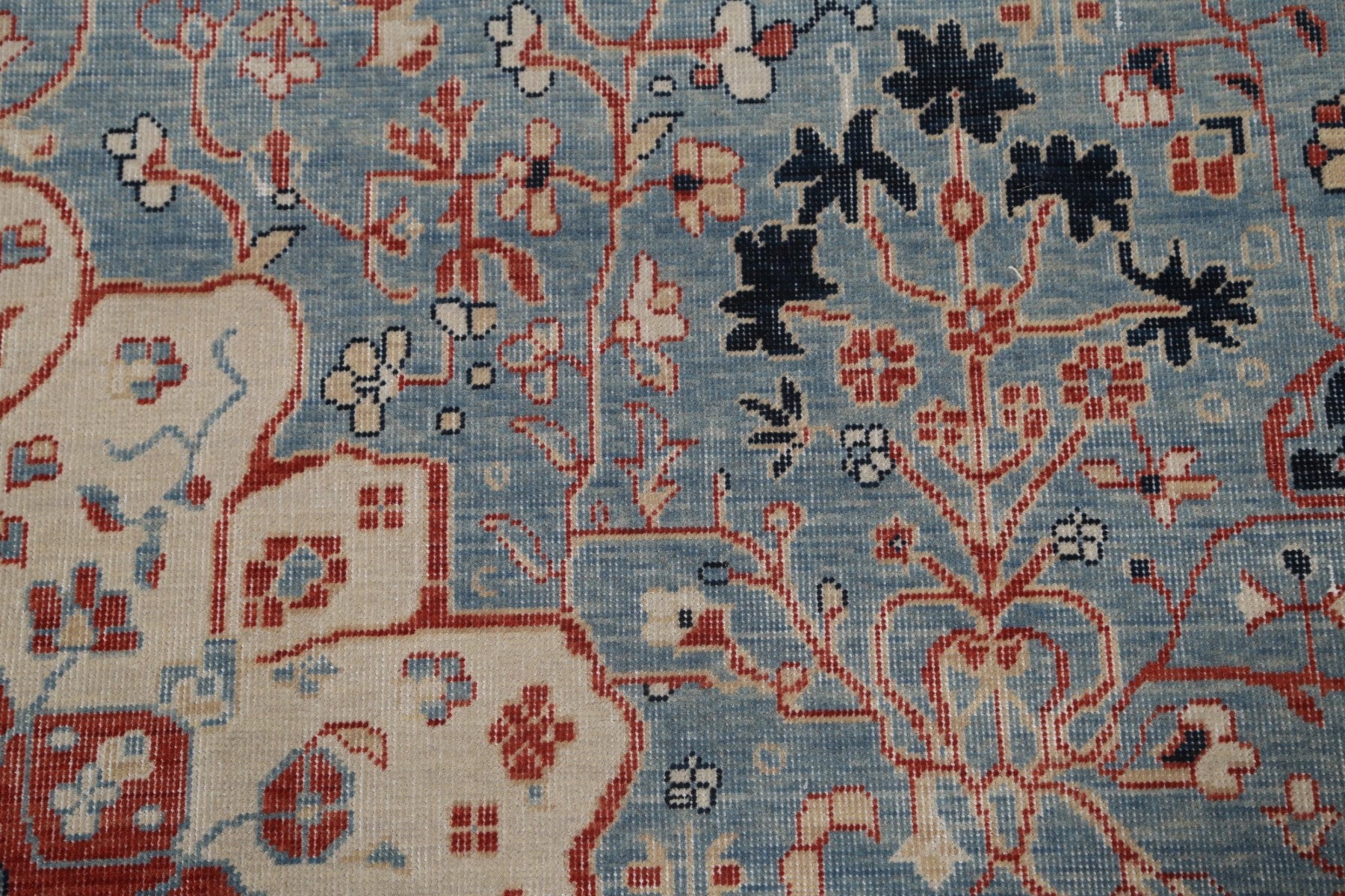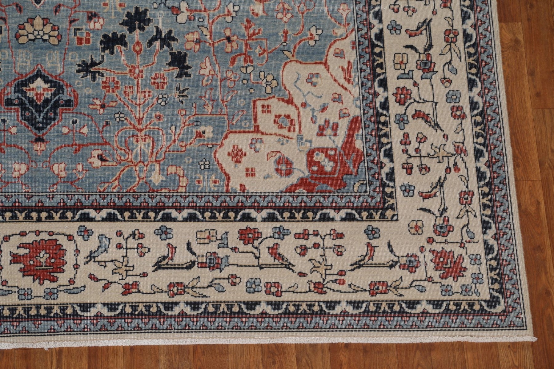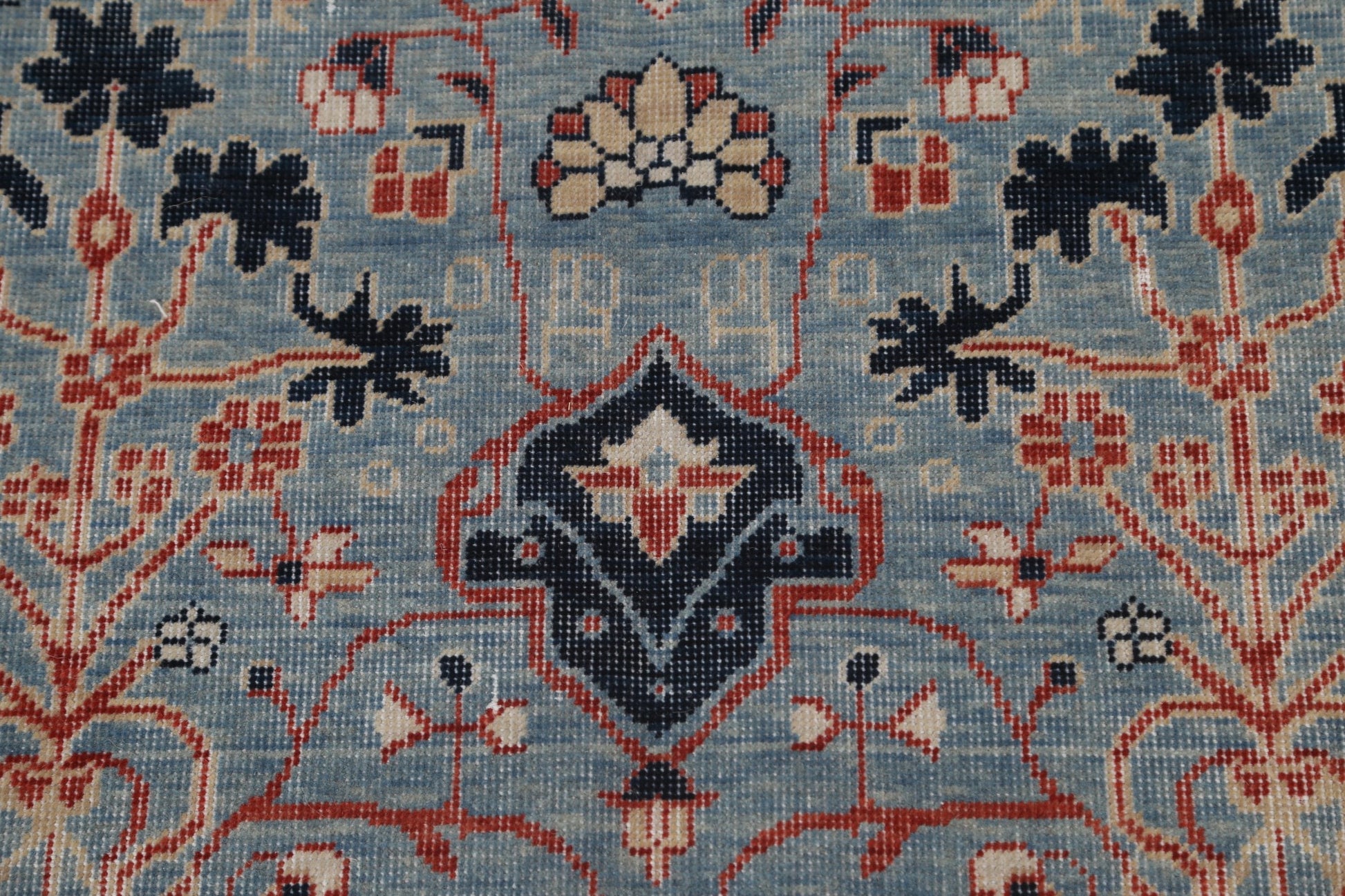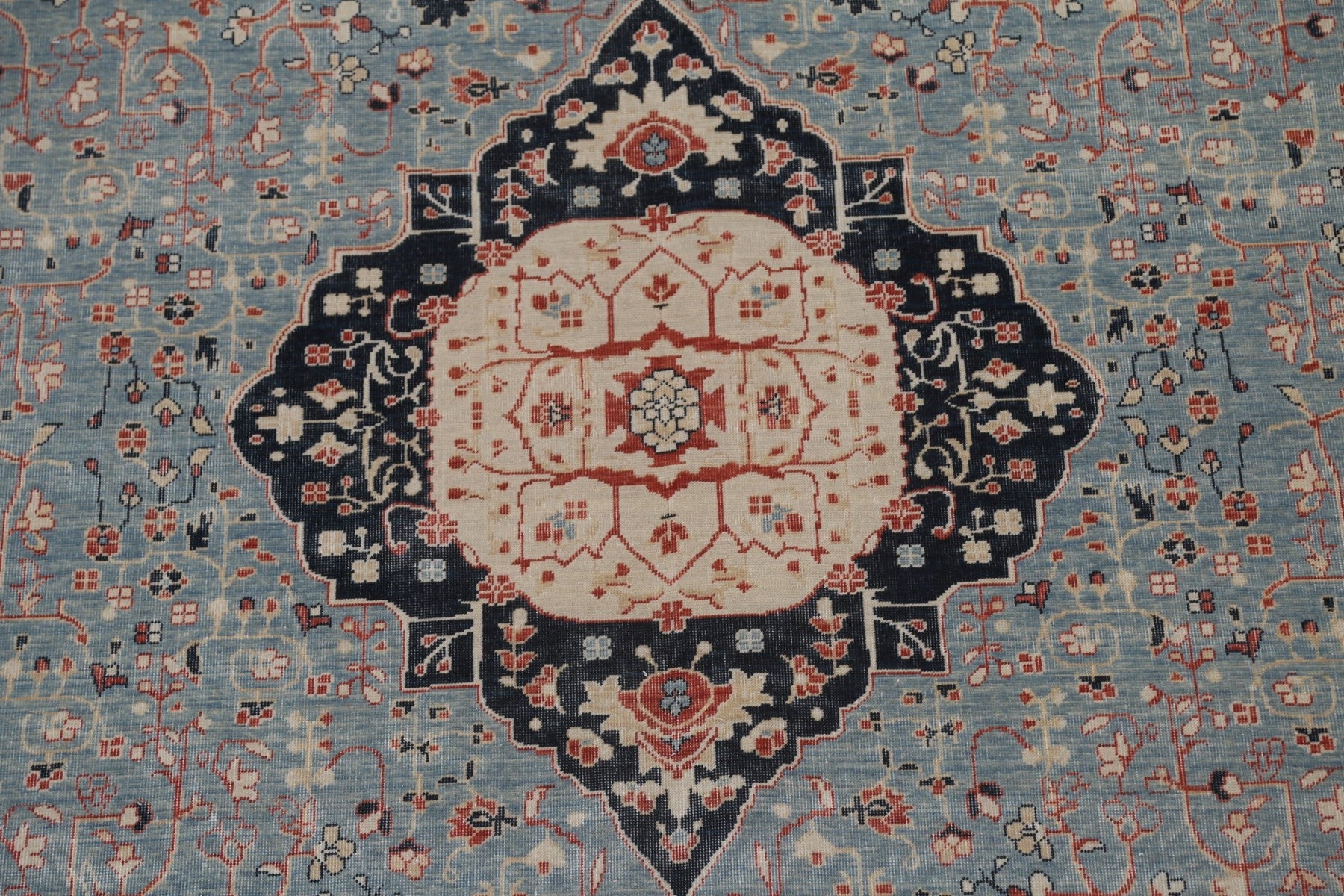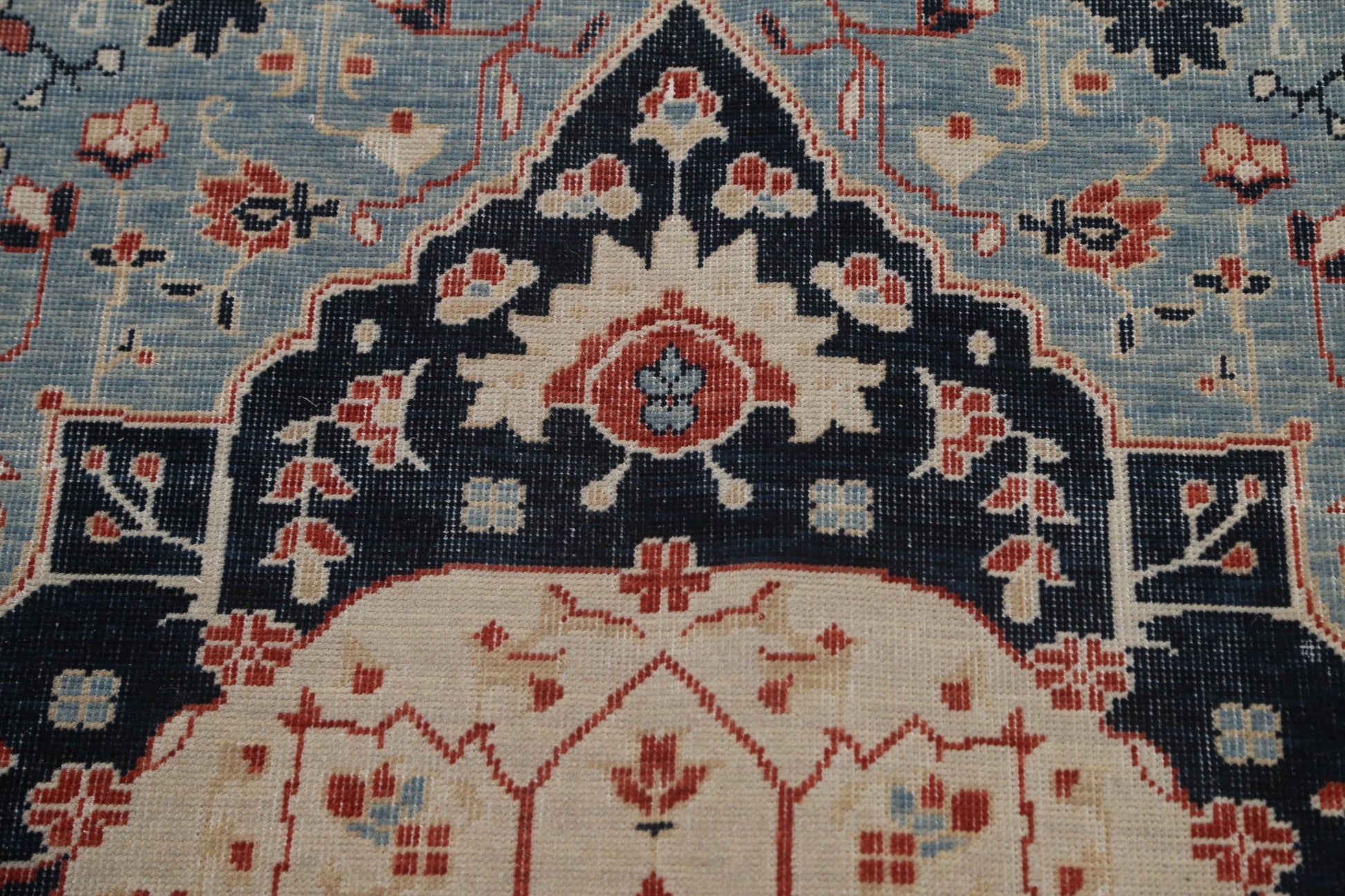 A Beautiful Genuine Turkey Kashan (Mohtasham) rug is Hand Knotted by skillful weavers in Turkey with 100% Wool Material. This rug is in New, First Quality condition. dimensions are 9' 9'' X 8' 0'' in foot and 297 X 244 in centimeter. the primary color is Navy Blue & Blues.