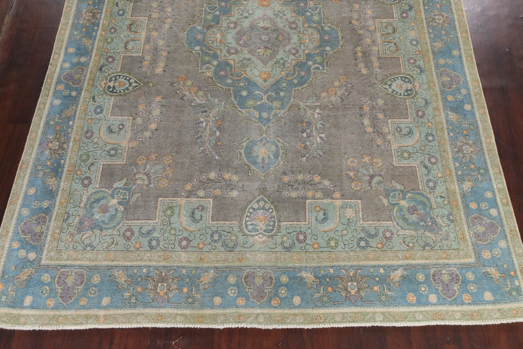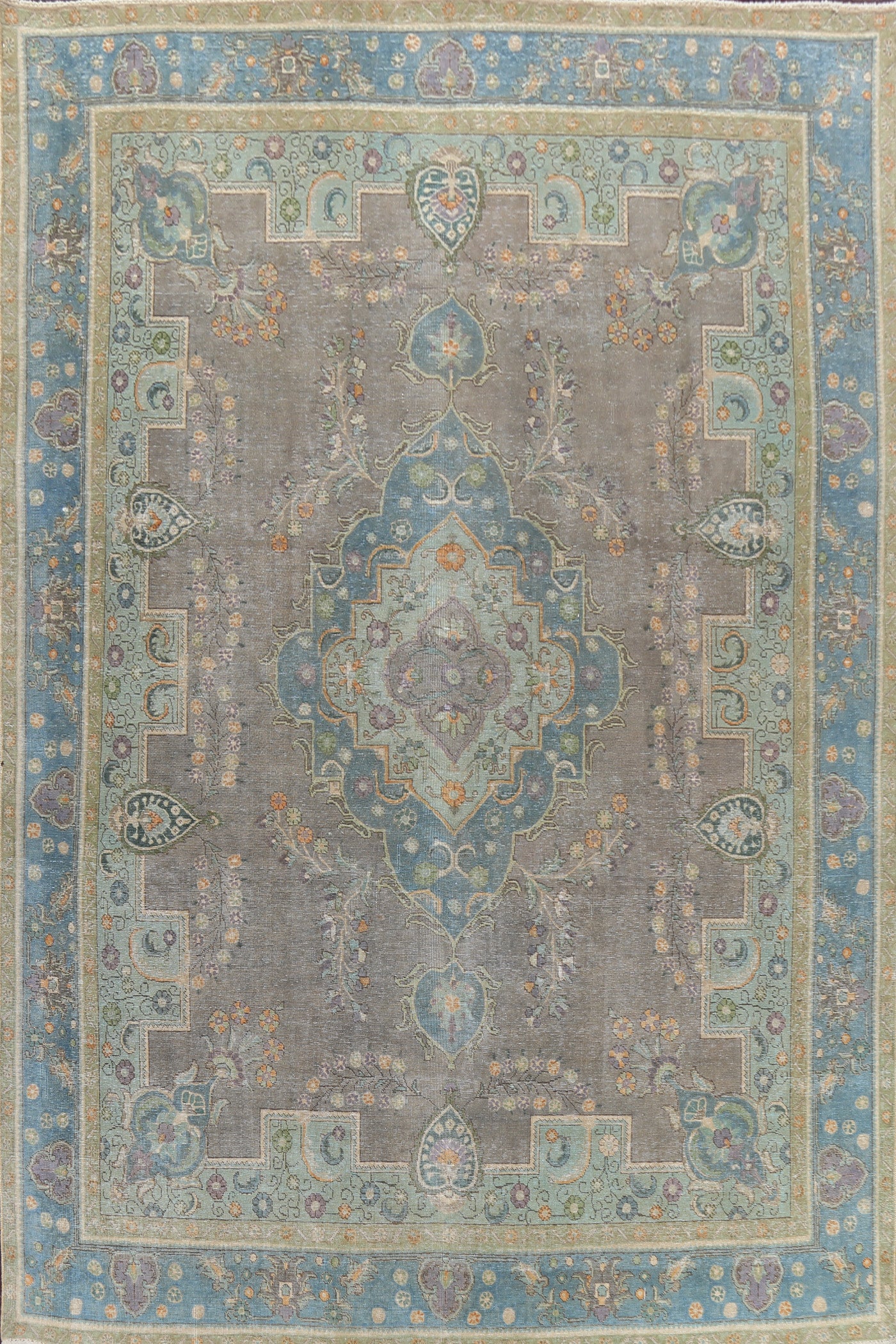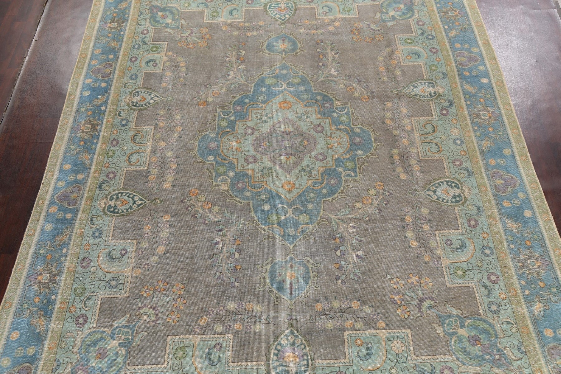 Geometric Distressed Tabriz Persian Area Rug 9x13
