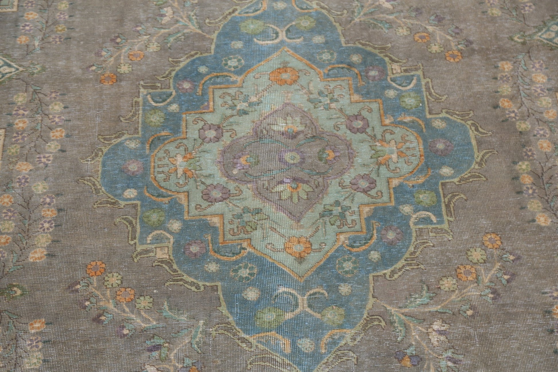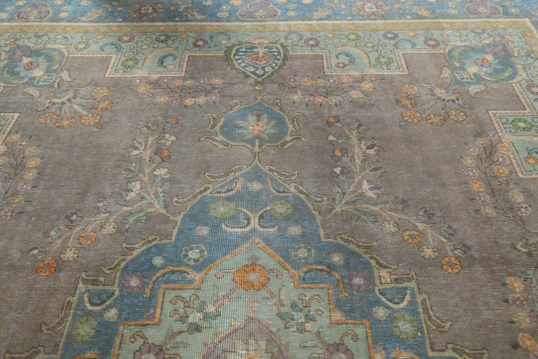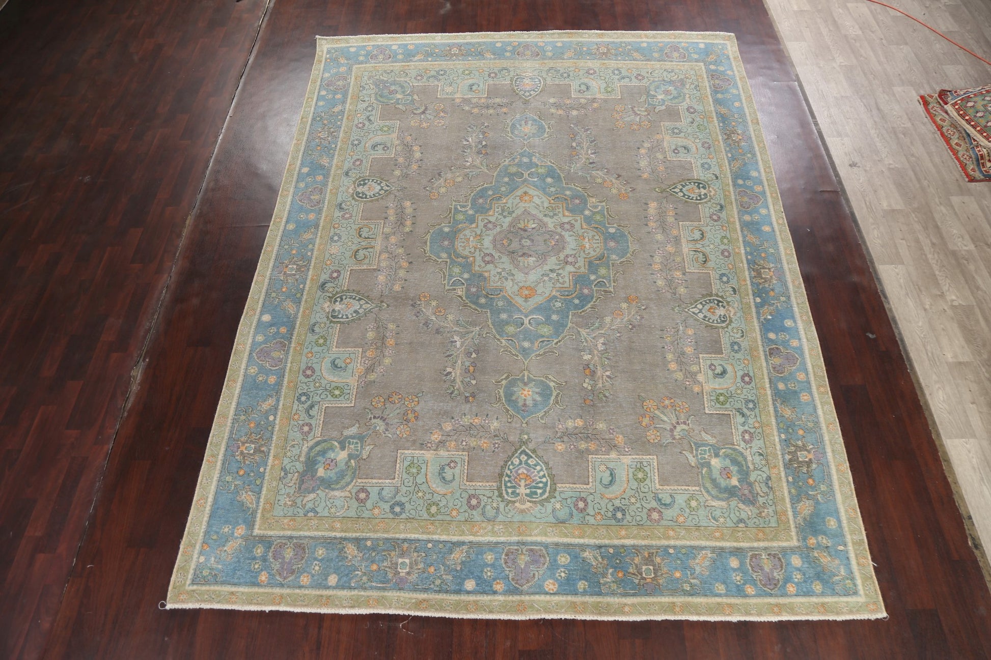 Geometric Distressed Tabriz Persian Area Rug 9x13