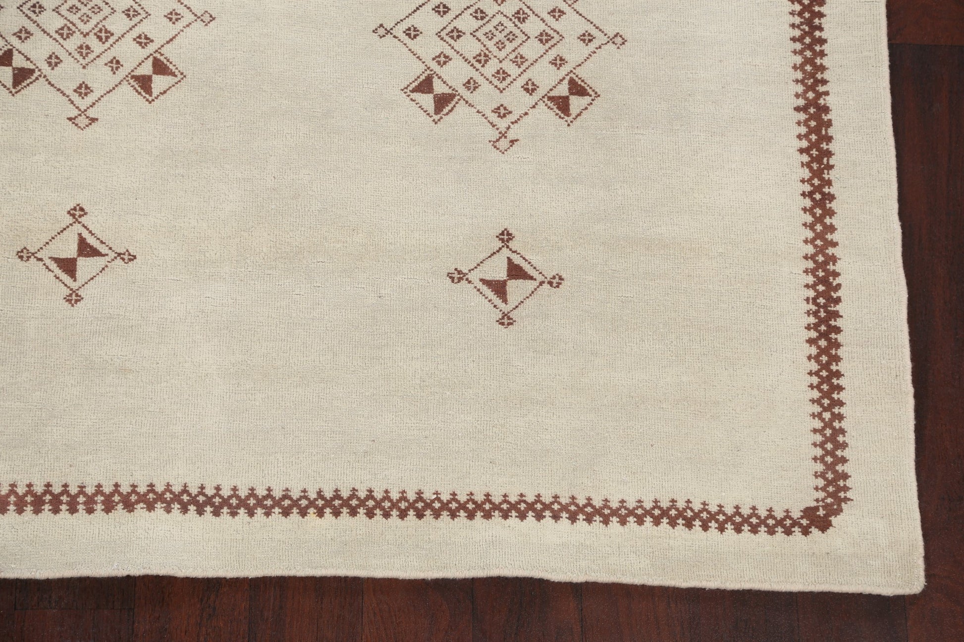 A Beautiful Genuine Egypt Modern rug is Hand Knotted by skillful weavers in Egypt with 100% Wool Material. This rug is in New, First Quality condition. dimensions are 10' 4'' X 6' 5'' in foot and 315 X 196 in centimeter. the primary color is Beige & Ivories.