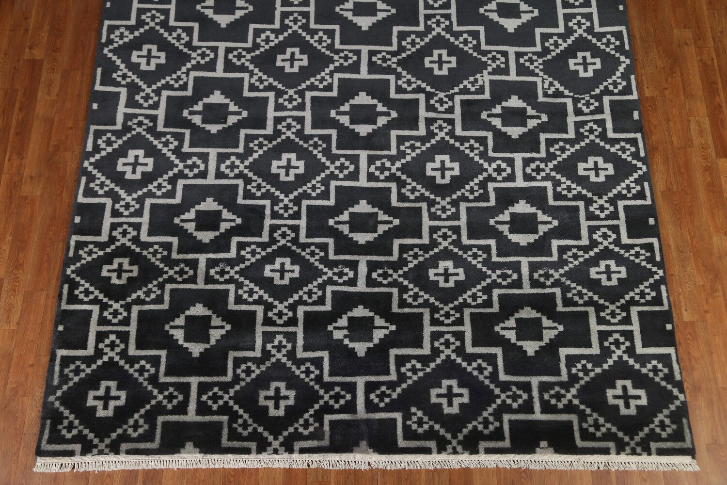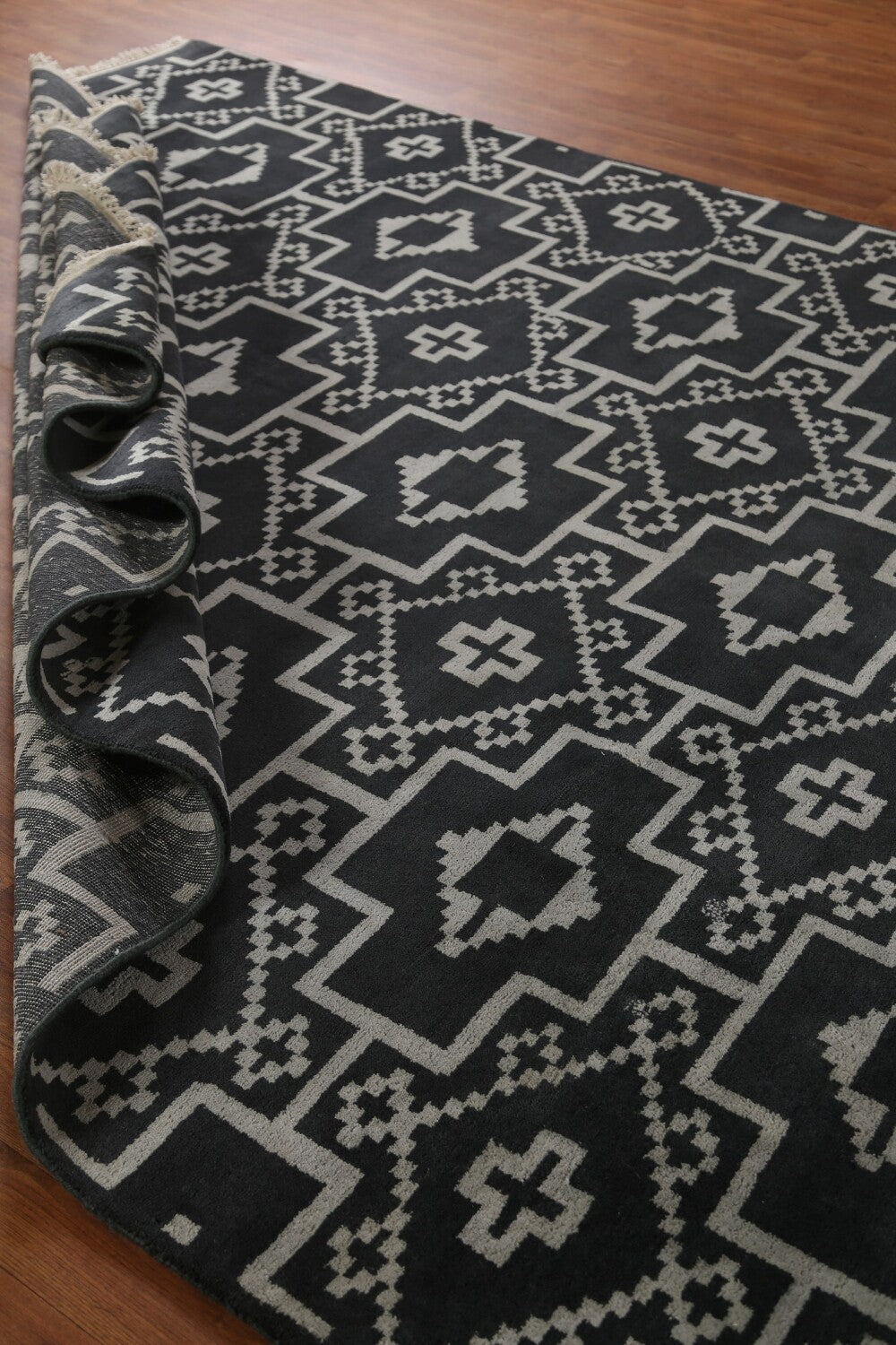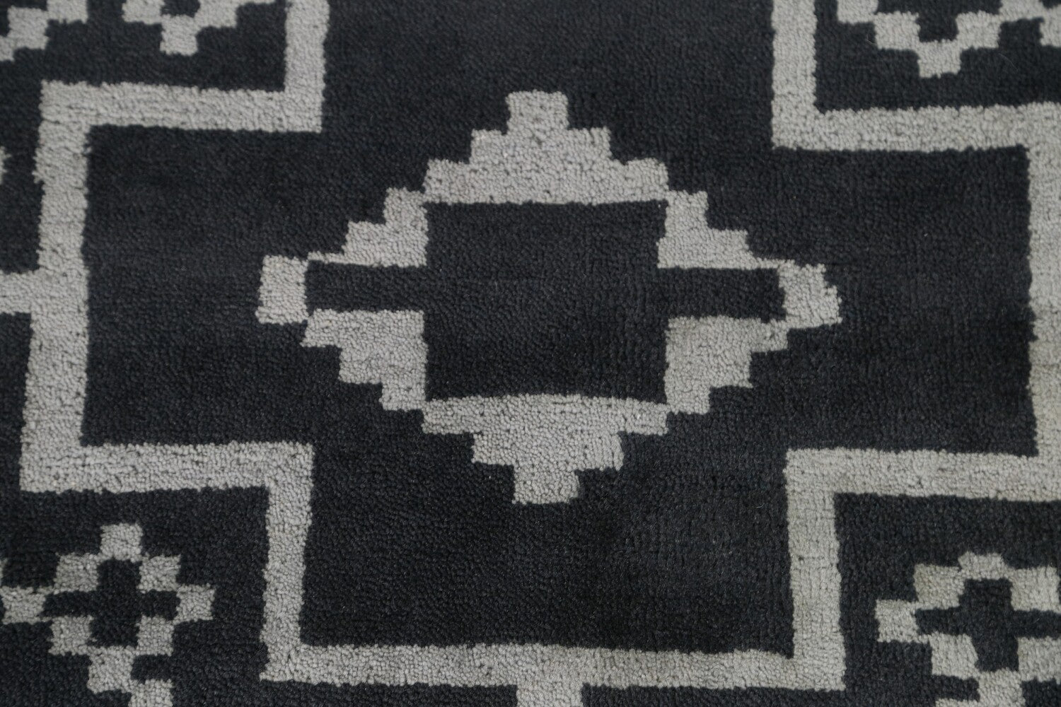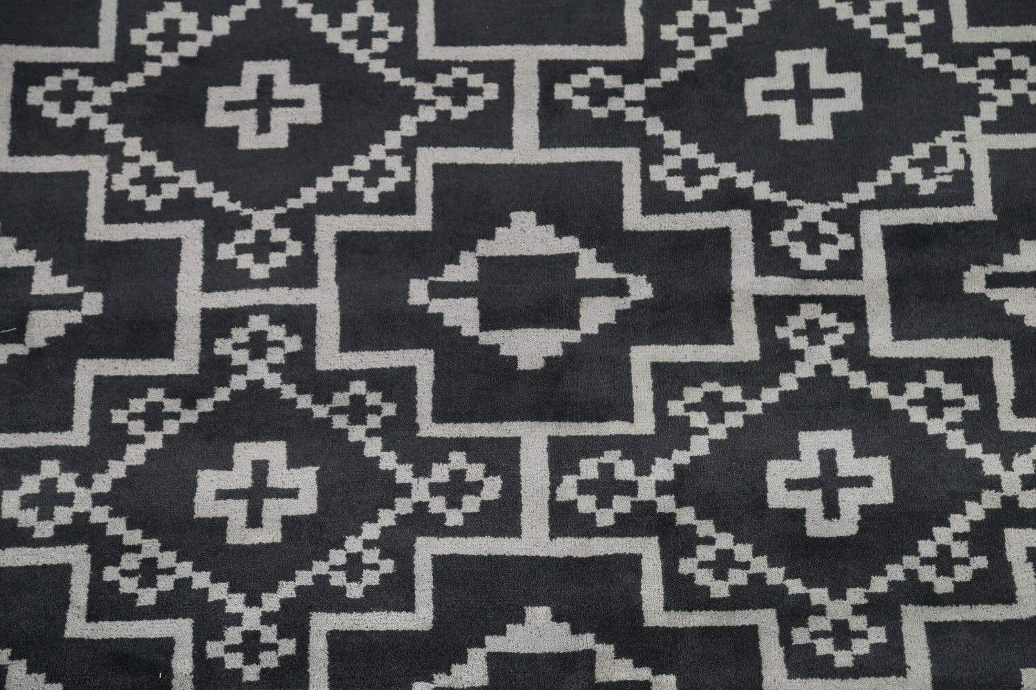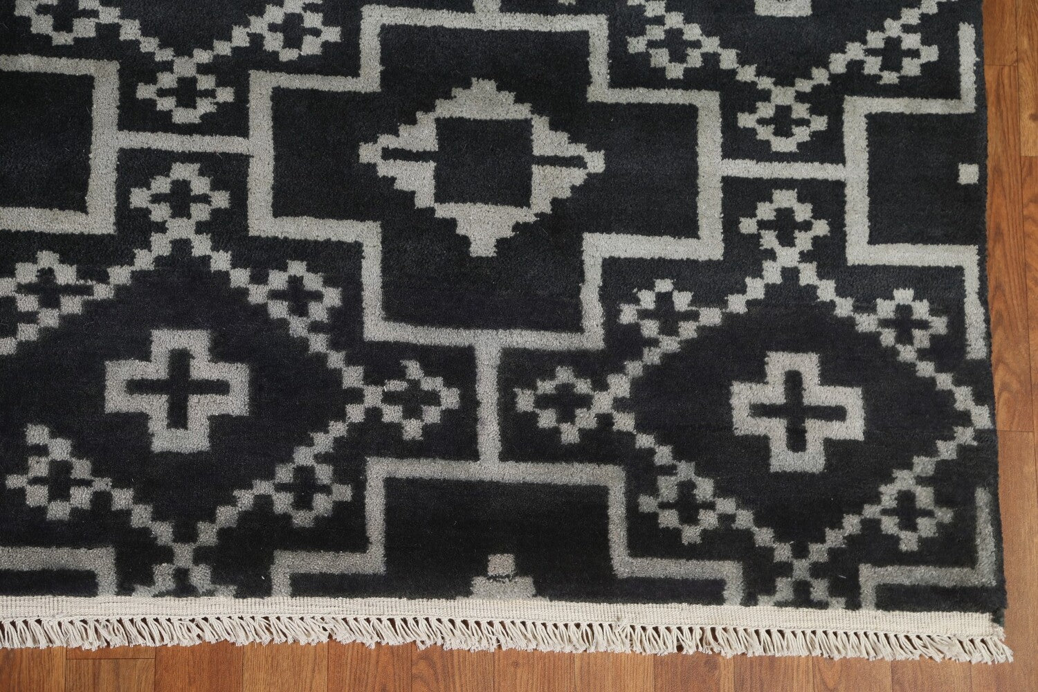 A Beautiful Genuine India Gabbeh rug is Hand Knotted by skillful weavers in India with 100% Wool Material. This rug is in New, First Quality condition. dimensions are 9' 9'' X 7' 8'' in foot and 297 X 234 in centimeter. the primary color is Black.