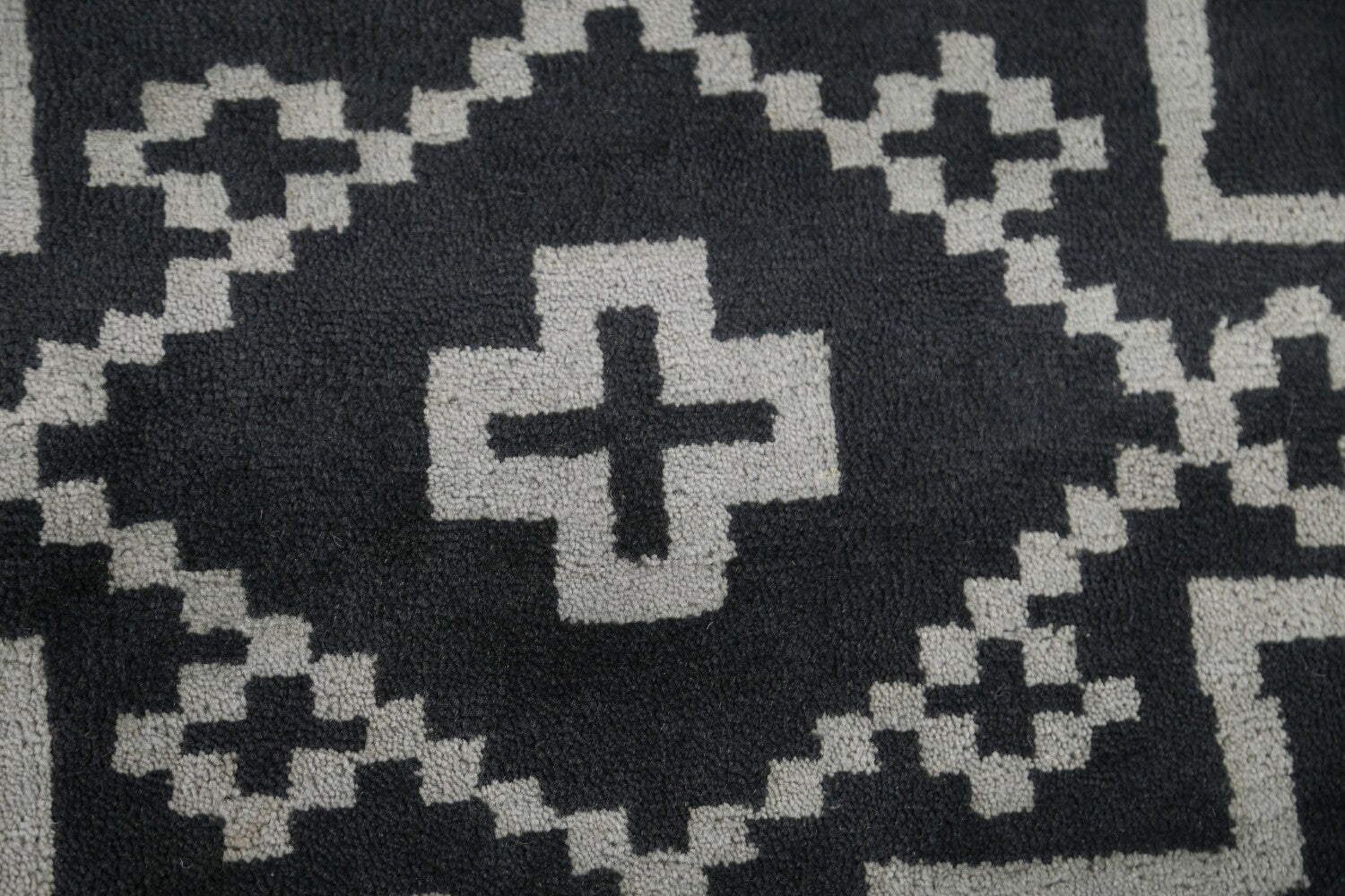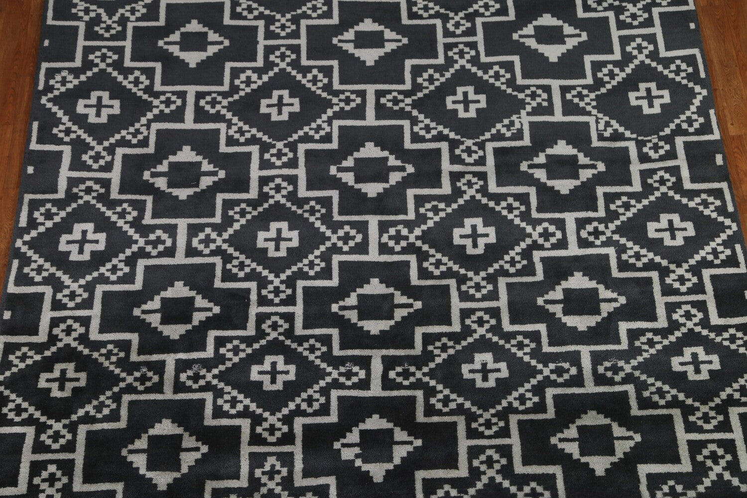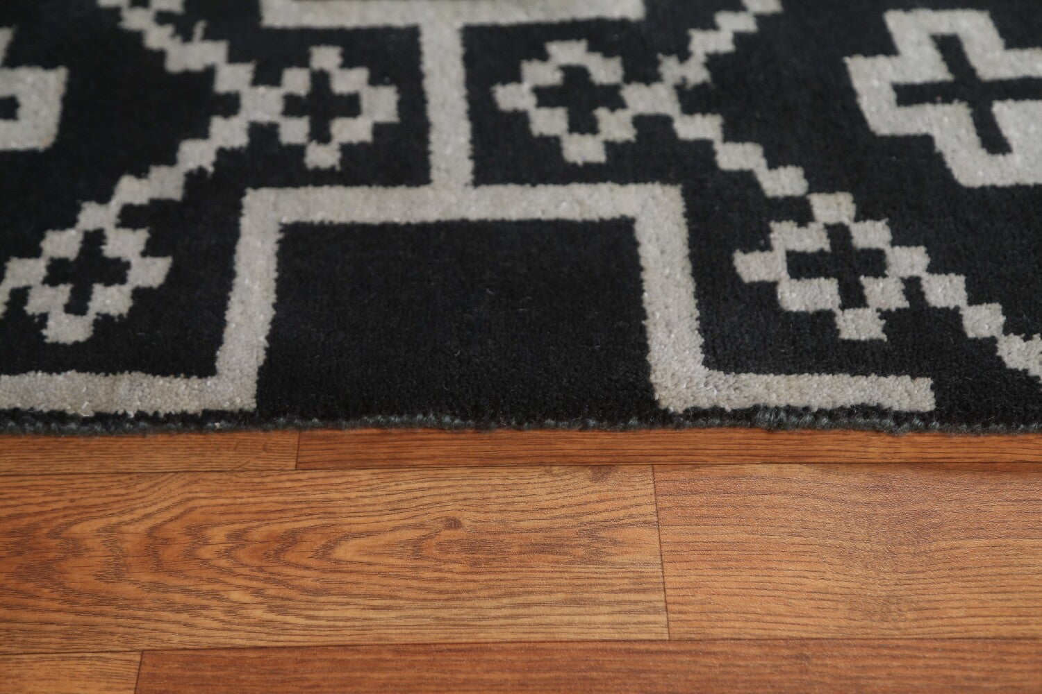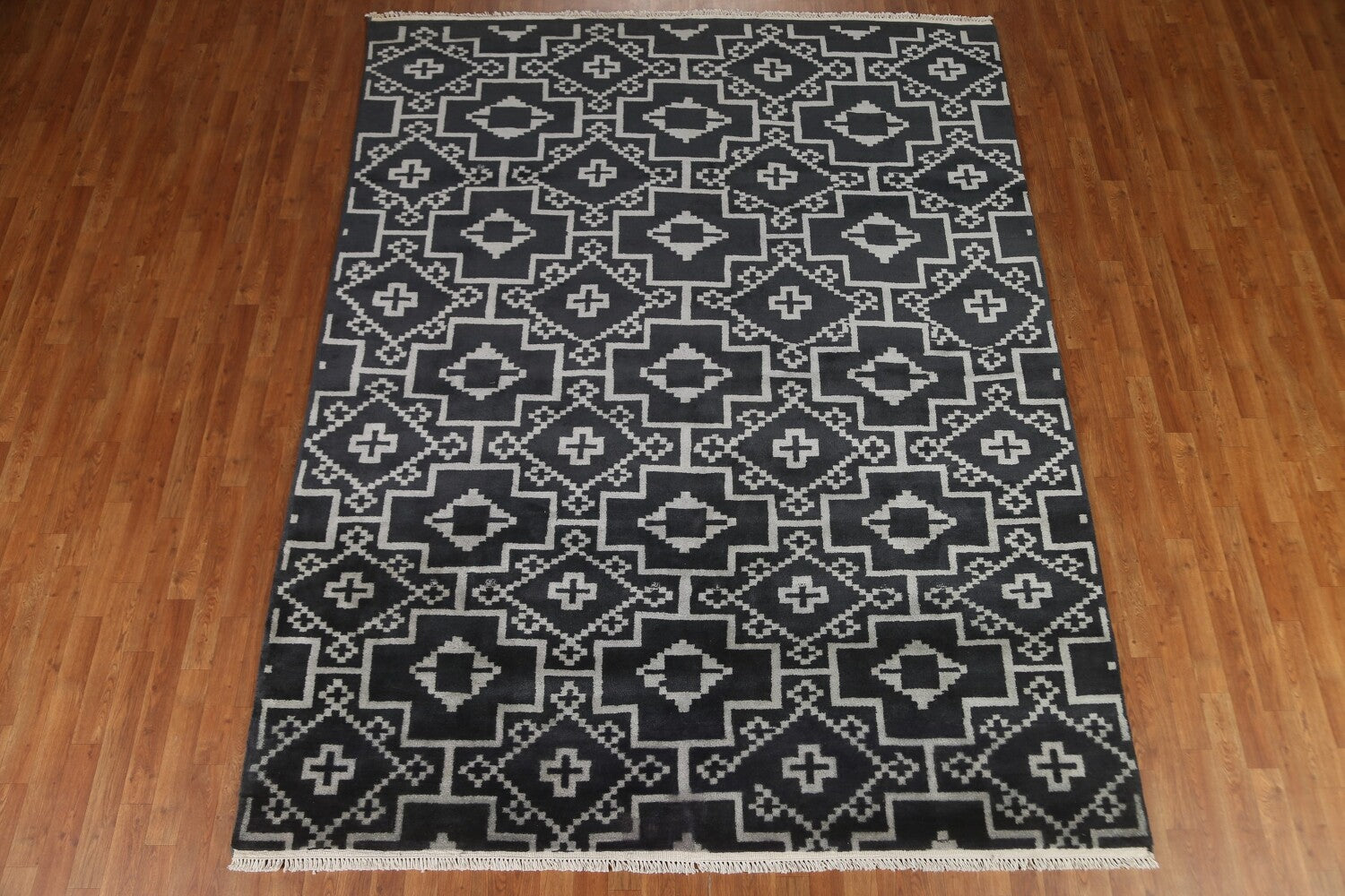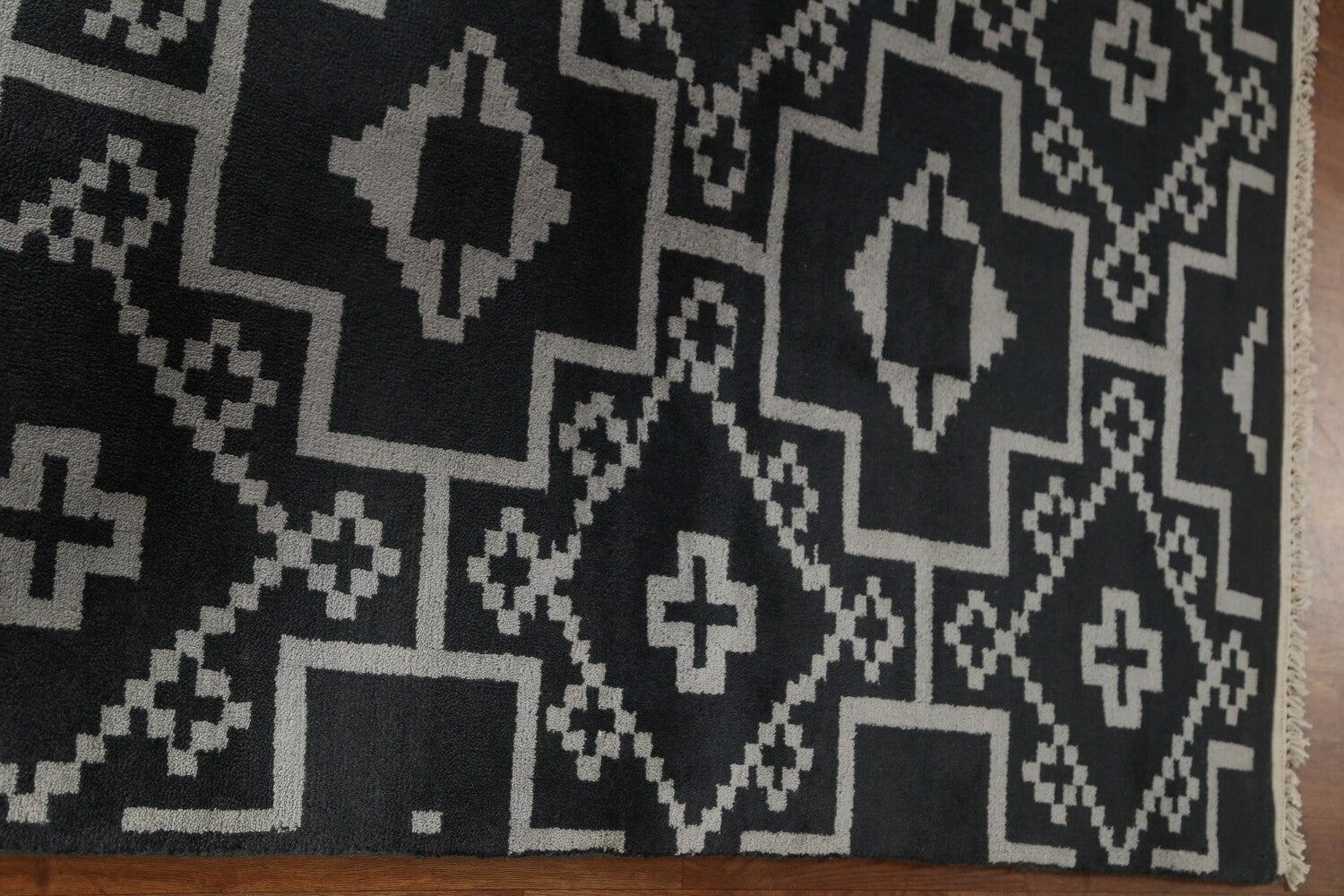 A Beautiful Genuine India Gabbeh rug is Hand Knotted by skillful weavers in India with 100% Wool Material. This rug is in New, First Quality condition. dimensions are 9' 9'' X 7' 8'' in foot and 297 X 234 in centimeter. the primary color is Black.