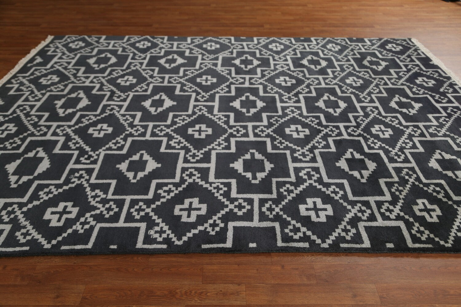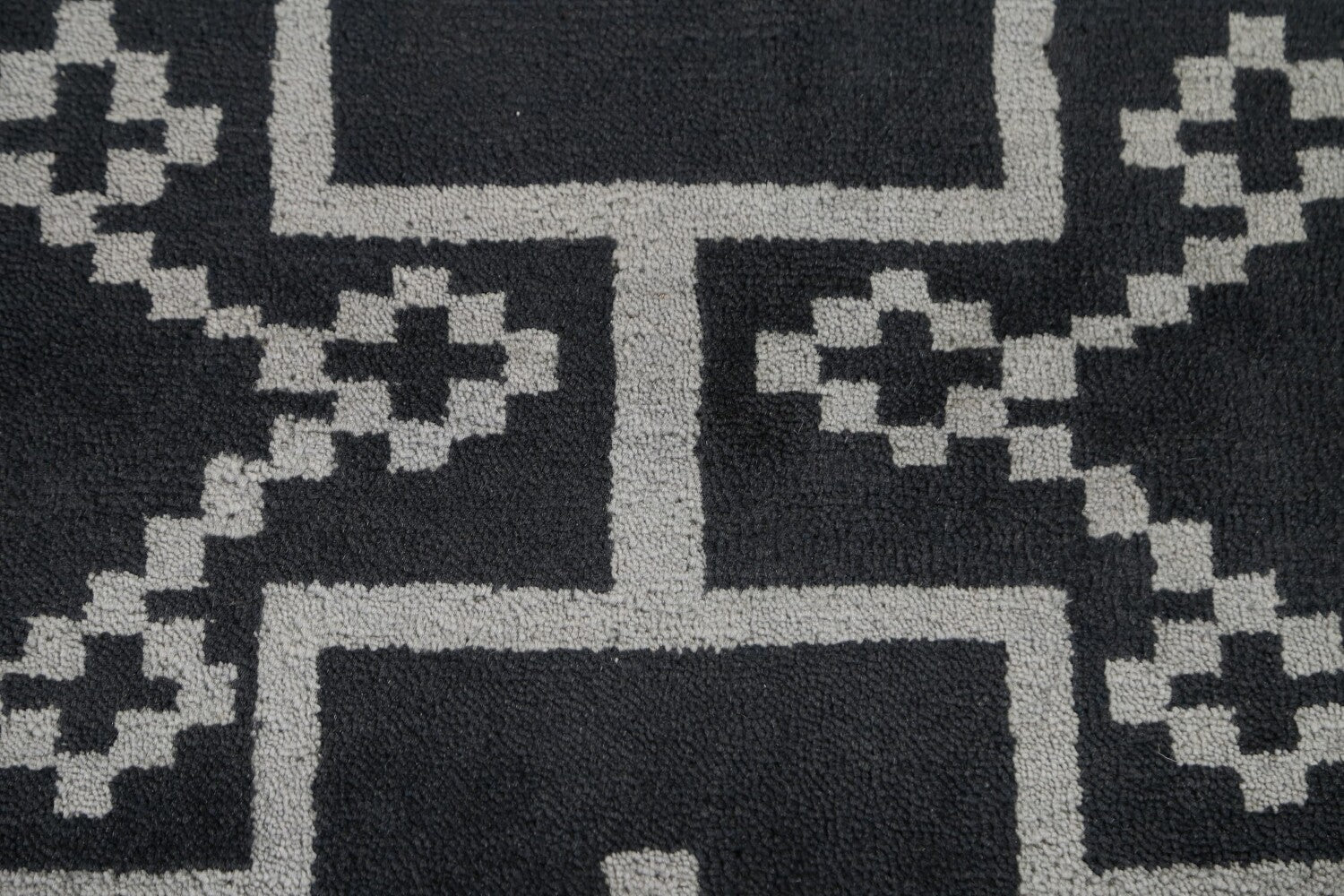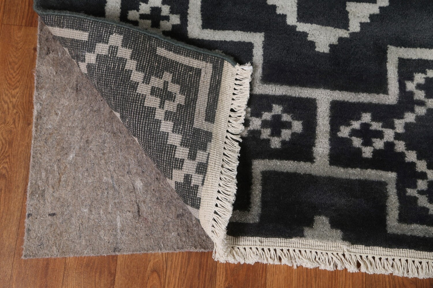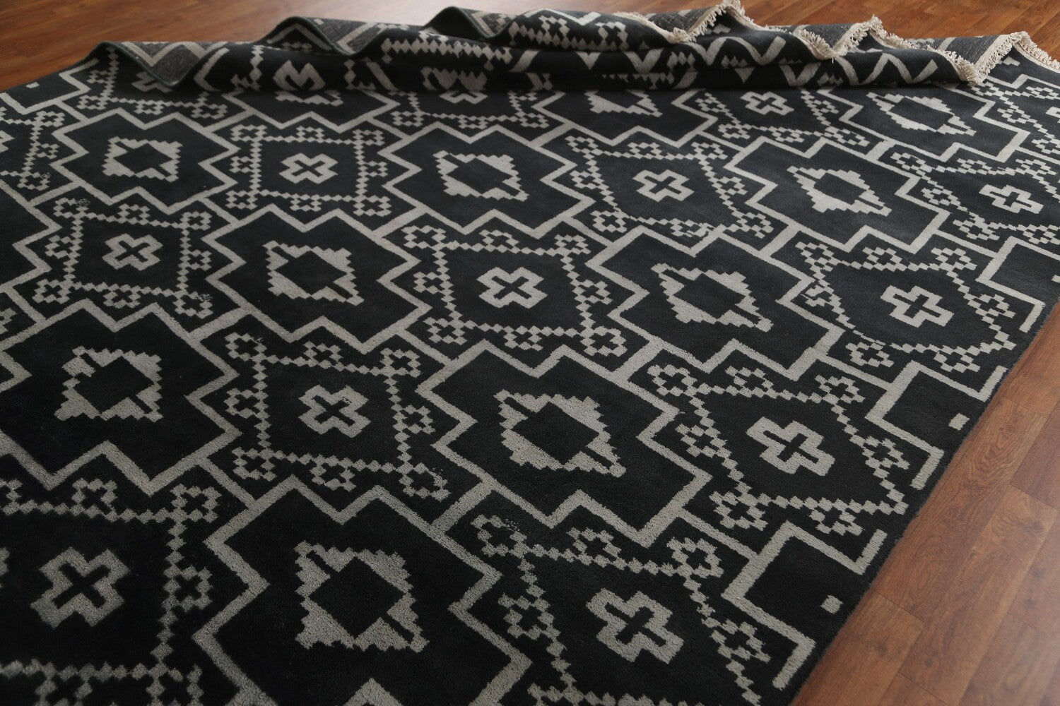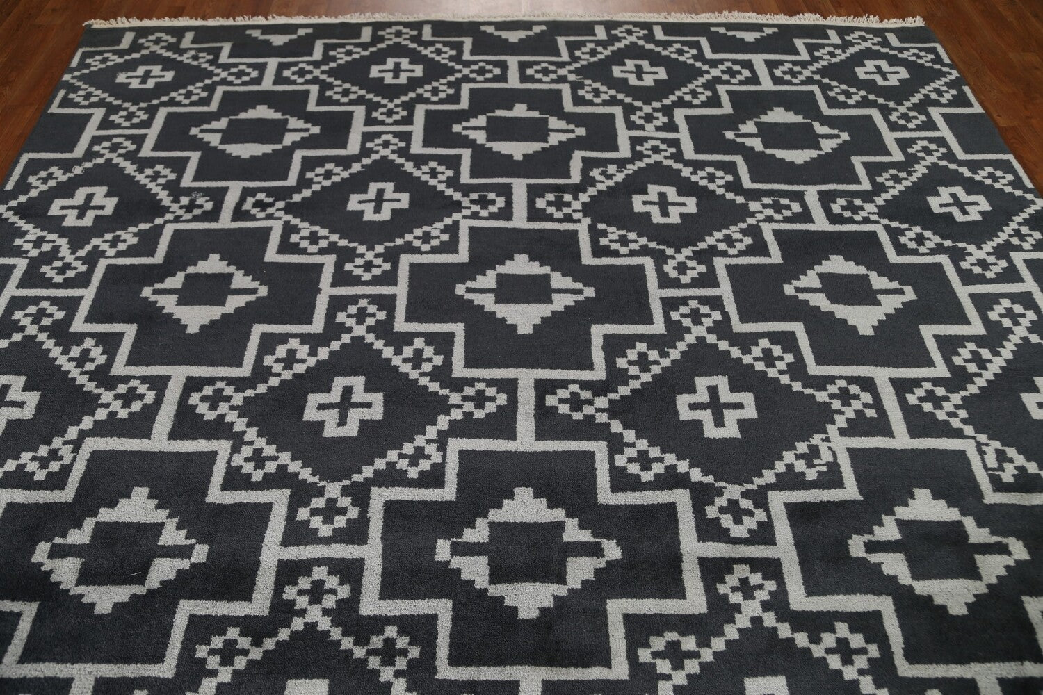 A Beautiful Genuine India Gabbeh rug is Hand Knotted by skillful weavers in India with 100% Wool Material. This rug is in New, First Quality condition. dimensions are 9' 9'' X 7' 8'' in foot and 297 X 234 in centimeter. the primary color is Black.