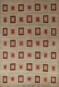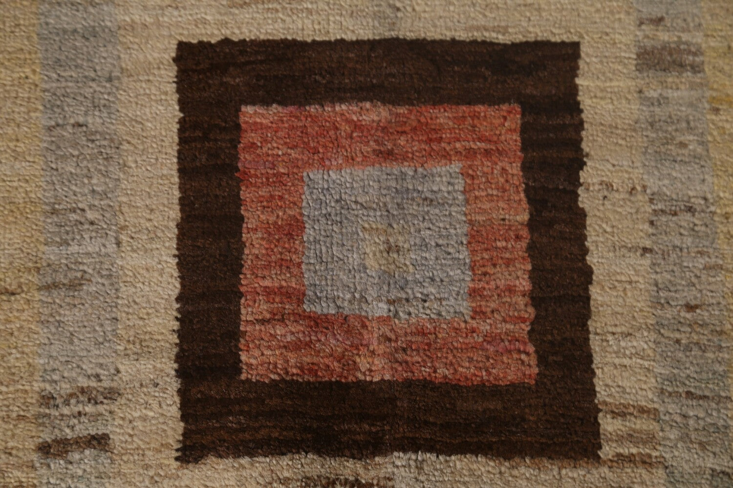 A Beautiful Genuine Pakistan Gabbeh (kashkoli) rug is Hand Knotted by skillful weavers in Pakistan with 100% Wool Material. This rug is in condition. dimensions are 9' 10'' X 8' 0'' in foot and 300 X 244 in centimeter. the primary color is Beige & Ivories.