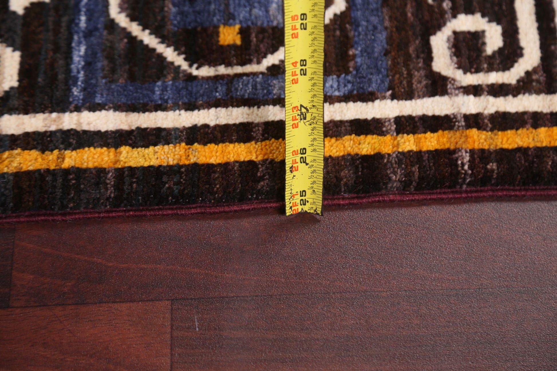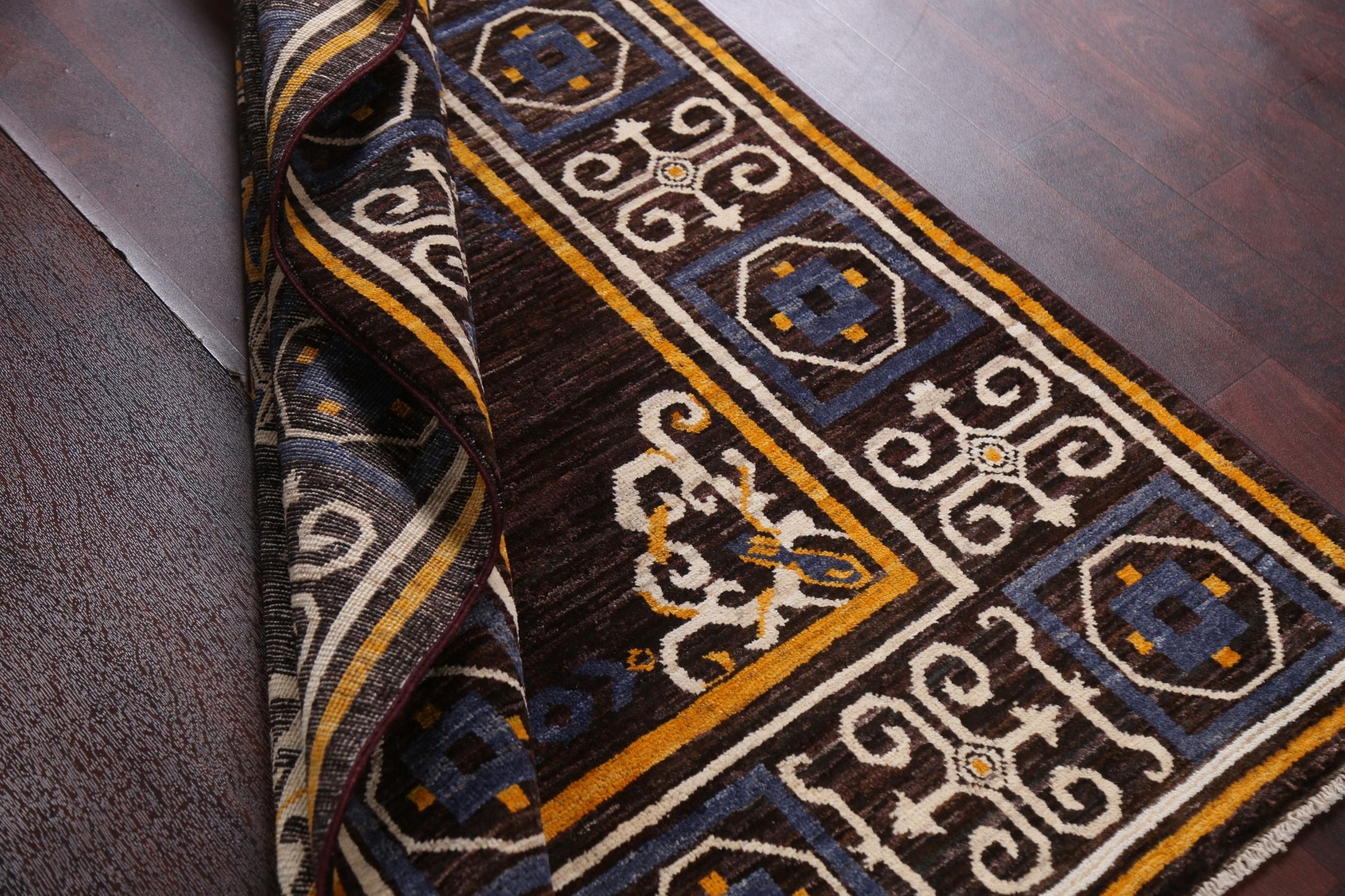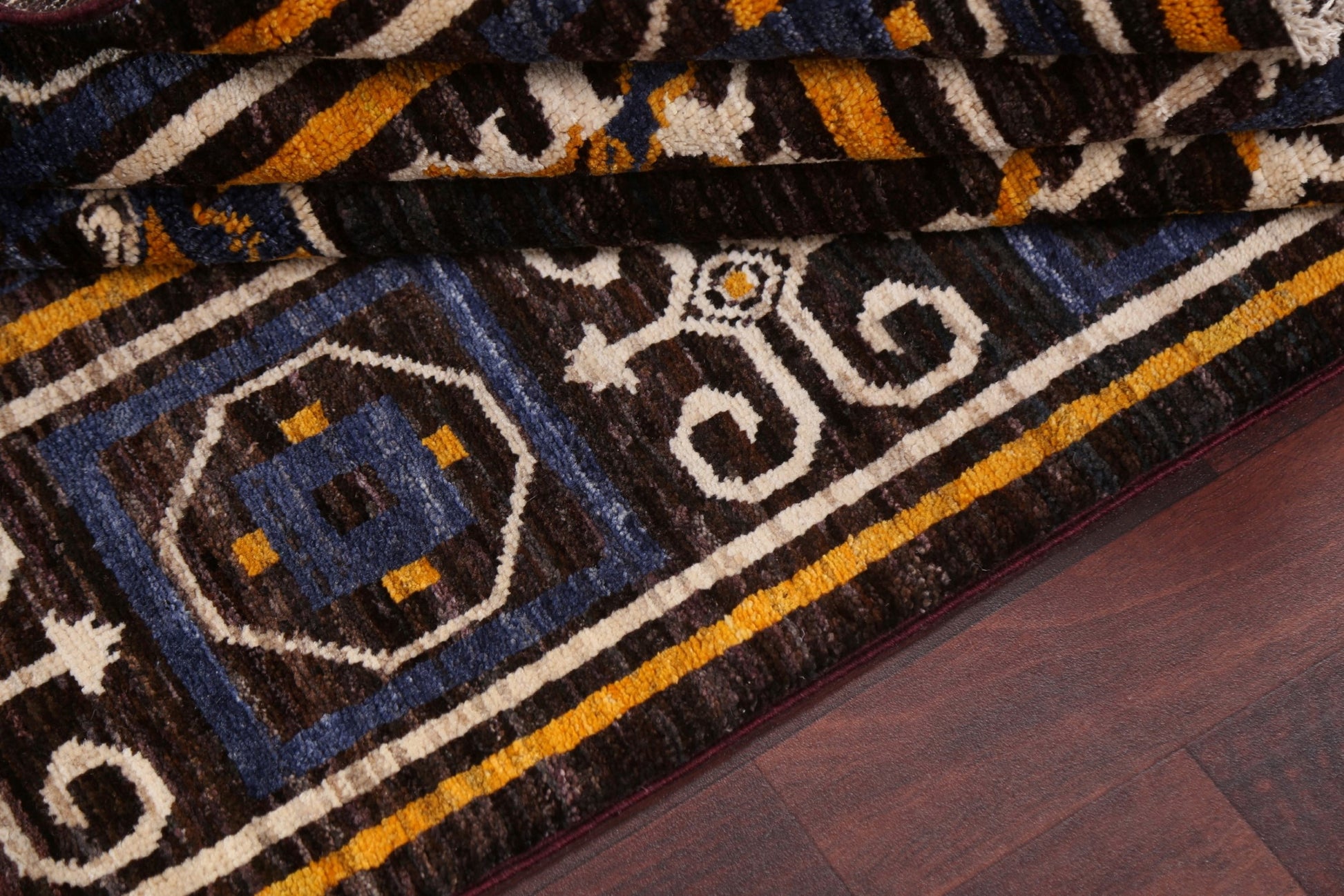 A Beautiful Genuine Afghanistan Gabbeh (kashkoli) rug is Hand Knotted by skillful weavers in Afghanistan with 100% Wool Material. This rug is in New, First Quality condition. dimensions are 5' 11'' X 3' 10'' in foot and 180 X 117 in centimeter. the primary color is Brown.
