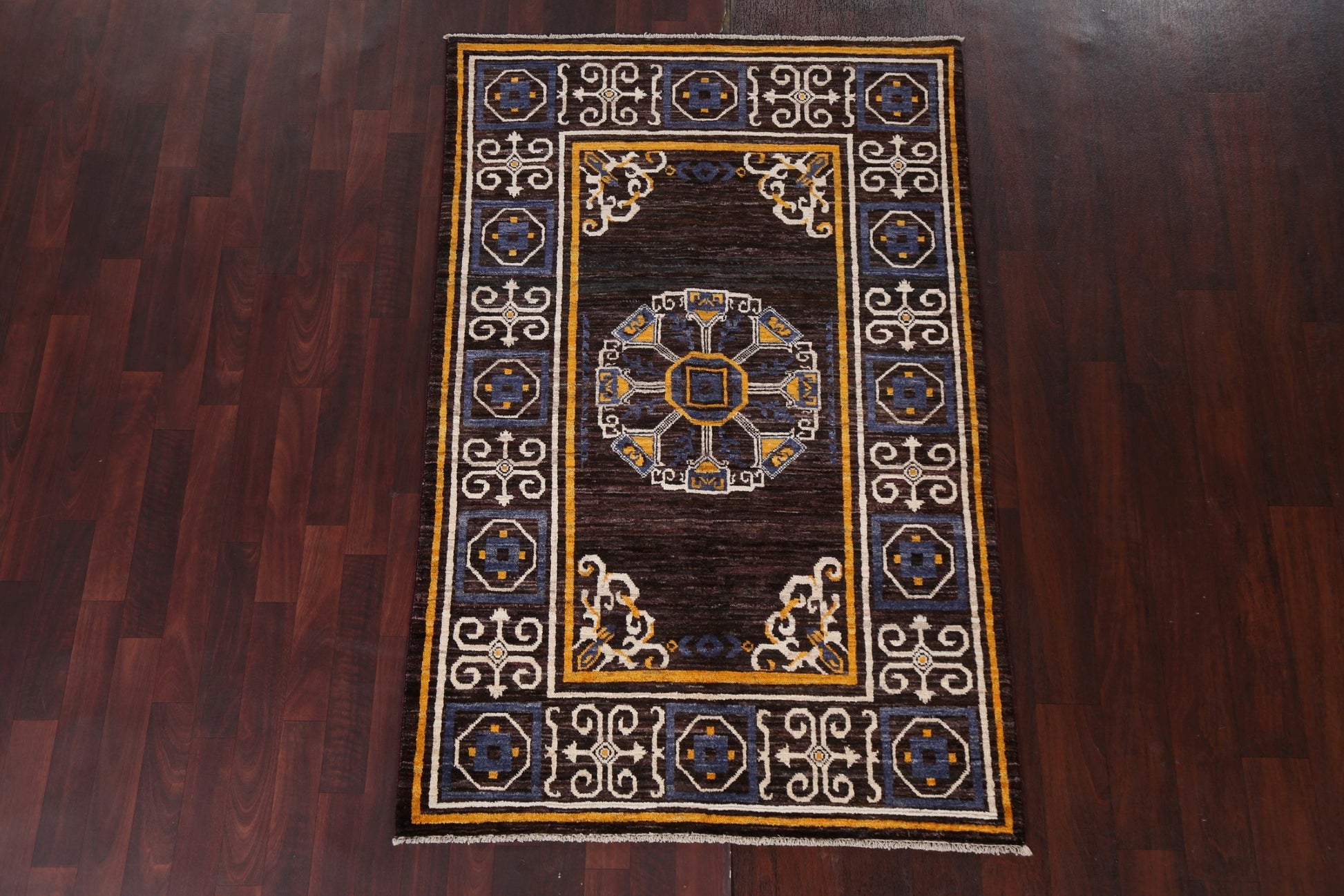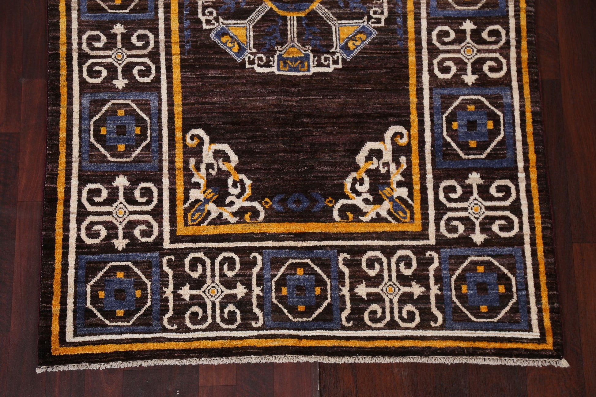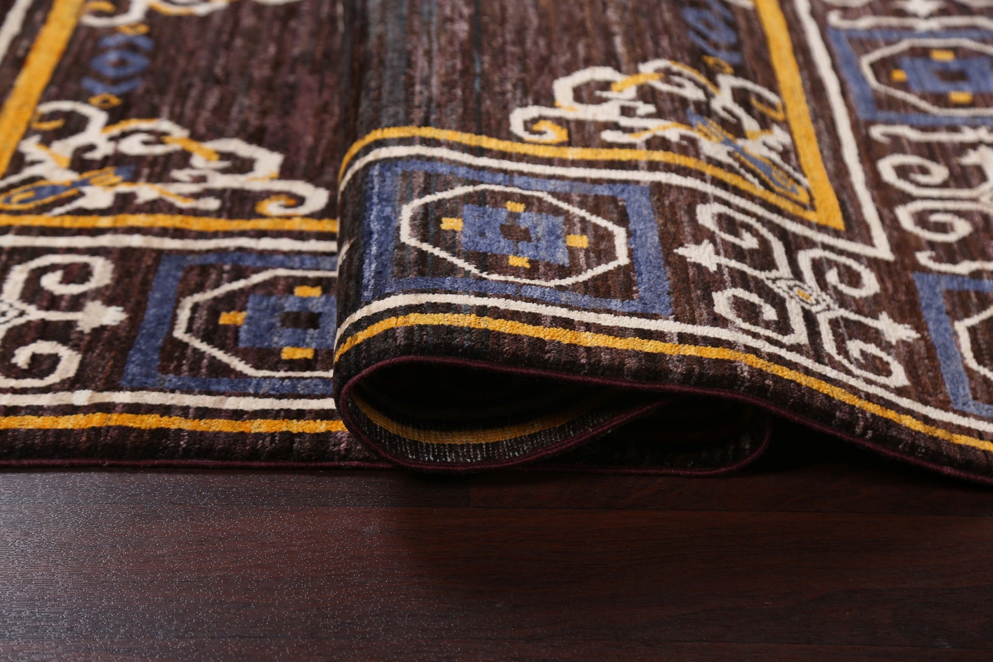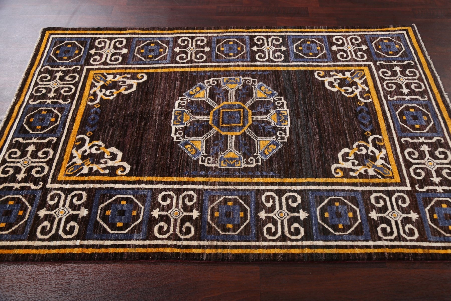 A Beautiful Genuine Afghanistan Gabbeh (kashkoli) rug is Hand Knotted by skillful weavers in Afghanistan with 100% Wool Material. This rug is in New, First Quality condition. dimensions are 5' 11'' X 3' 10'' in foot and 180 X 117 in centimeter. the primary color is Brown.