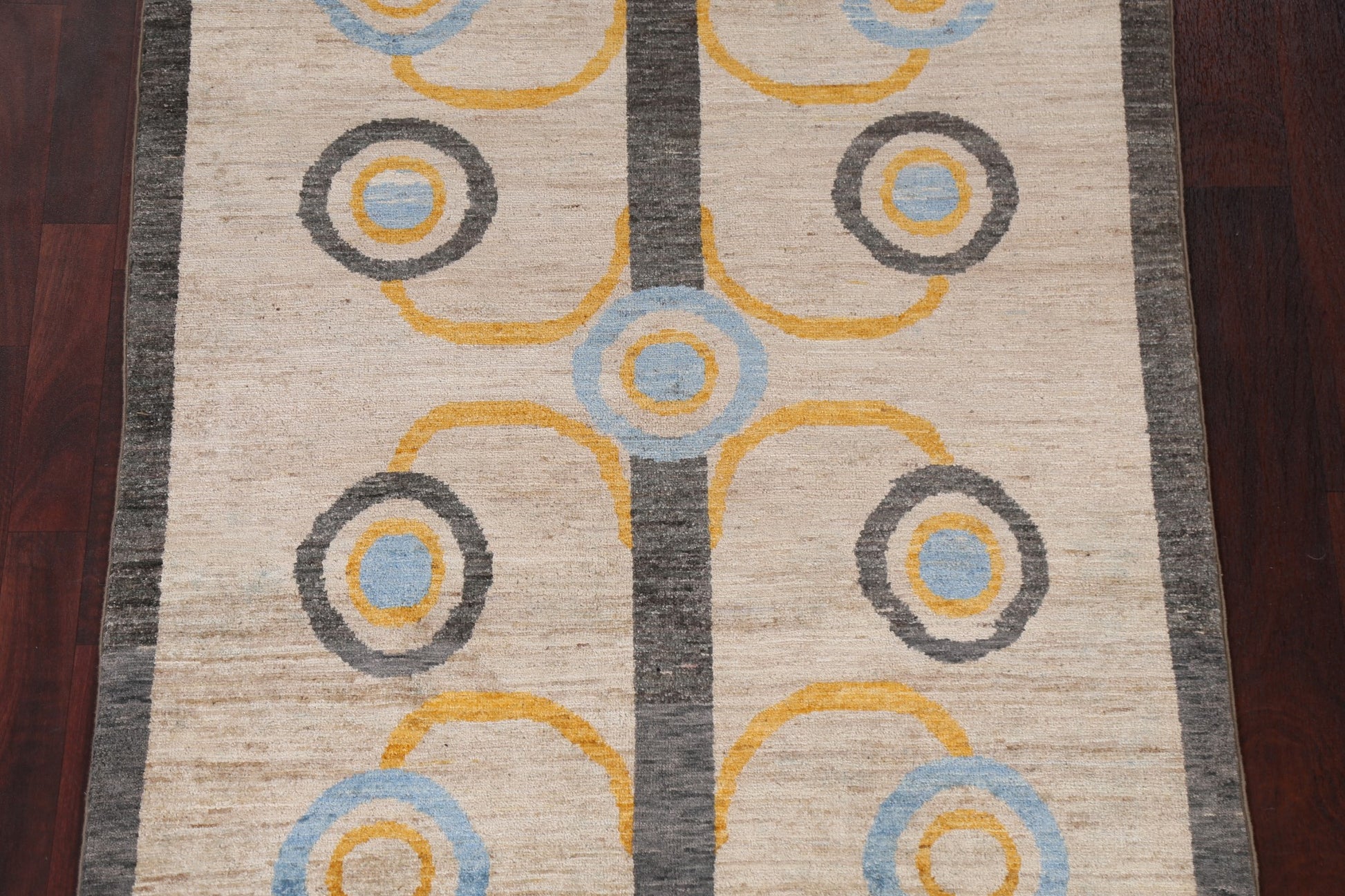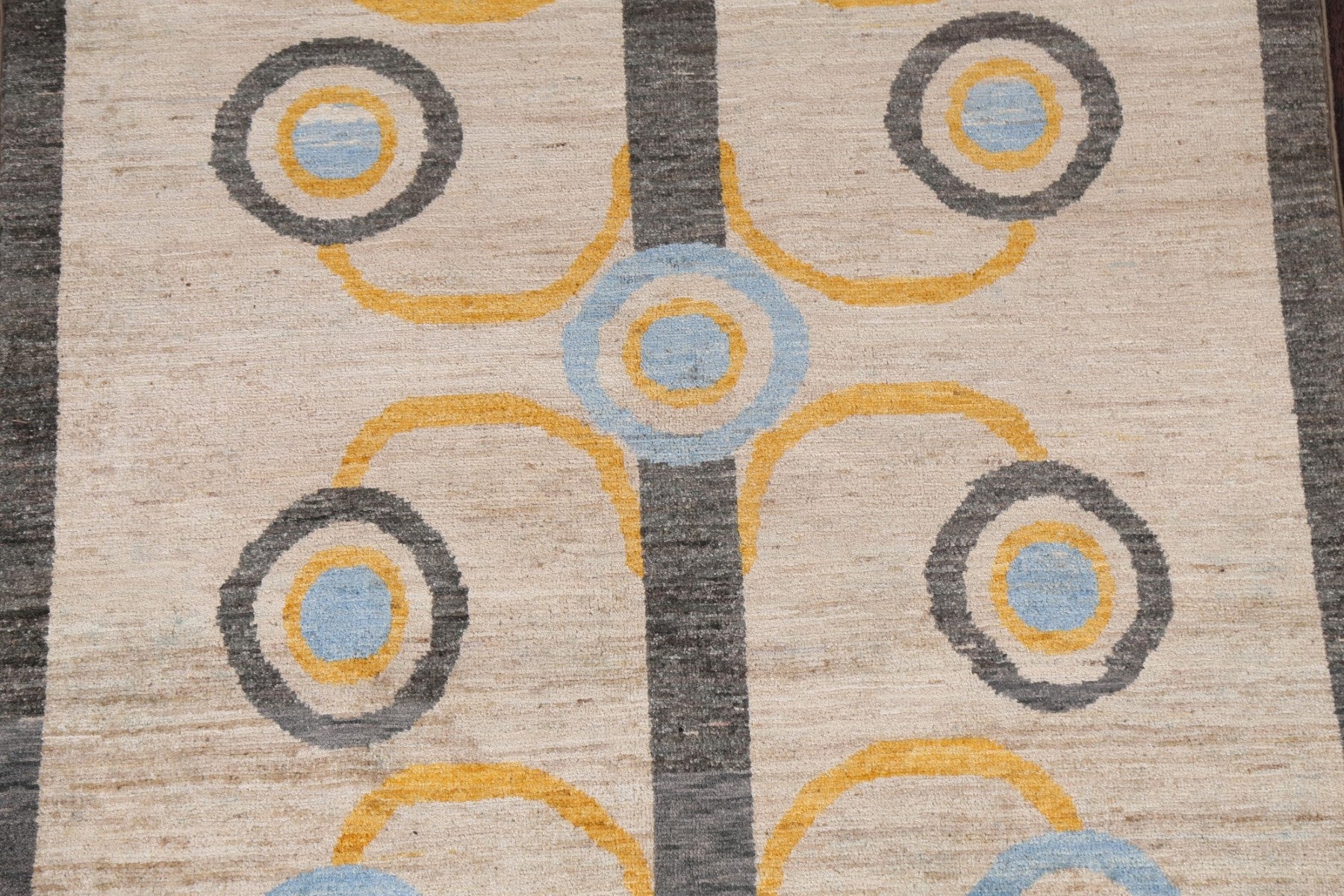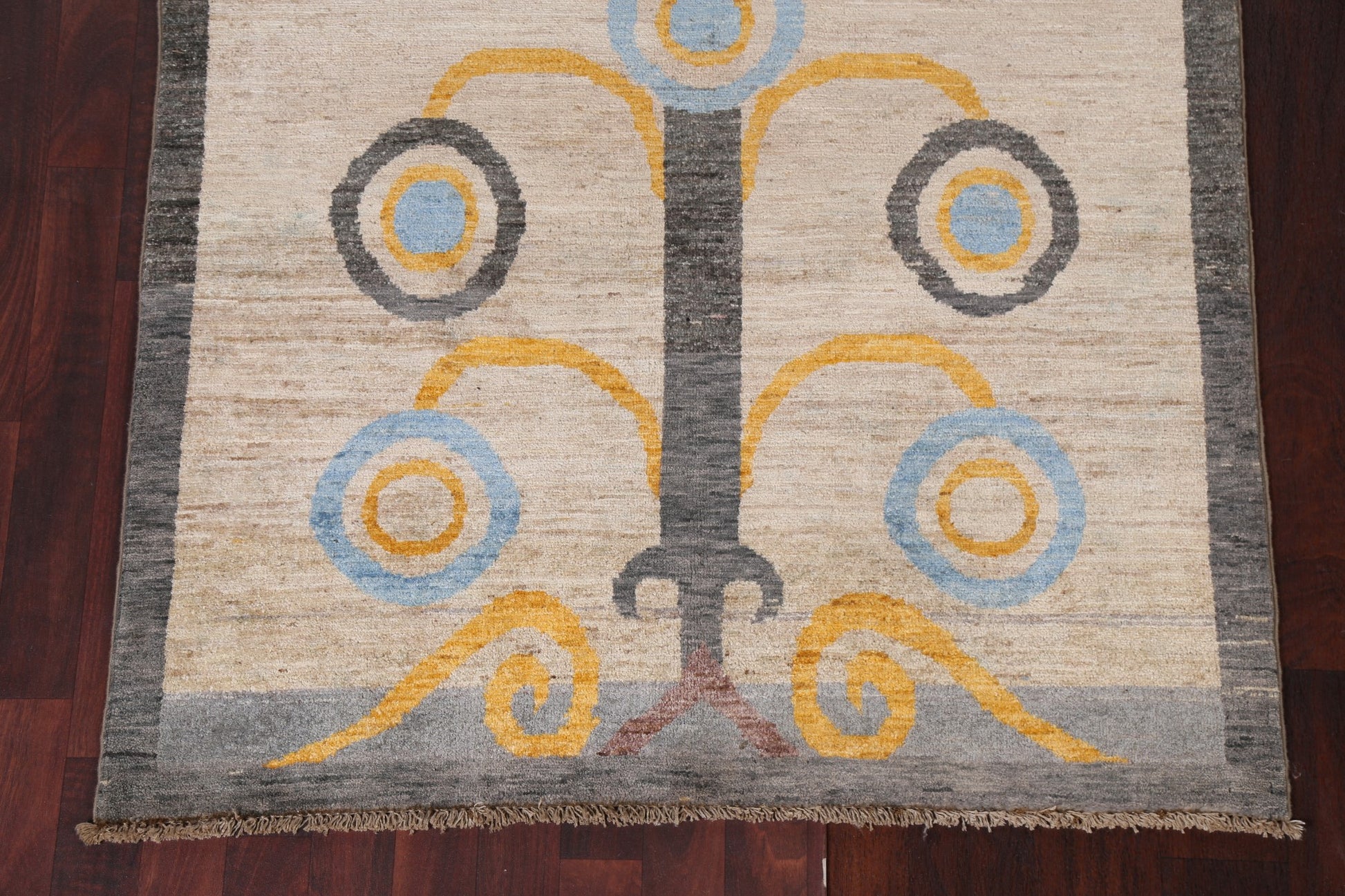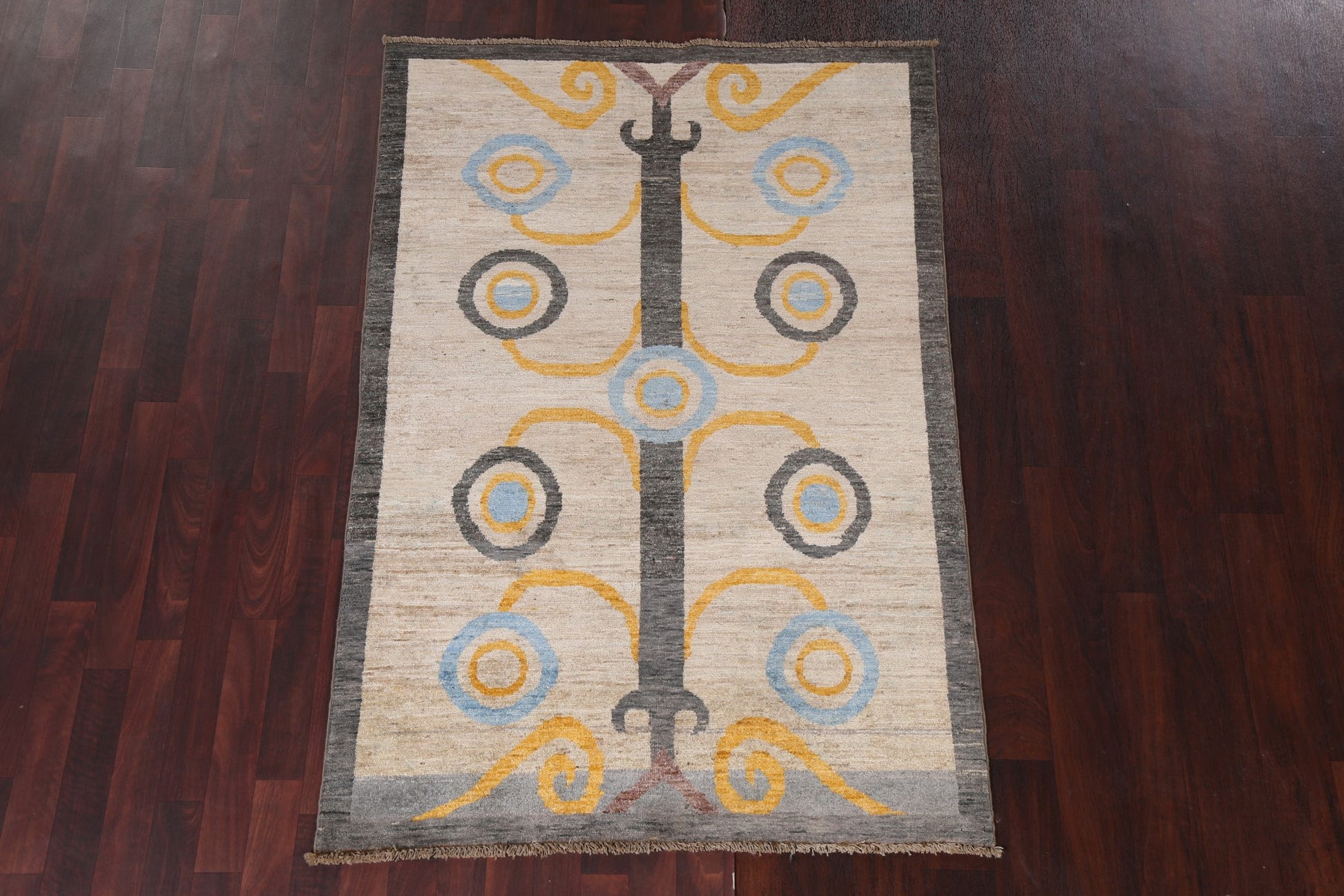 A Beautiful Genuine Pakistan Gabbeh (kashkoli) rug is Hand Knotted by skillful weavers in Pakistan with 100% Wool Material. This rug is in New, First Quality condition. dimensions are 5' 11'' X 3' 11'' in foot and 180 X 119 in centimeter. the primary color is Beige & Ivories.