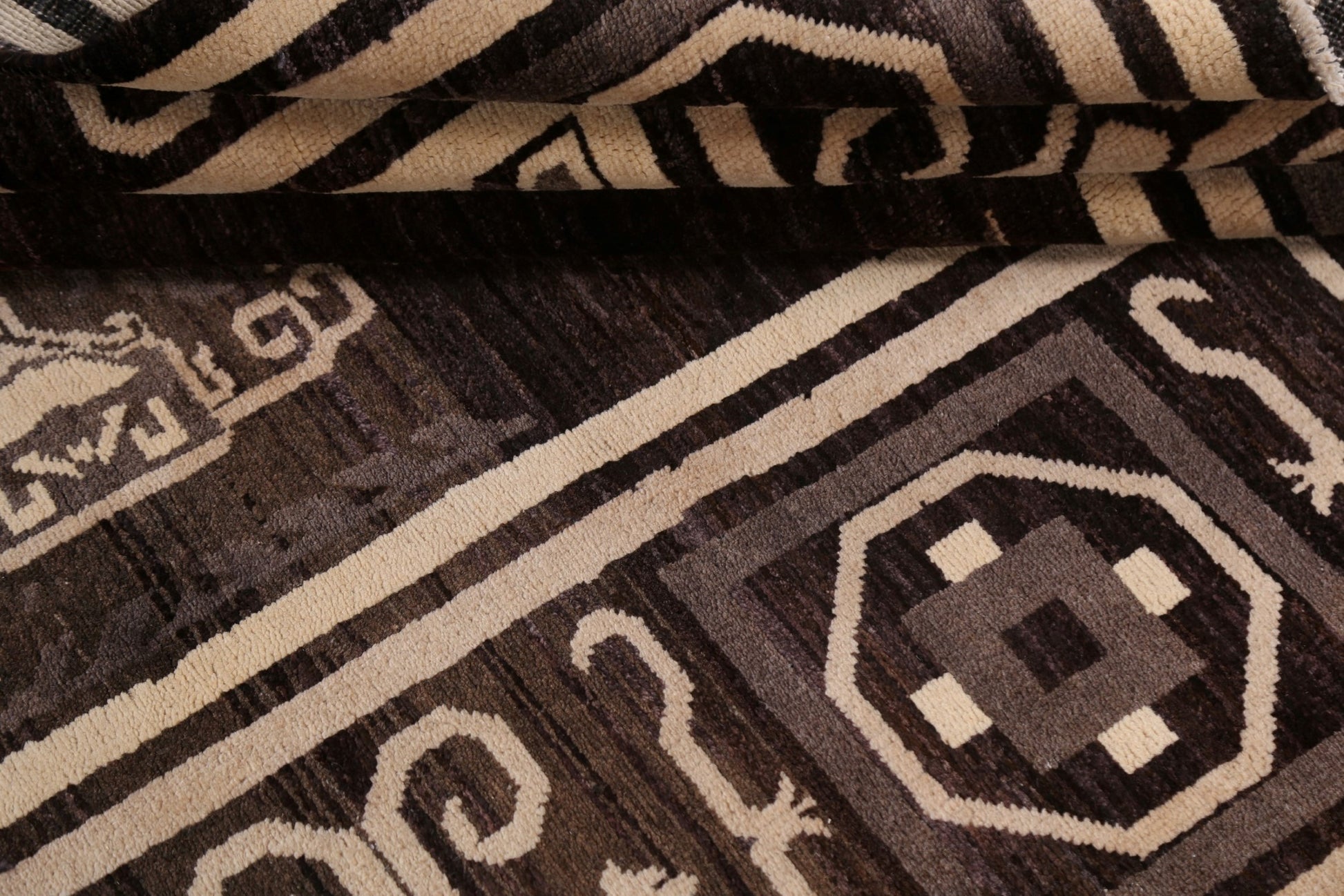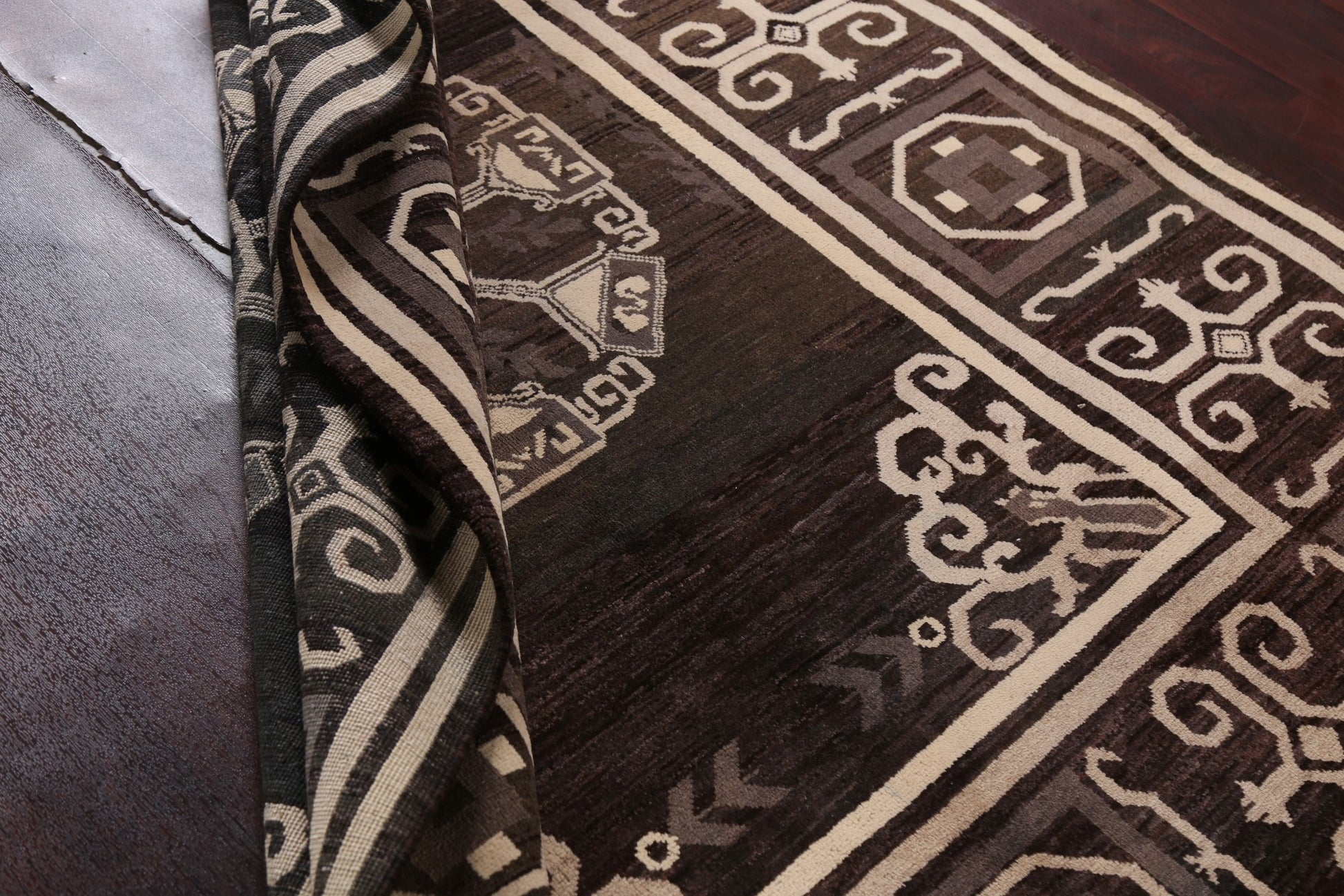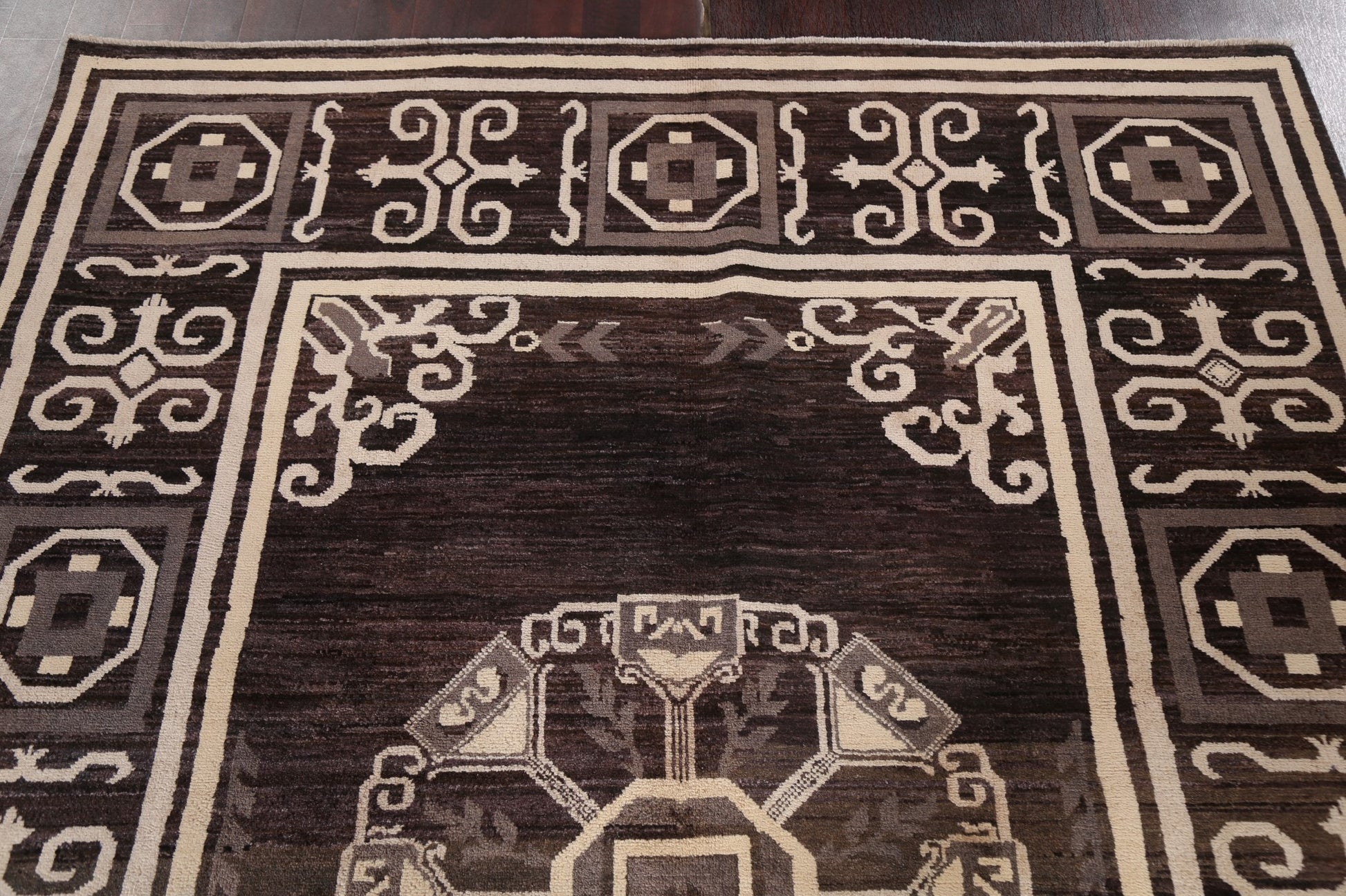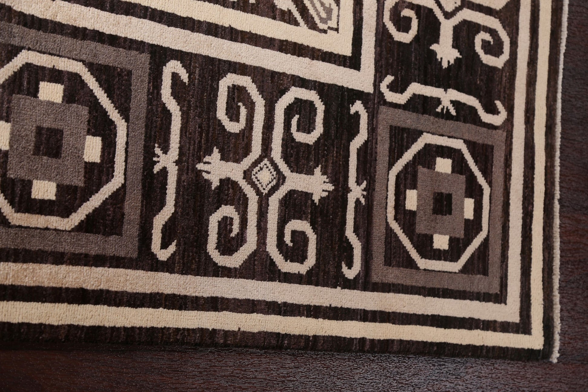 A Beautiful Genuine Afghanistan Gabbeh (kashkoli) rug is Hand Knotted by skillful weavers in Afghanistan with 100% Wool Material. This rug is in New, First Quality condition. dimensions are 7' 9'' X 5' 8'' in foot and 236 X 173 in centimeter. the primary color is Brown.