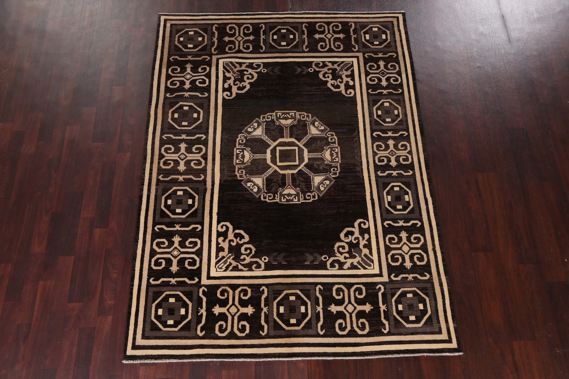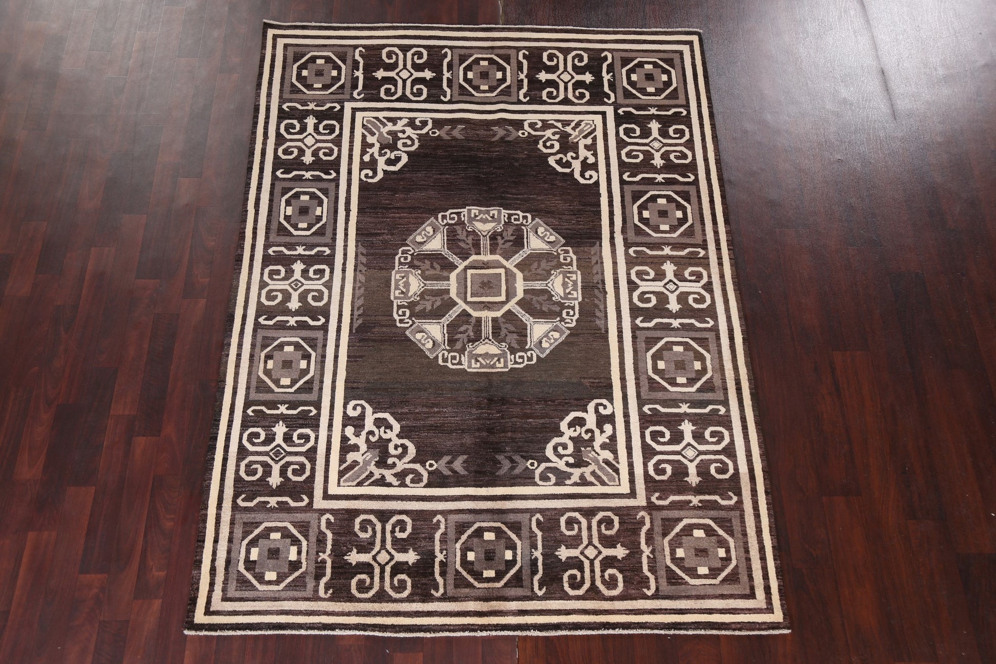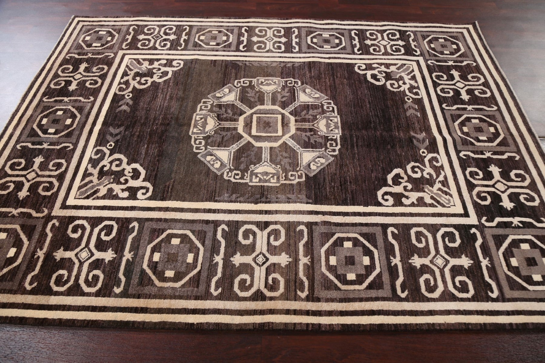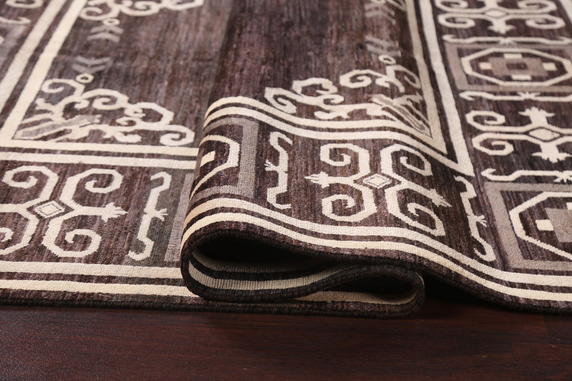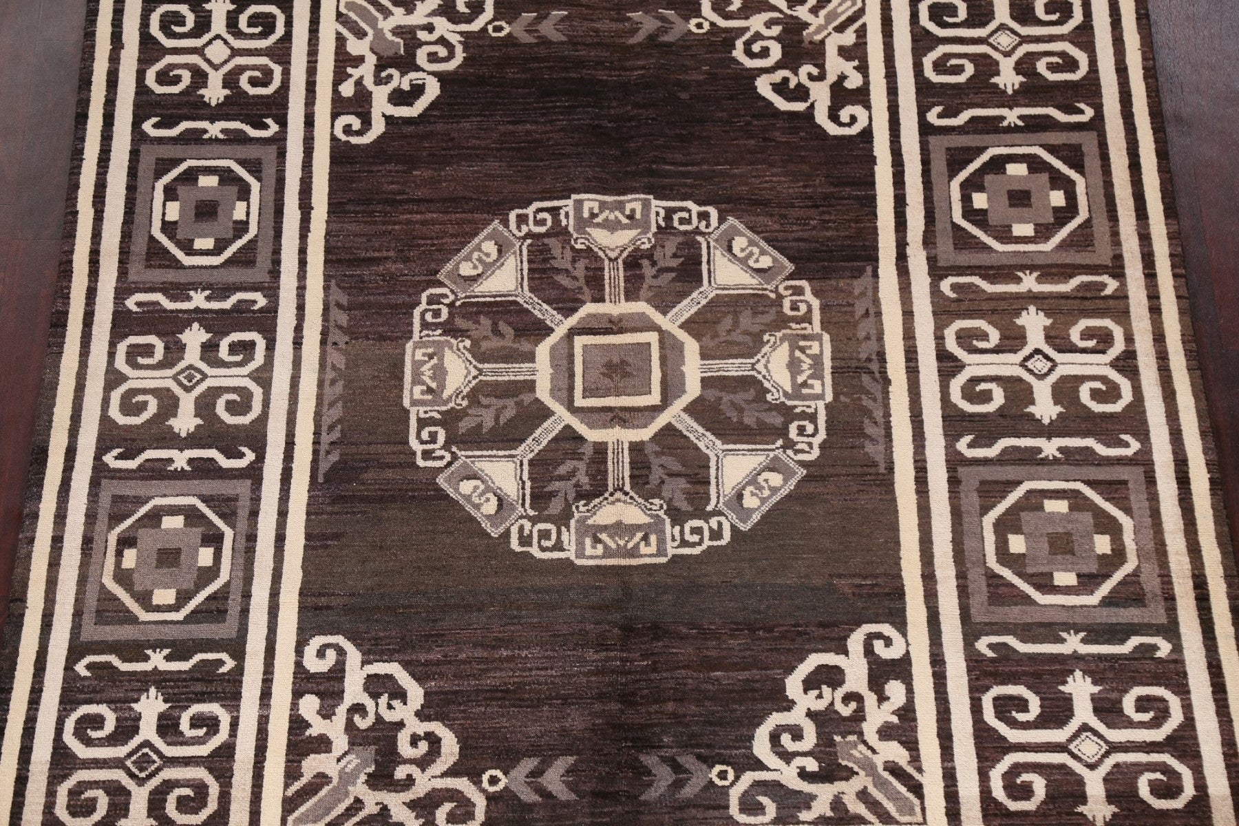A Beautiful Genuine Afghanistan Gabbeh (kashkoli) rug is Hand Knotted by skillful weavers in Afghanistan with 100% Wool Material. This rug is in New, First Quality condition. dimensions are 7' 9'' X 5' 8'' in foot and 236 X 173 in centimeter. the primary color is Brown.