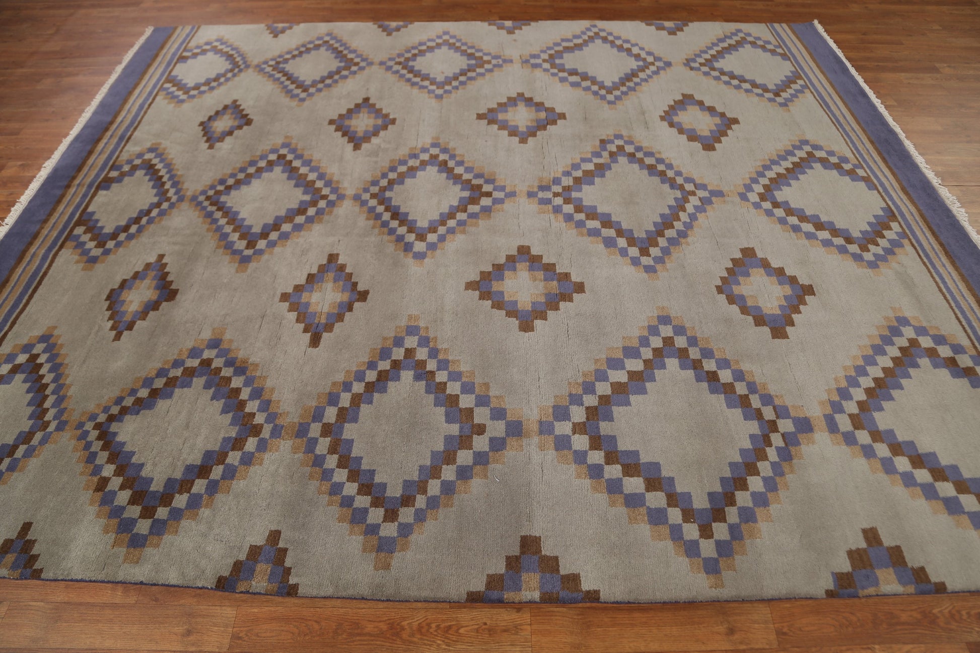 A Beautiful Genuine India Gabbeh rug is Hand Knotted by skillful weavers in India with 100% Wool Material. This rug is in New, First Quality condition. dimensions are 9' 6'' X 8' 0'' in foot and 290 X 244 in centimeter. the primary color is Beige & Ivories.