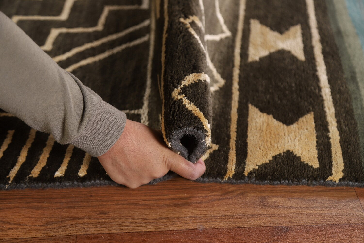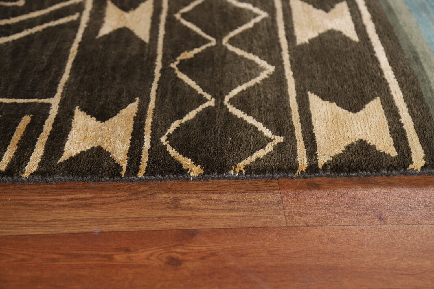 A Beautiful Genuine India Gabbeh rug is Hand Knotted by skillful weavers in India with 100% Wool Material. This rug is in New, First Quality condition. dimensions are 11' 4'' X 7' 11'' in foot and 345 X 241 in centimeter. the primary color is Brown.