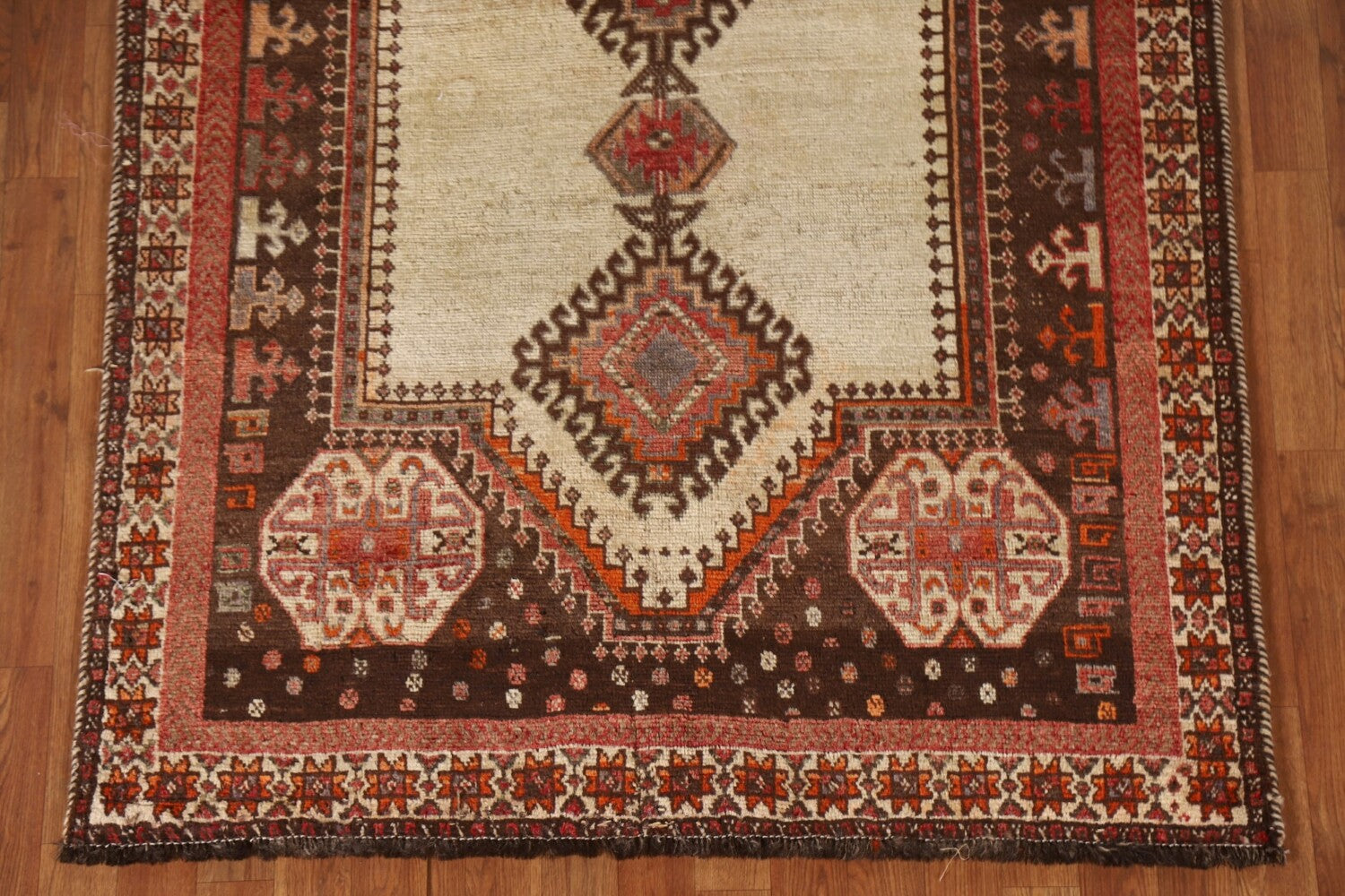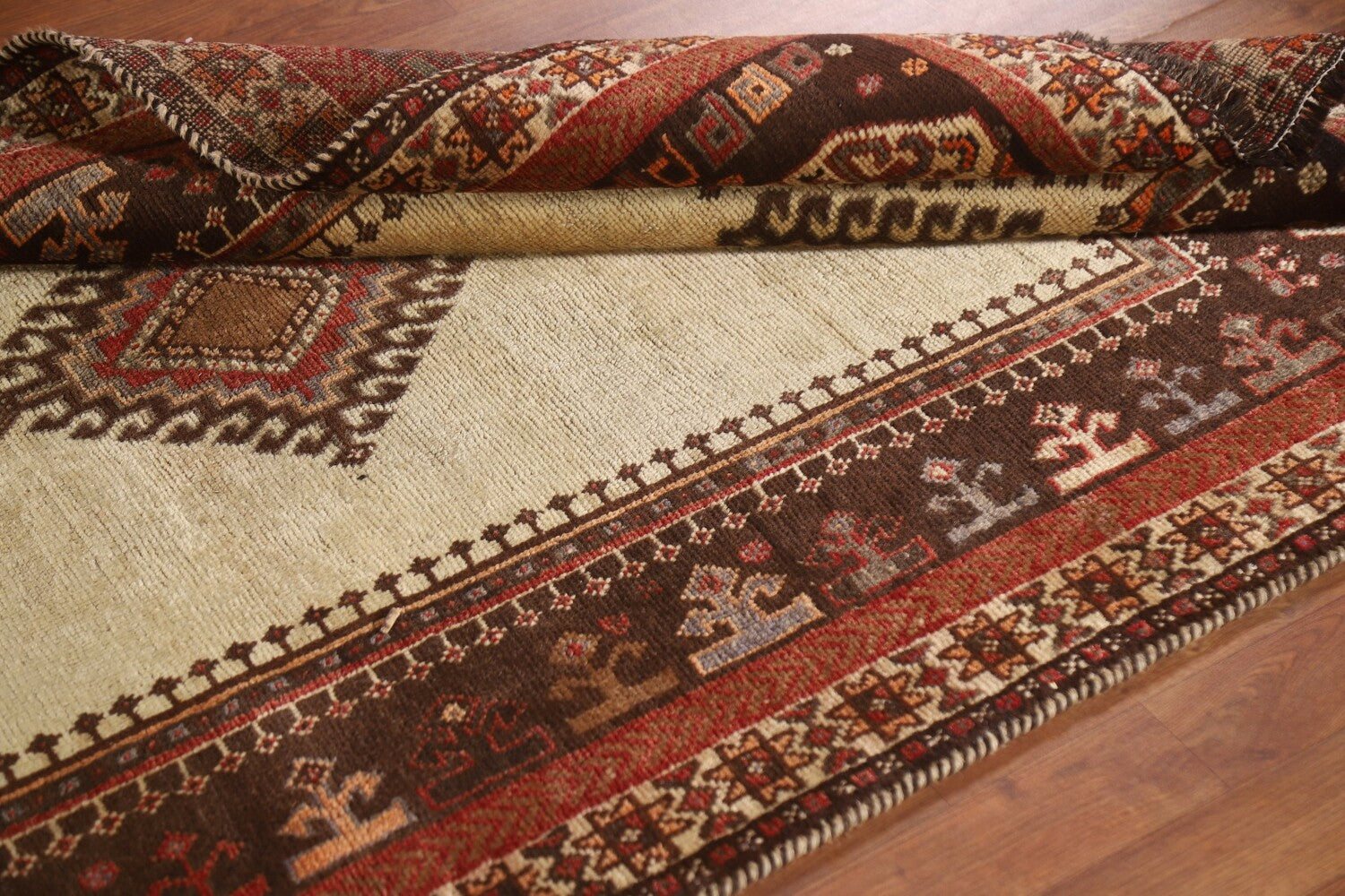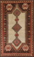 A Beautiful Genuine Persia ( Persia ) Gabbeh rug is Hand Knotted by skillful weavers in Persia ( Persia ) with 100% Wool Material. This rug is in Very Good (Evenly Low Pile) condition. dimensions are 7' 2'' X 4' 5'' in foot and 218 X 135 in centimeter. the primary color is Beige & Ivories.