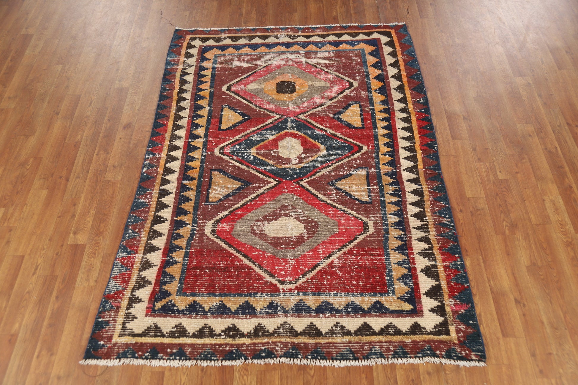 A Beautiful Genuine Persia ( Persia ) Gabbeh rug is Hand Knotted by skillful weavers in Persia ( Persia ) with 100% Wool Material. This rug is in Good (Evenly Low Pile) condition. dimensions are 6' 7'' X 4' 9'' in foot and 201 X 145 in centimeter. the primary color is Red.