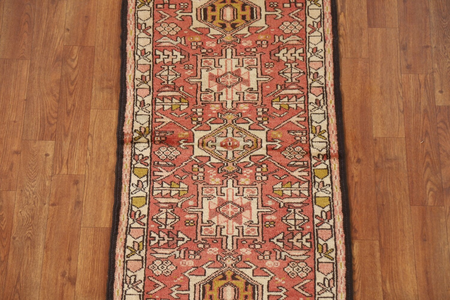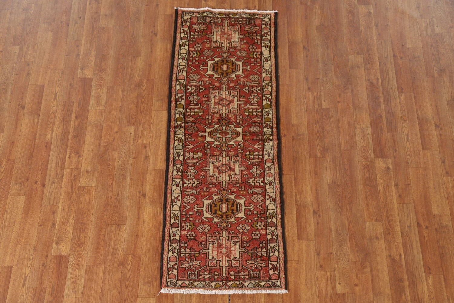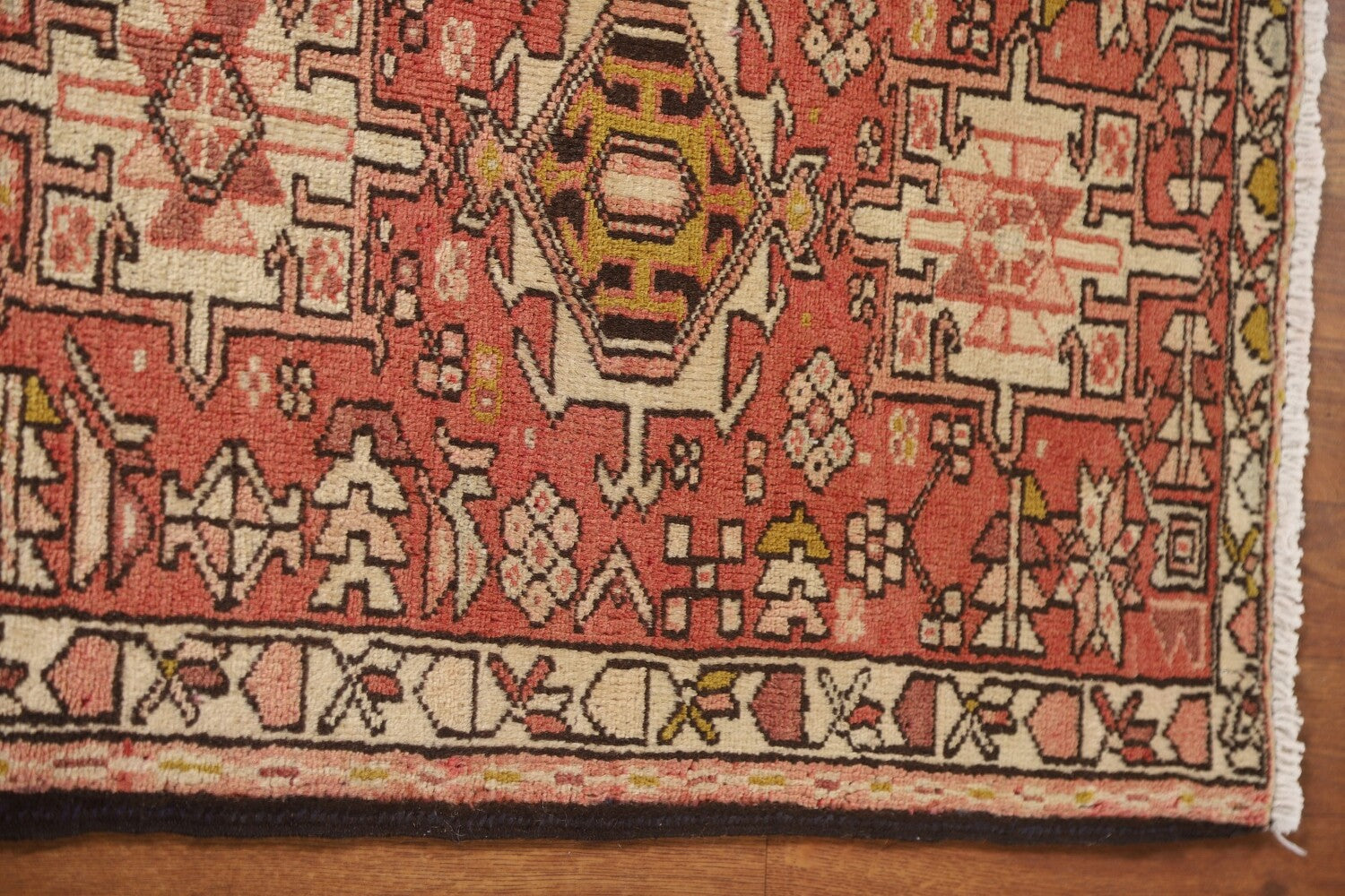 A Beautiful Genuine Persia ( Persia ) Gharajeh rug is Hand Knotted by skillful weavers in Persia ( Persia ) with 100% Wool Material. This rug is in Very Good condition. dimensions are 5' 4'' X 2' 0'' in foot and 163 X 61 in centimeter. the primary color is Red.
