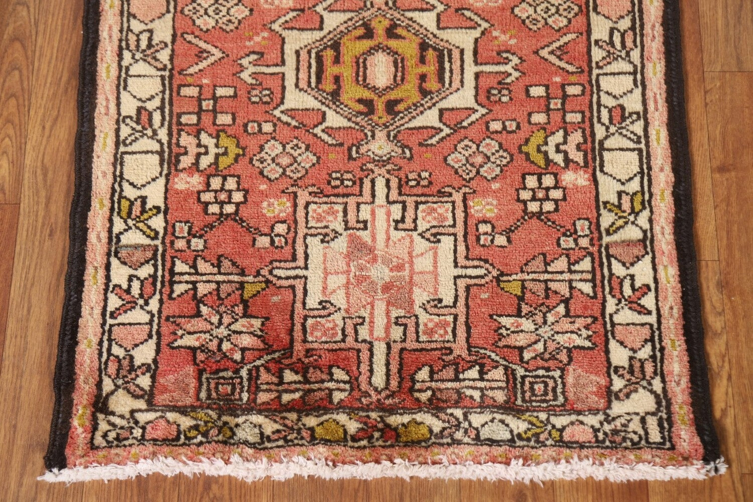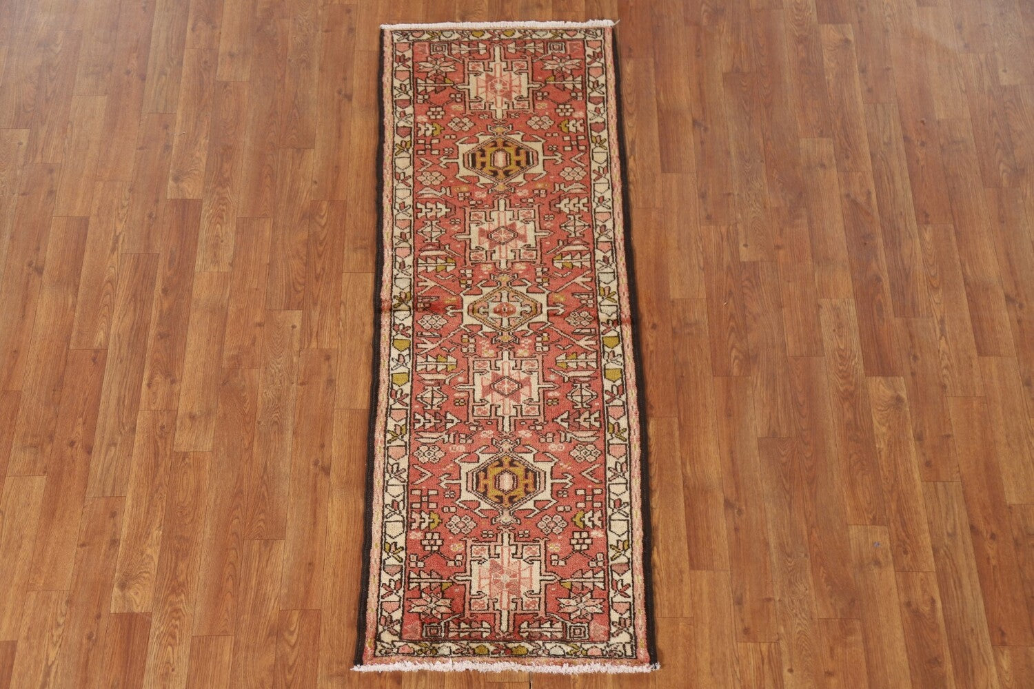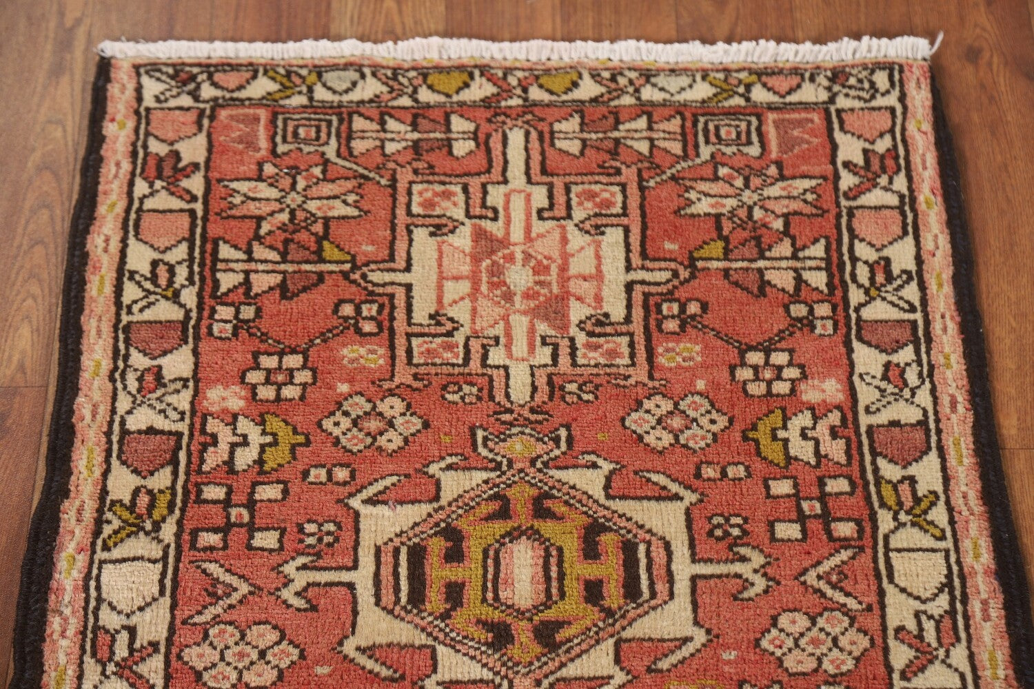 A Beautiful Genuine Persia ( Persia ) Gharajeh rug is Hand Knotted by skillful weavers in Persia ( Persia ) with 100% Wool Material. This rug is in Very Good condition. dimensions are 5' 4'' X 2' 0'' in foot and 163 X 61 in centimeter. the primary color is Red.