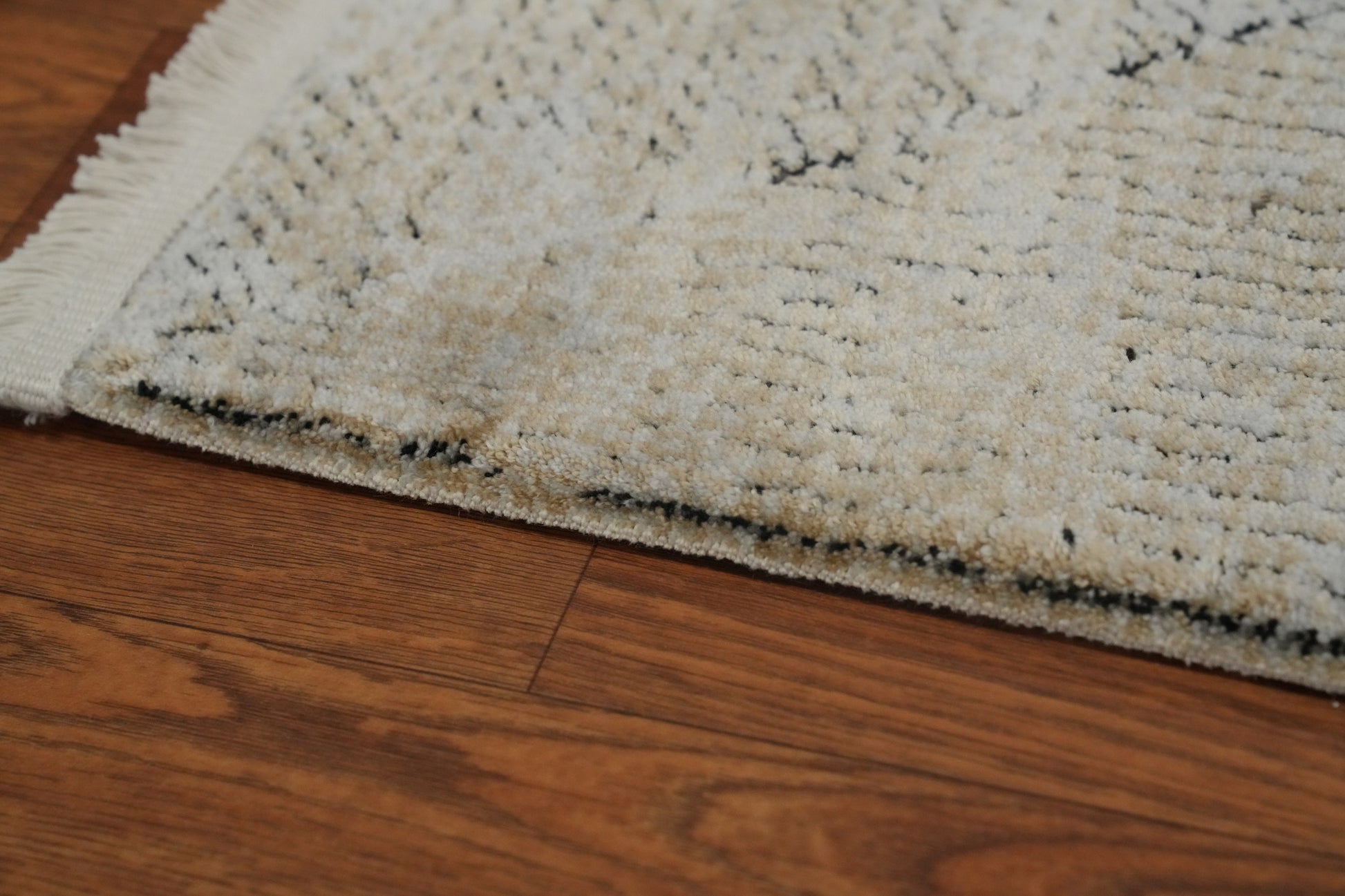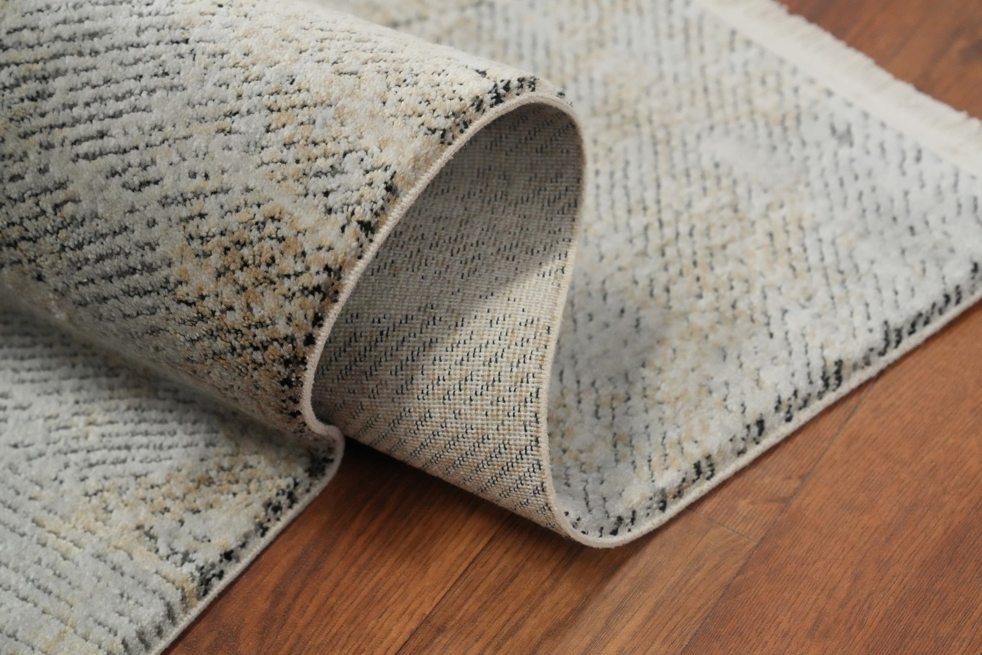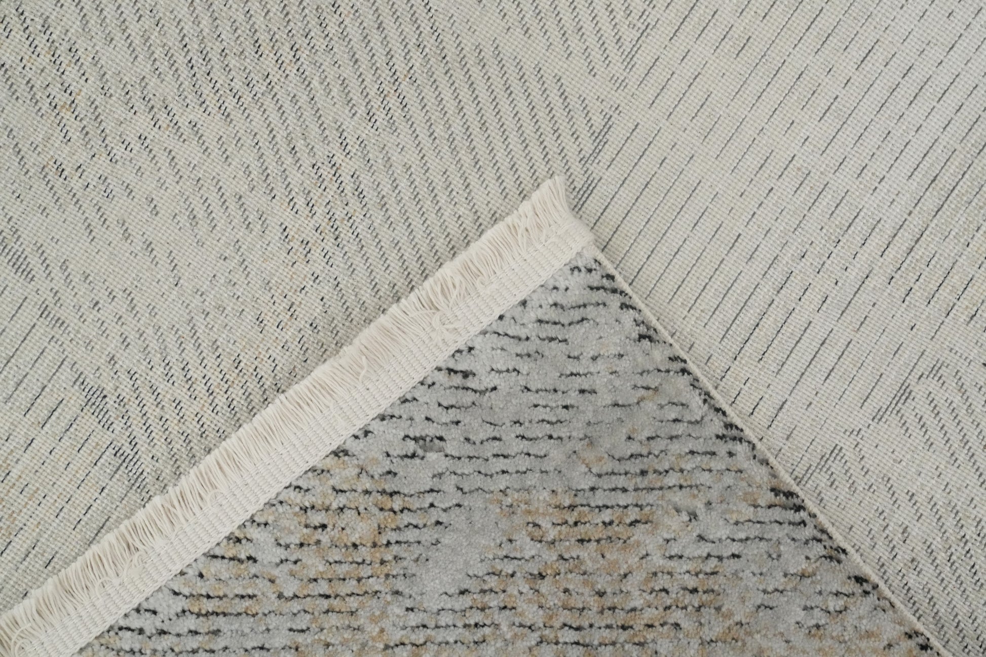 A Beautiful Genuine Turkey Modern rug is Machine Made by skillful weavers in Turkey with Polyester Material. This rug is in New, First Quality condition. dimensions are 7' 5'' X 5' 2'' in foot and 226 X 157 in centimeter. the primary color is Greys & Charcoal.