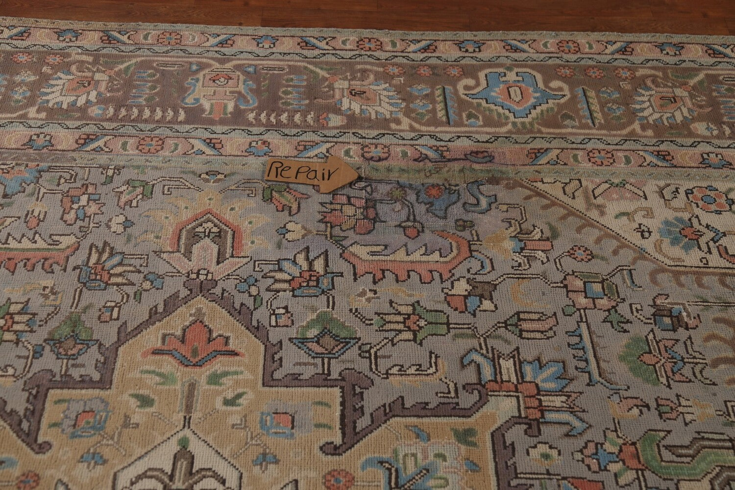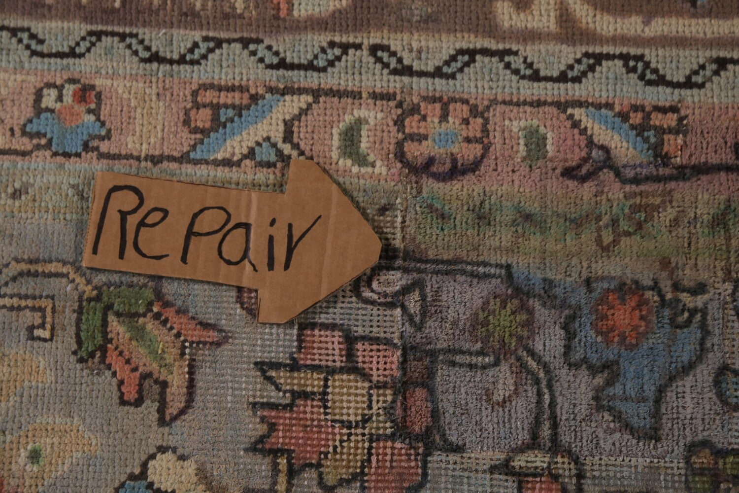 A Beautiful Genuine Persia ( Persia ) Tabriz rug is Hand Knotted by skillful weavers in Persia ( Persia ) with 100% Wool Material. This rug is in Very Good ( Evenly Low Pile-Repair) condition. dimensions are 12' 5'' X 9' 10'' in foot and 378 X 300 in centimeter. the primary color is Greys & Charcoal.