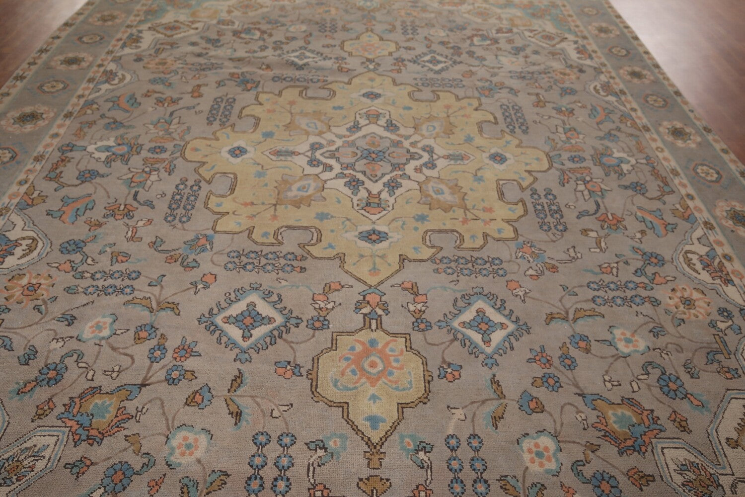 Geometric Gray Tabriz Persian Area Rug 10x13