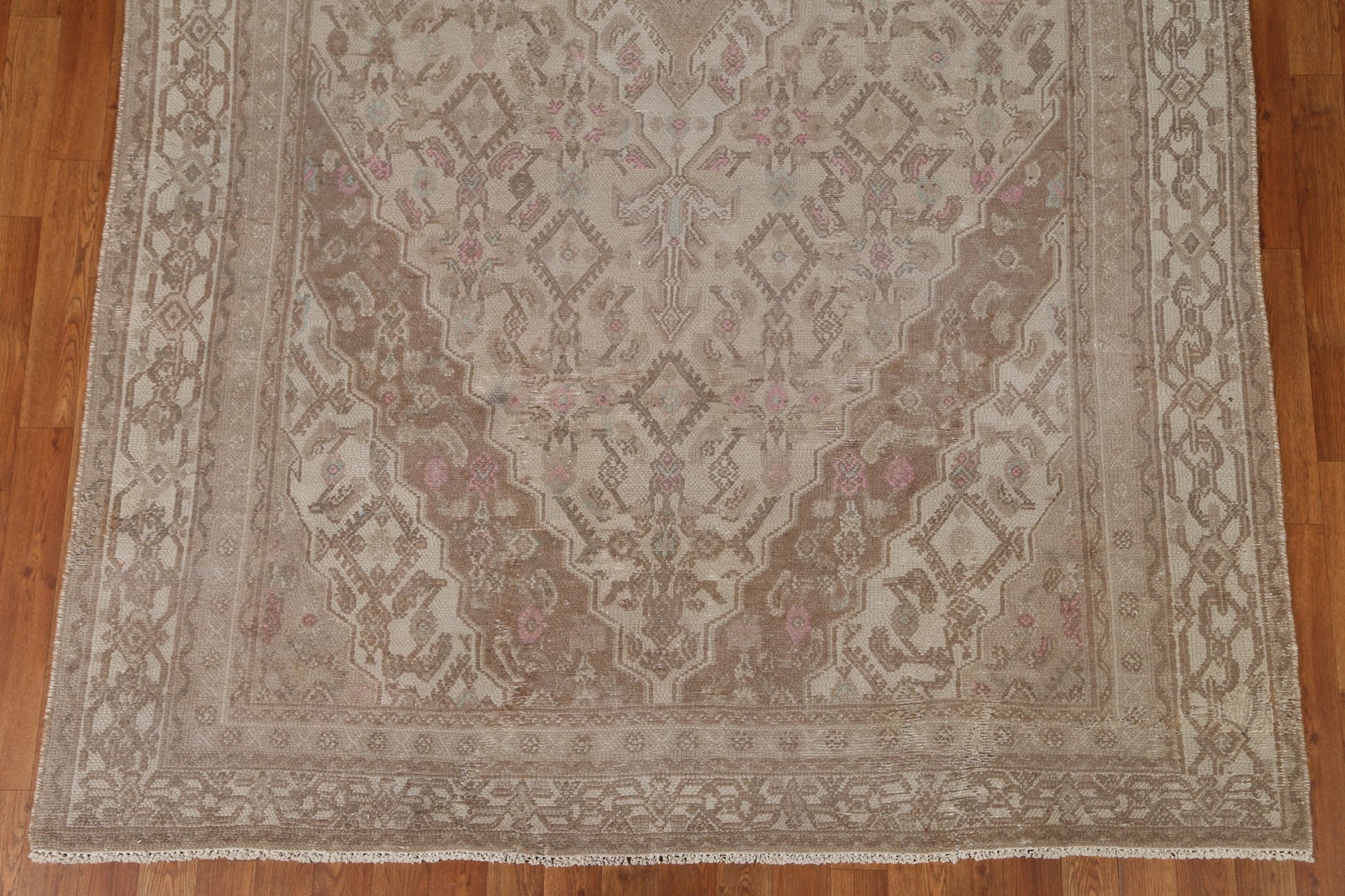 A Beautiful Genuine Persia ( Persia ) Hamedan rug is Hand Knotted by skillful weavers in Persia ( Persia ) with 100% Wool Material. This rug is in Very Good (Evenly Low Pile) condition. dimensions are 9' 10'' X 6' 2'' in foot and 300 X 188 in centimeter. the primary color is Brown.