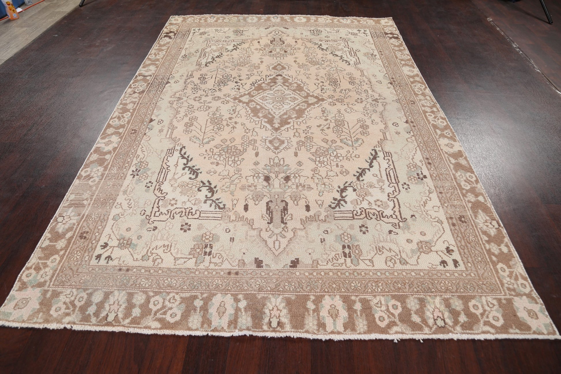 A Beautiful Genuine Persia ( Persia ) Hamedan rug is Hand Knotted by skillful weavers in Persia ( Persia ) with 100% Wool Material. This rug is in Very Good (Evenly Low Pile) condition. dimensions are 9' 1'' X 6' 0'' in foot and 277 X 183 in centimeter. the primary color is Beige & Ivories.