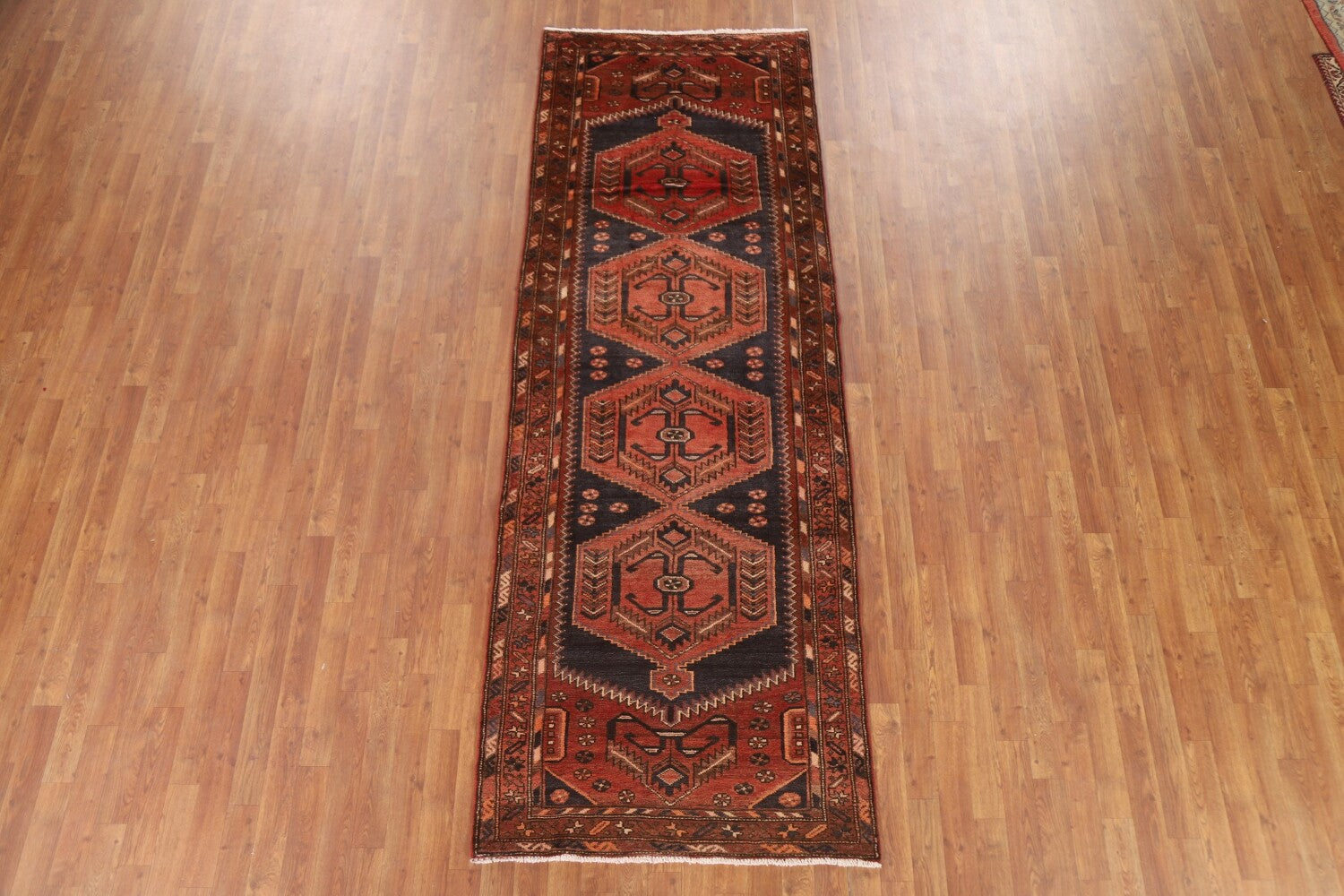 Geometric Hamedan Persian Runner Rug 3x10