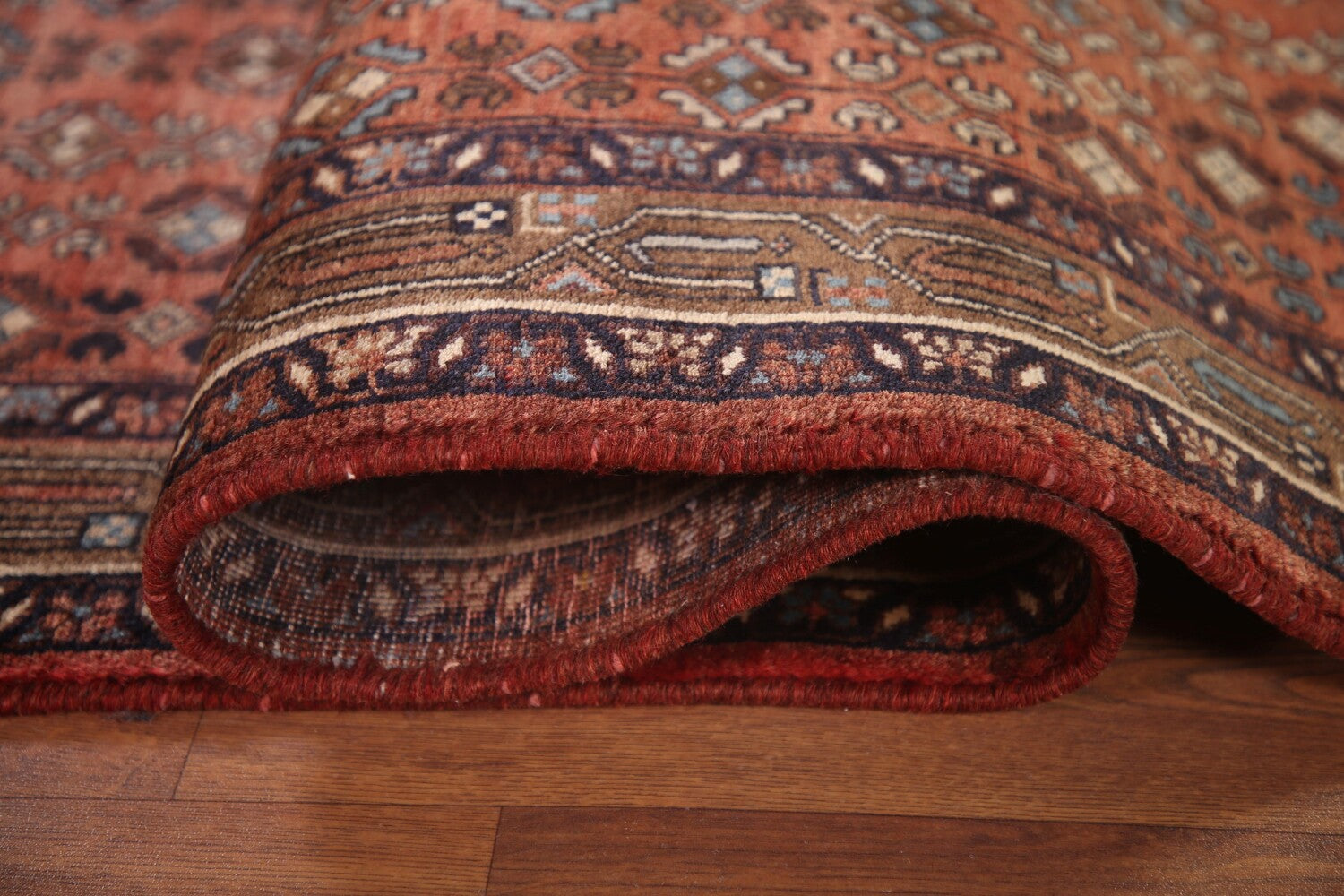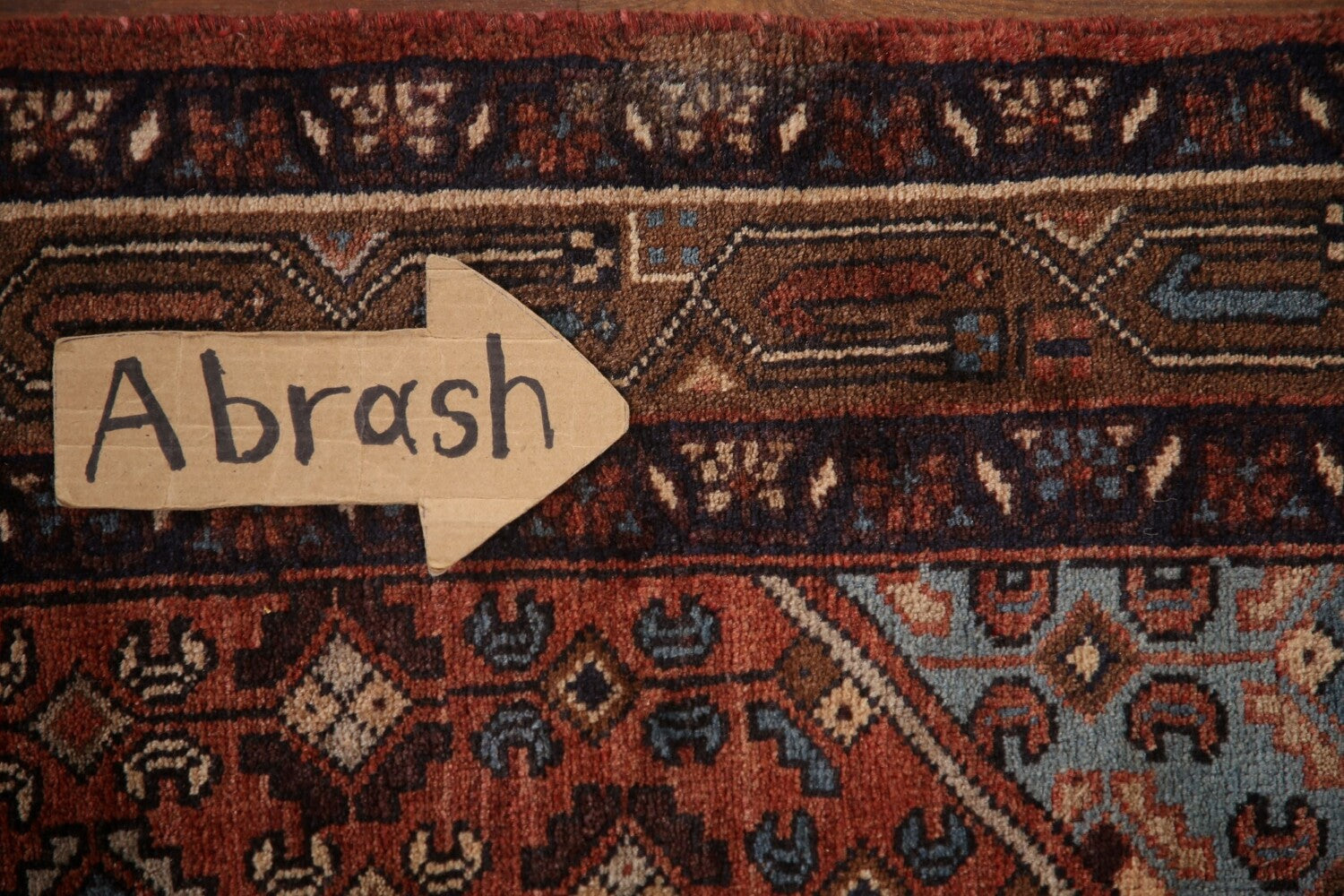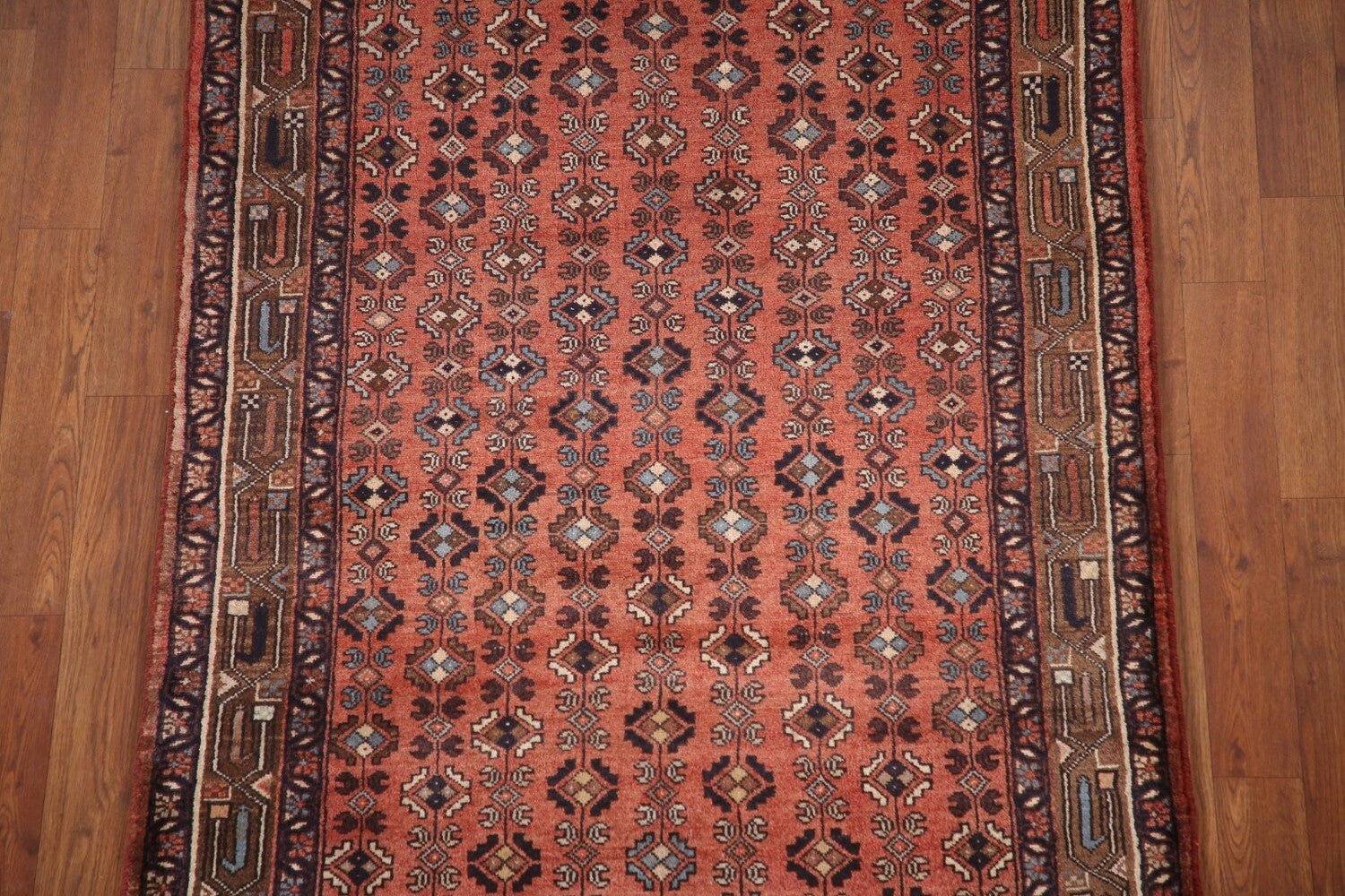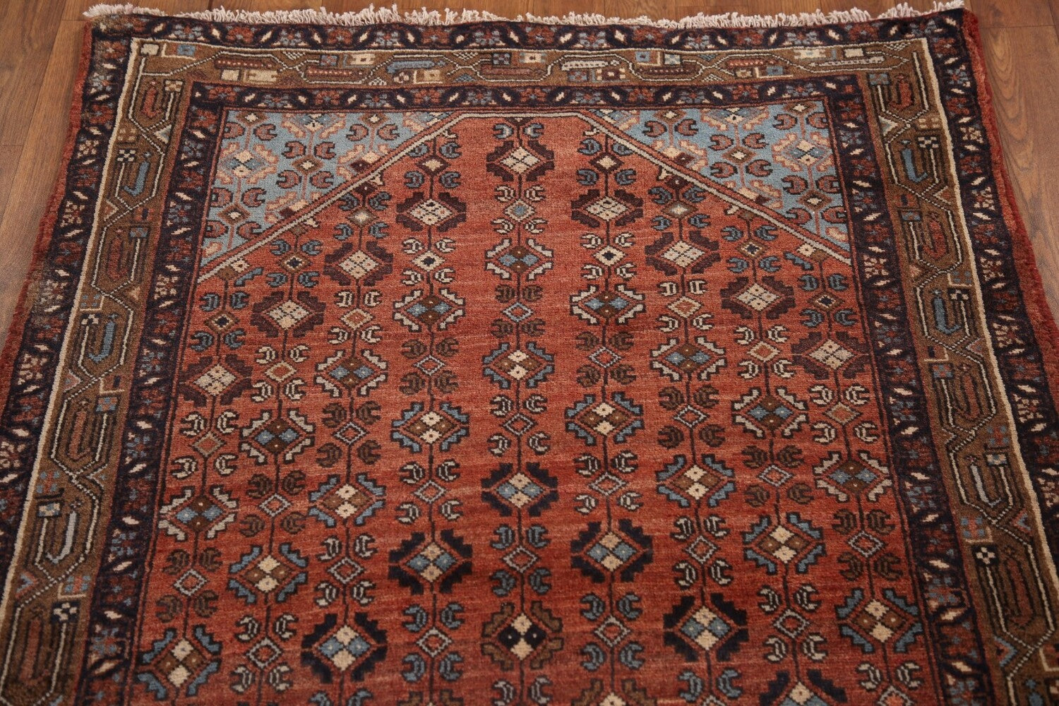 A Beautiful Genuine Persia ( Persia ) Hamedan rug is Hand Knotted by skillful weavers in Persia ( Persia ) with 100% Wool Material. This rug is in Very Good (Abrash) condition. dimensions are 10' 1'' X 3' 4'' in foot and 307 X 102 in centimeter. the primary color is Red.