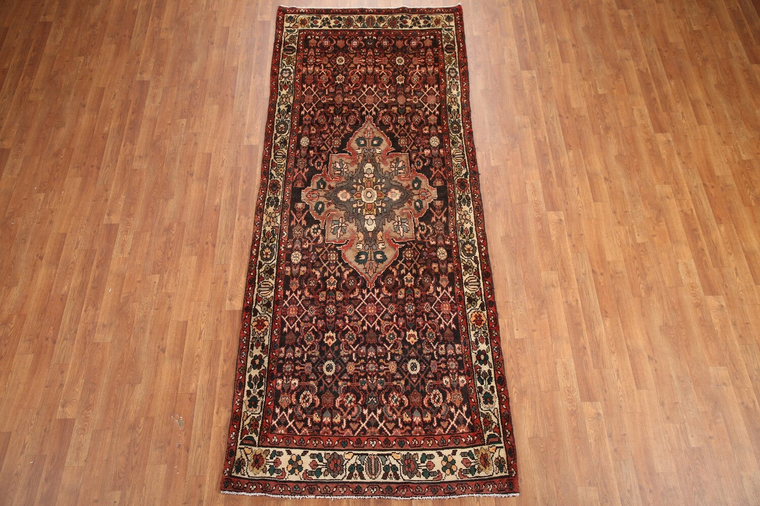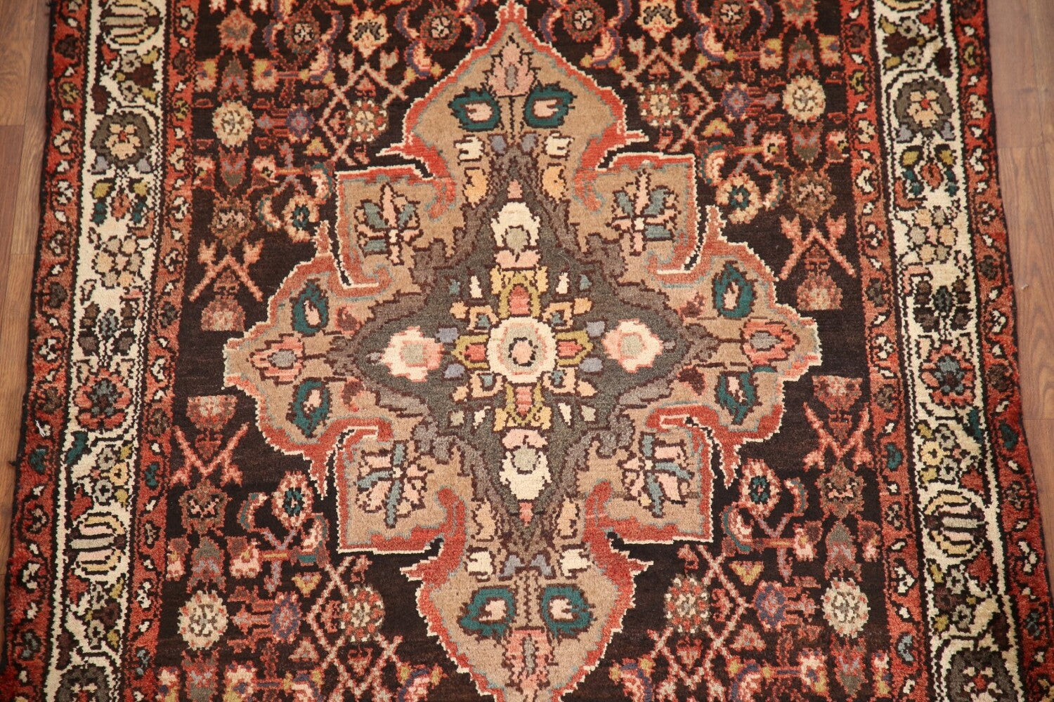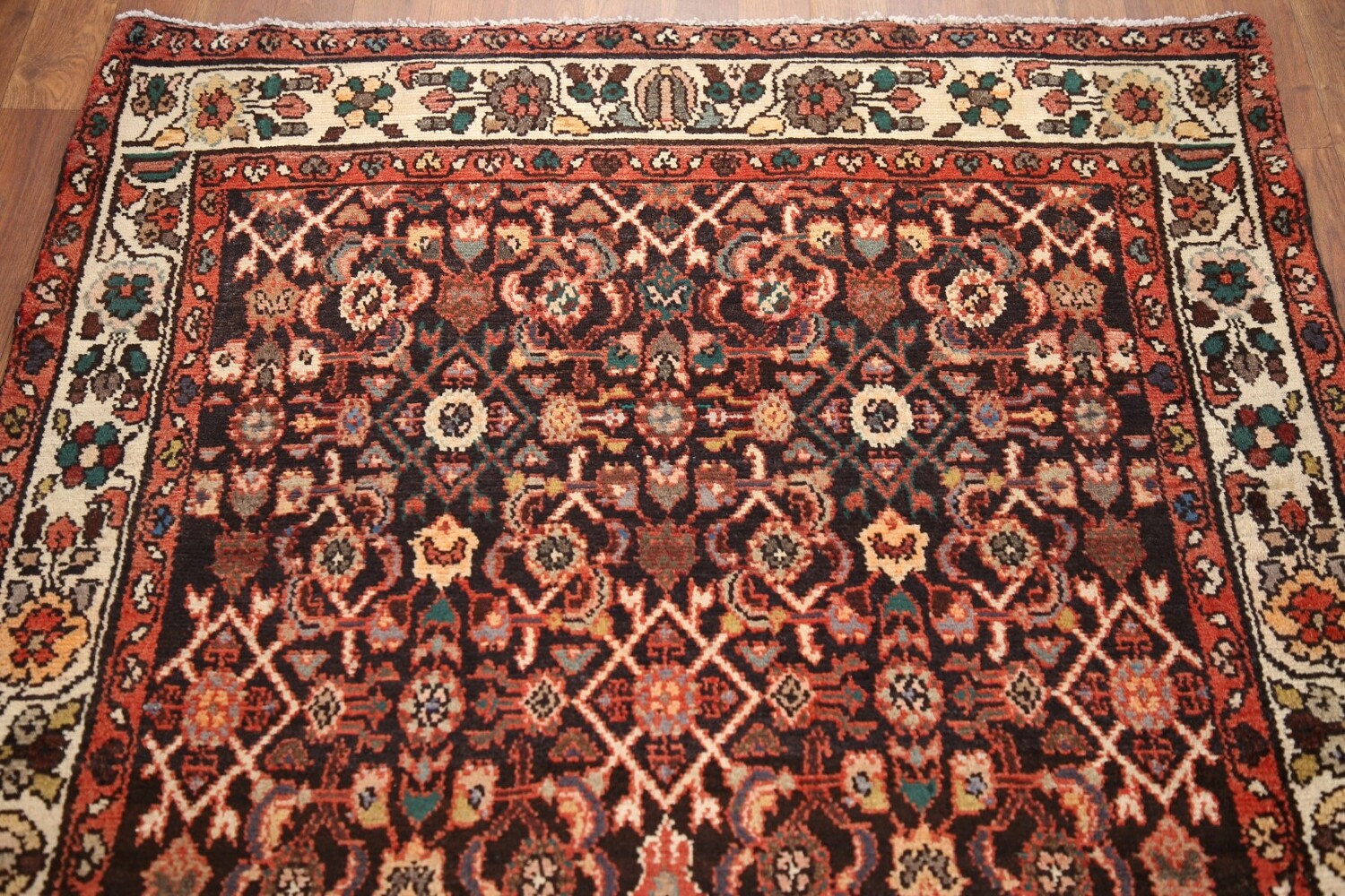 A Beautiful Genuine Persia ( Persia ) Hamedan rug is Hand Knotted by skillful weavers in Persia ( Persia ) with 100% Wool Material. This rug is in Very Good (Abrash) condition. dimensions are 9' 8'' X 3' 10'' in foot and 295 X 117 in centimeter. the primary color is Black.