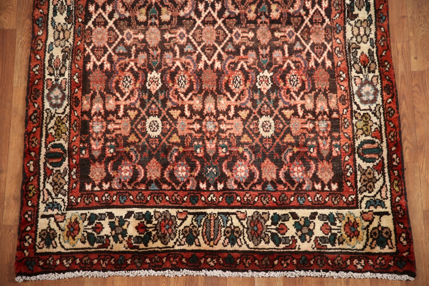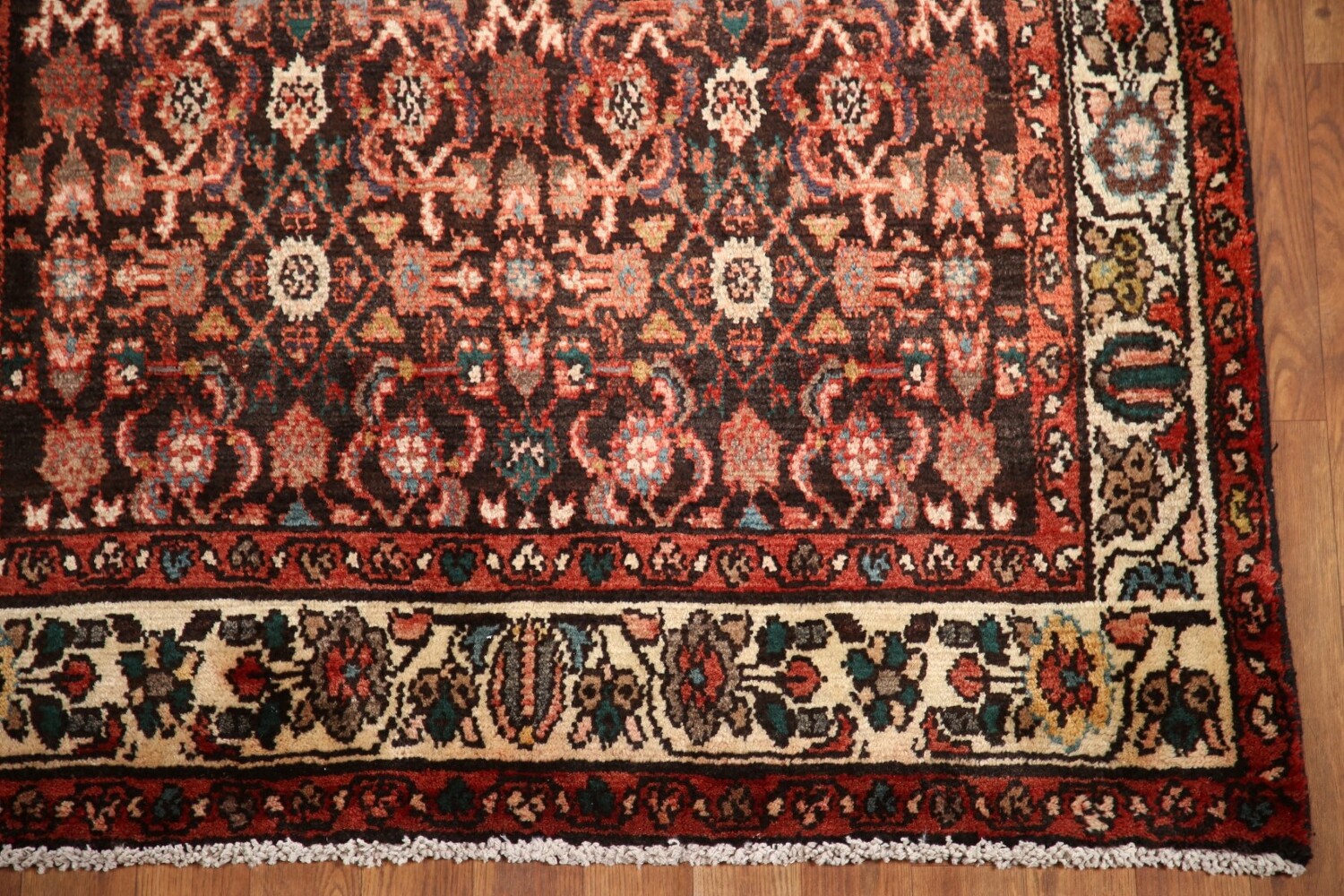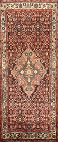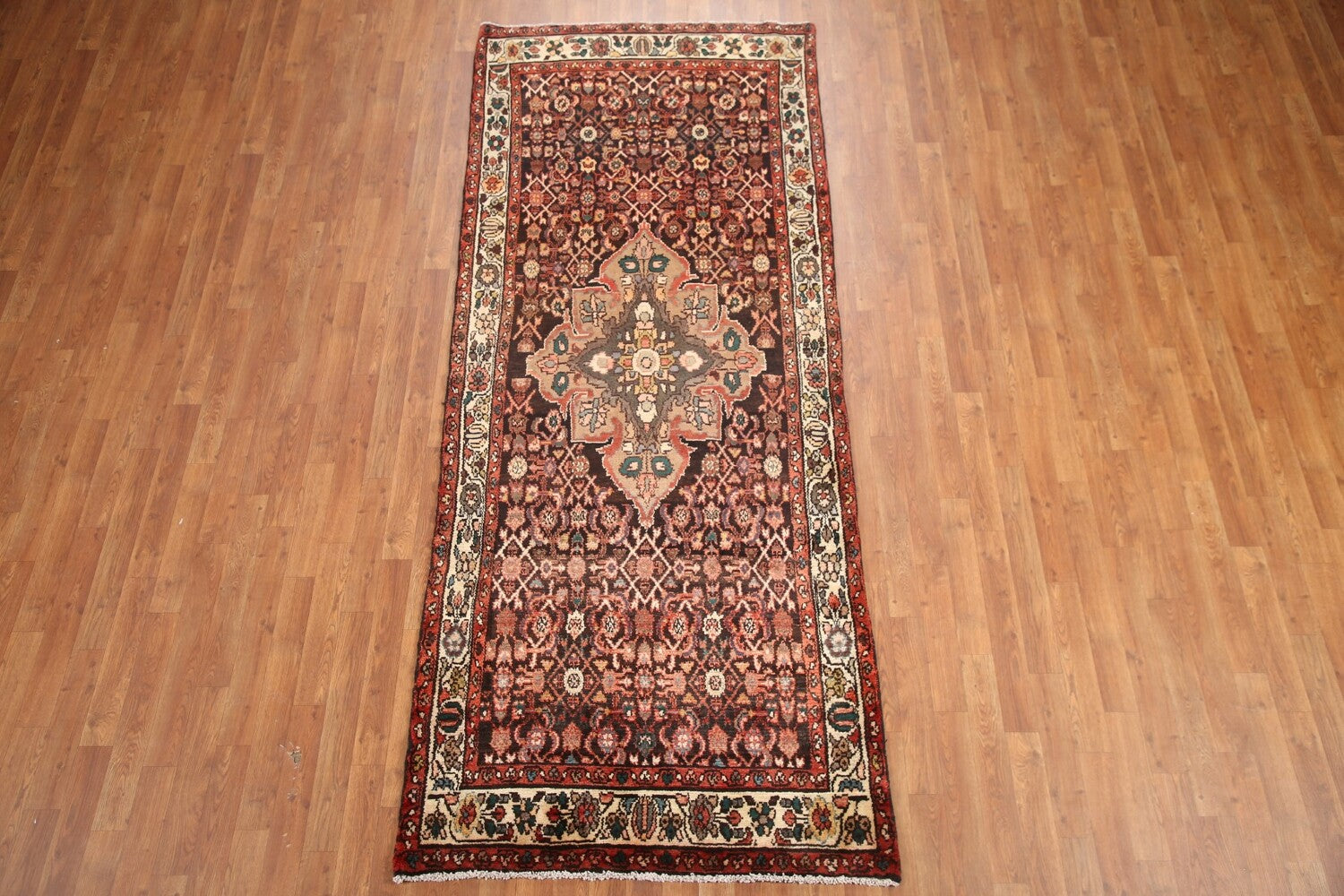 A Beautiful Genuine Persia ( Persia ) Hamedan rug is Hand Knotted by skillful weavers in Persia ( Persia ) with 100% Wool Material. This rug is in Very Good (Abrash) condition. dimensions are 9' 8'' X 3' 10'' in foot and 295 X 117 in centimeter. the primary color is Black.