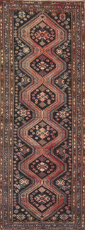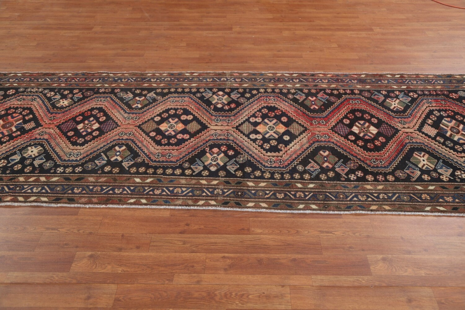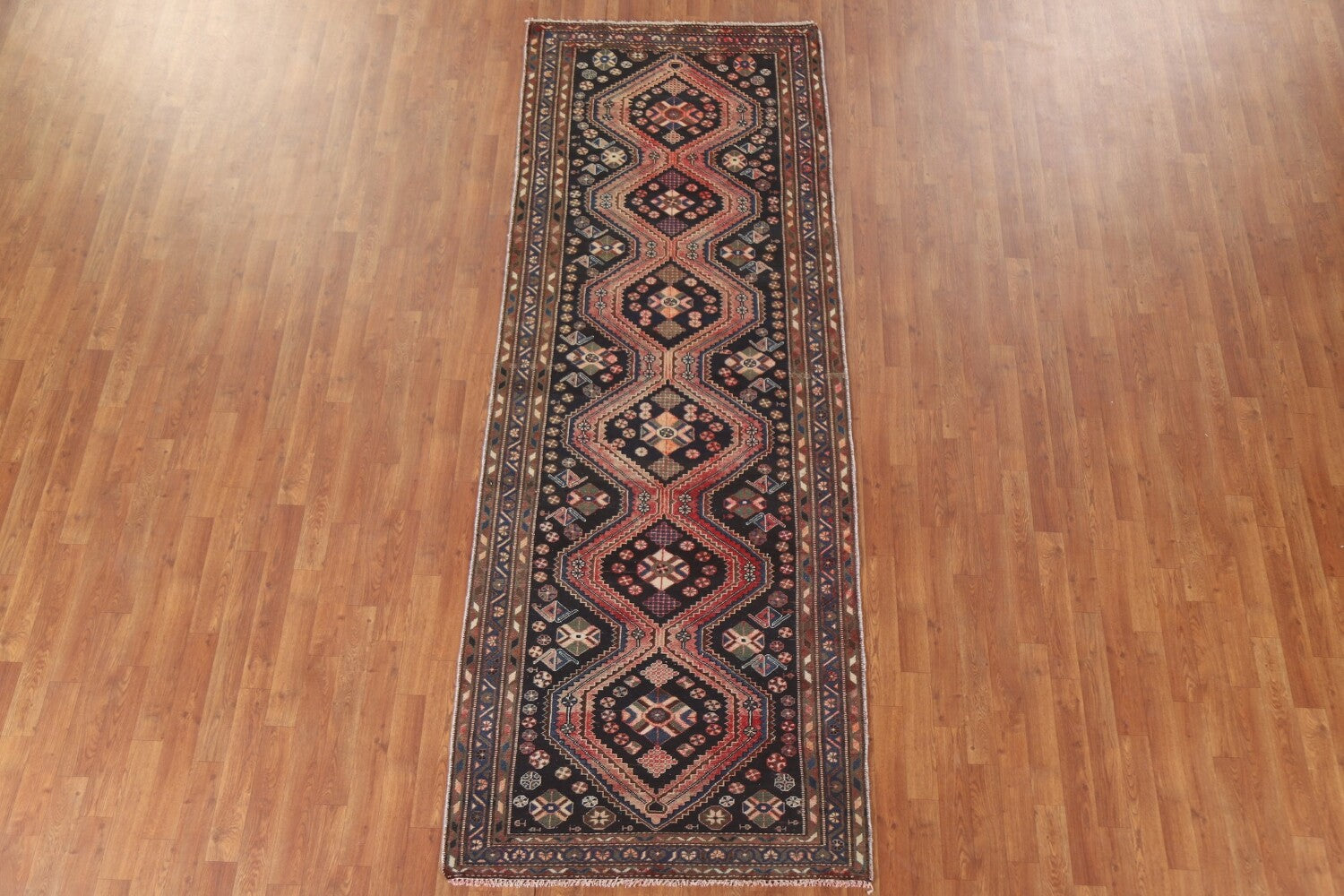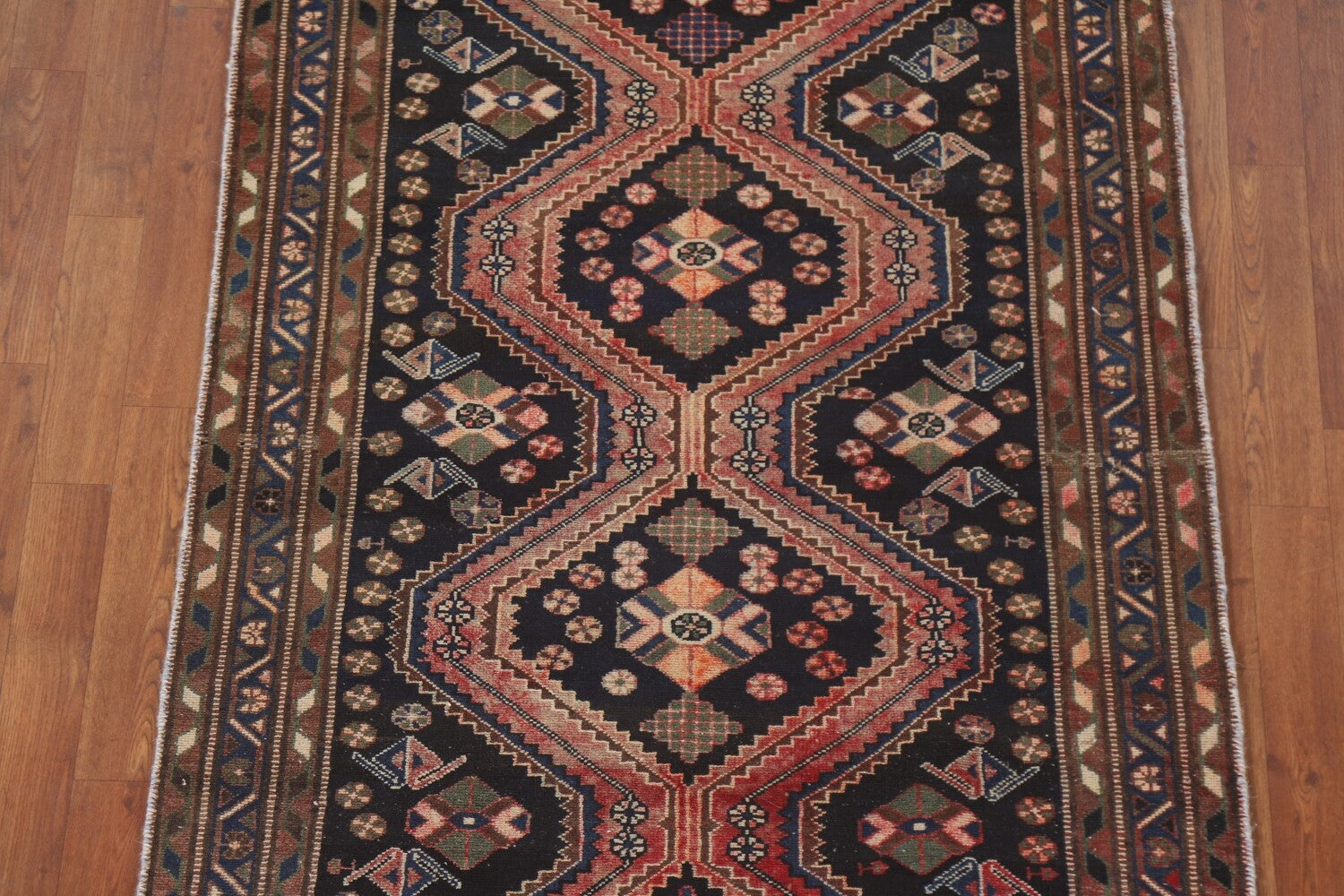 A Beautiful Genuine Persia ( Persia ) Hamedan rug is Hand Knotted by skillful weavers in Persia ( Persia ) with 100% Wool Material. This rug is in Very Good condition. dimensions are 9' 10'' X 3' 8'' in foot and 300 X 112 in centimeter. the primary color is Navy Blue & Blues.