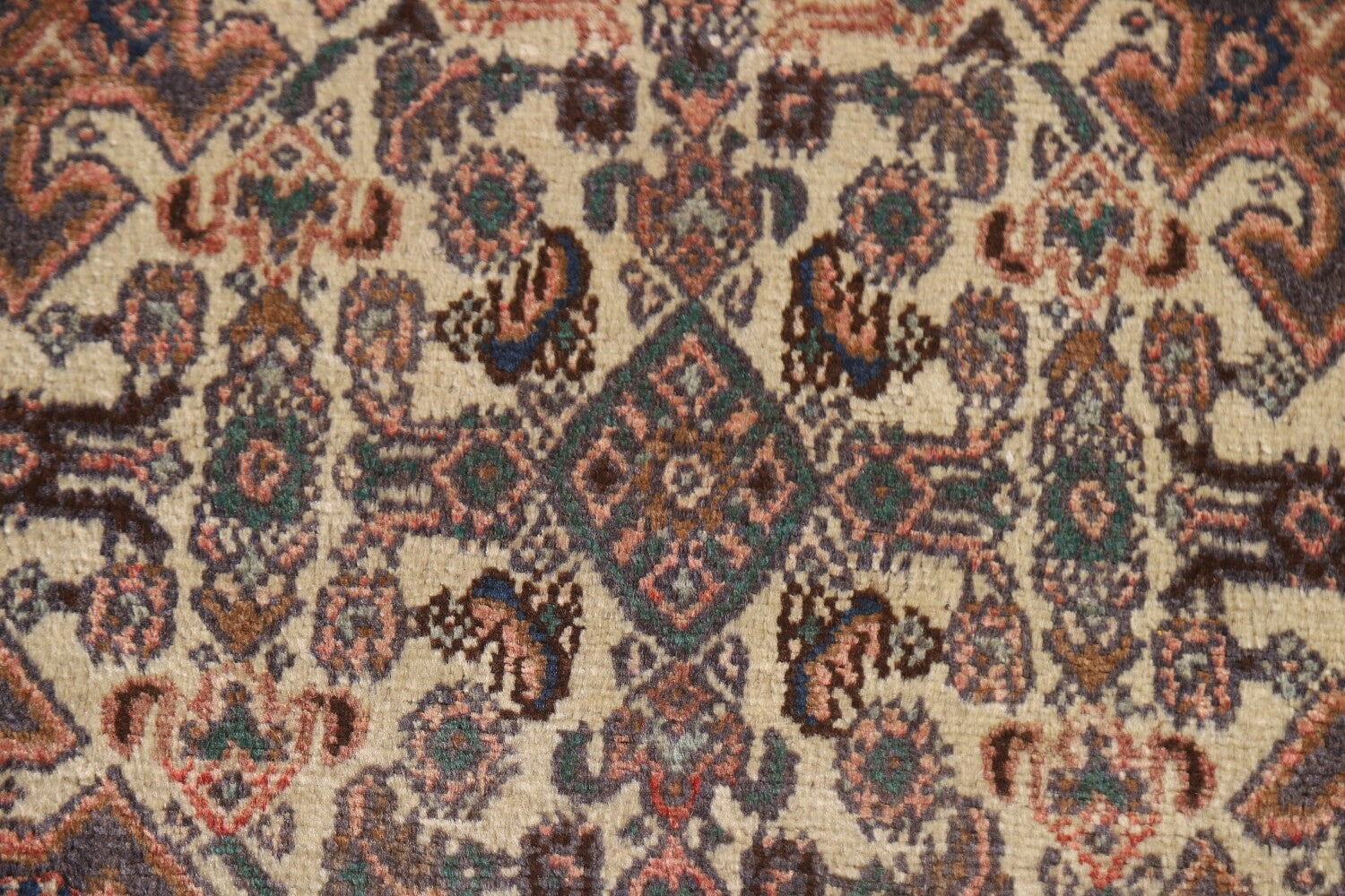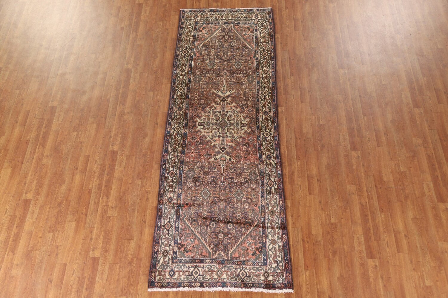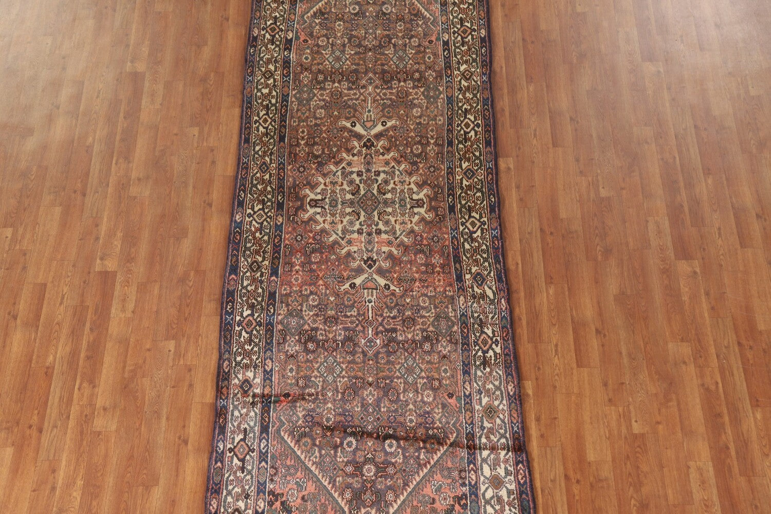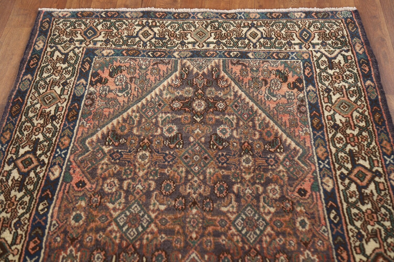 A Beautiful Genuine Persia ( Persia ) Hamedan rug is Hand Knotted by skillful weavers in Persia ( Persia ) with 100% Wool Material. This rug is in Very Good (Abrash) condition. dimensions are 10' 3'' X 3' 6'' in foot and 312 X 107 in centimeter. the primary color is Multi-Colored.
