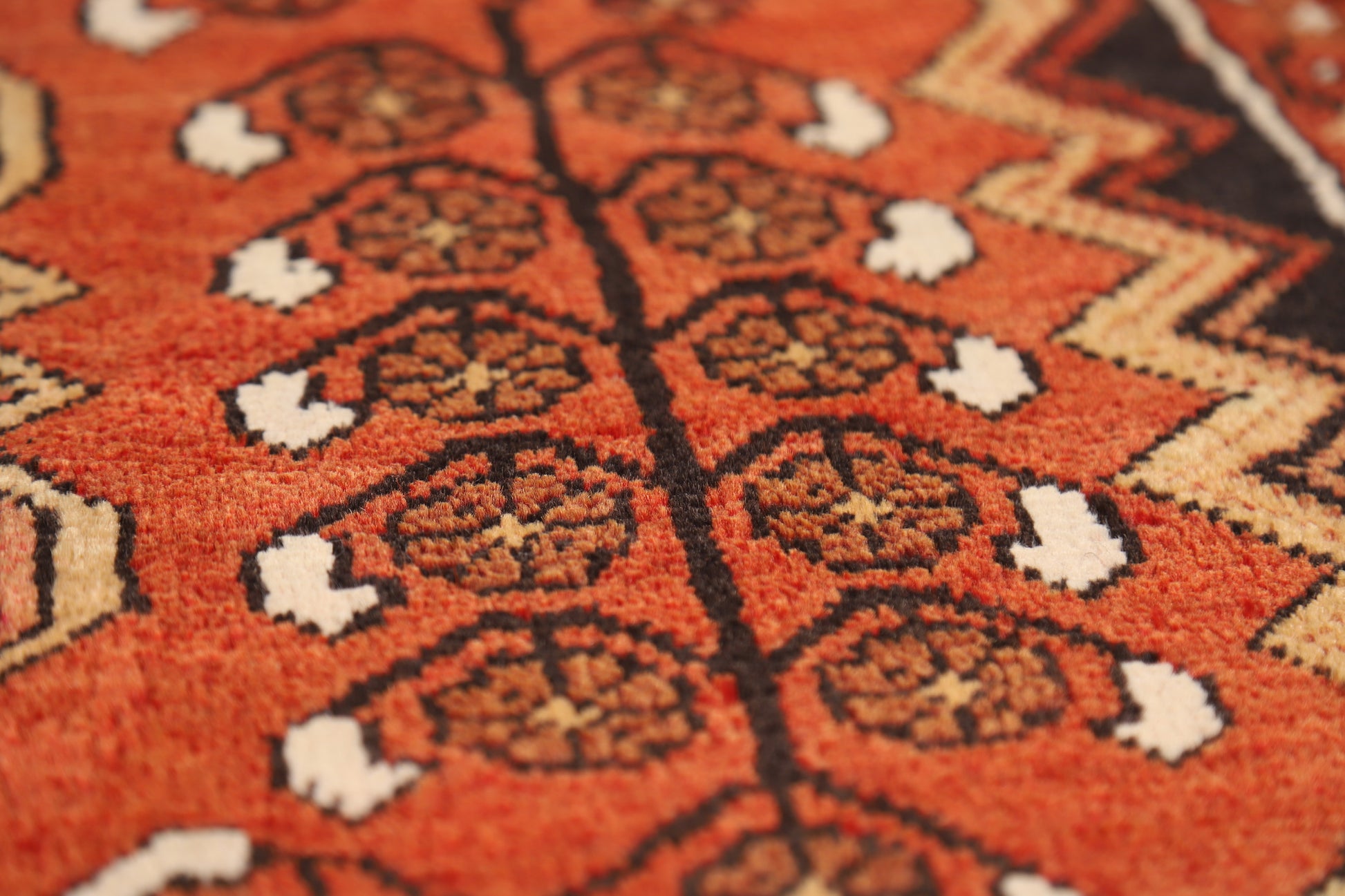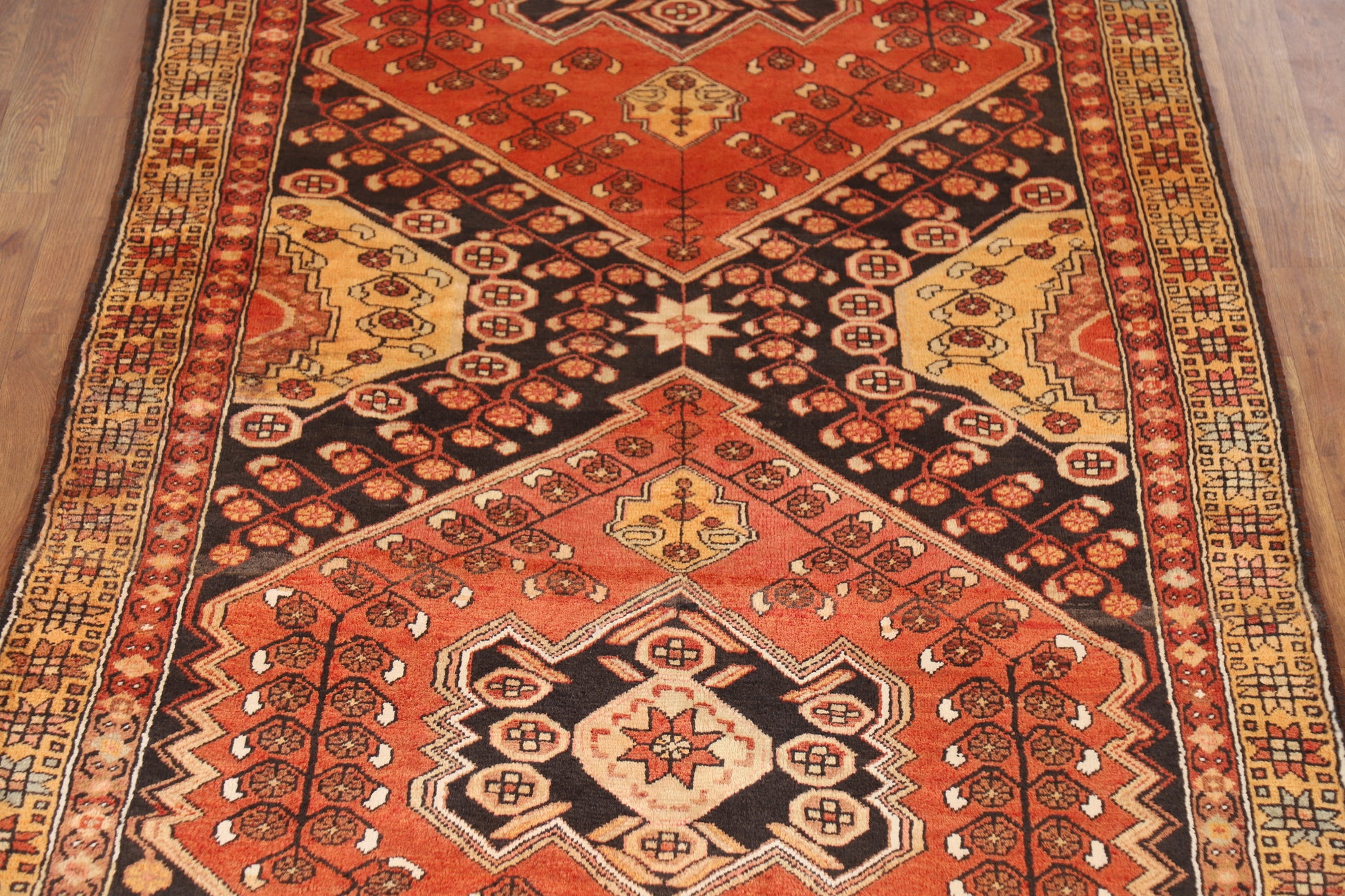 A Beautiful Genuine Persia ( Persia ) Hamedan rug is Hand Knotted by skillful weavers in Persia ( Persia ) with 100% Wool Material. This rug is in Very Good condition. dimensions are 9' 10'' X 4' 5'' in foot and 300 X 135 in centimeter. the primary color is Oranges & Rust.