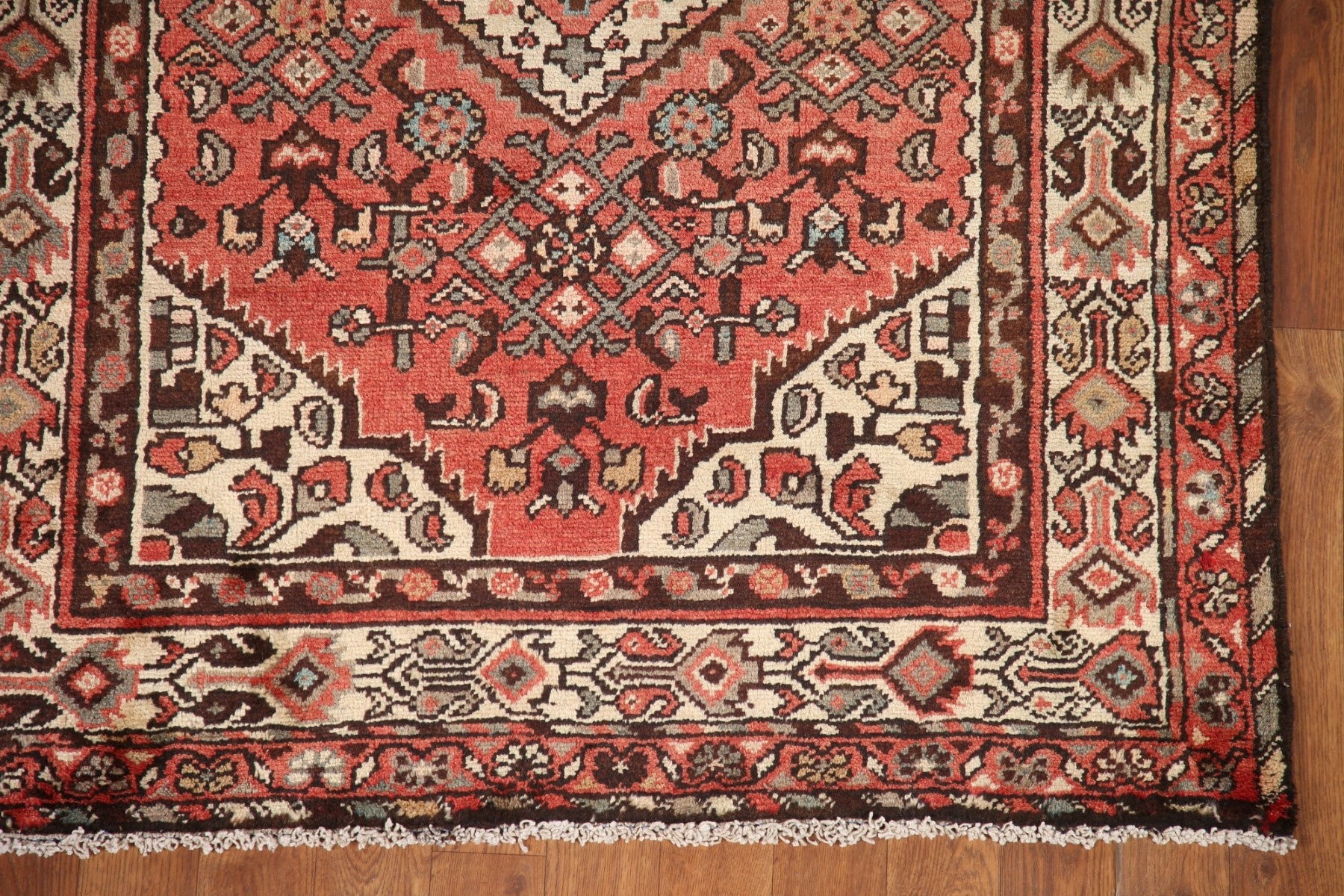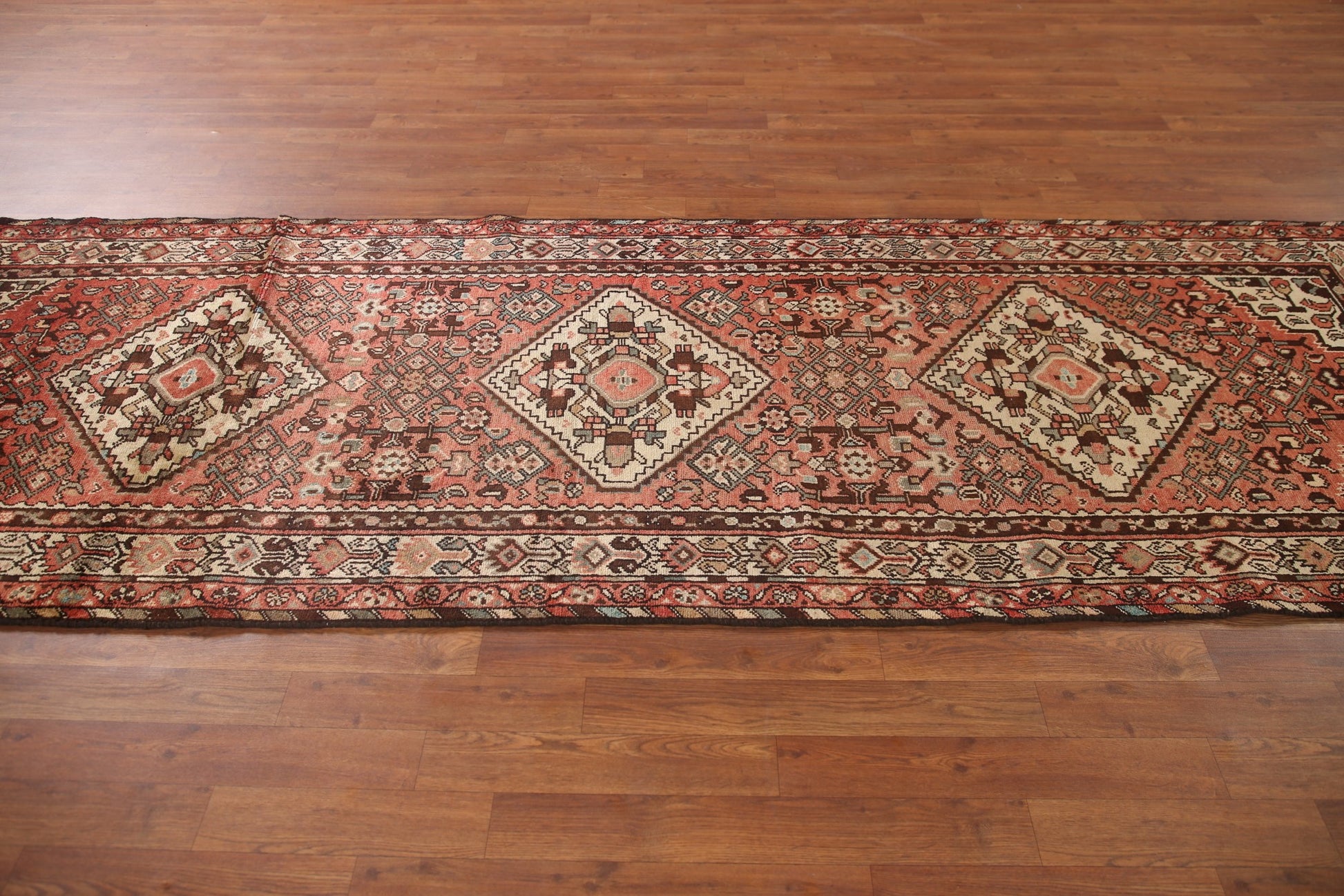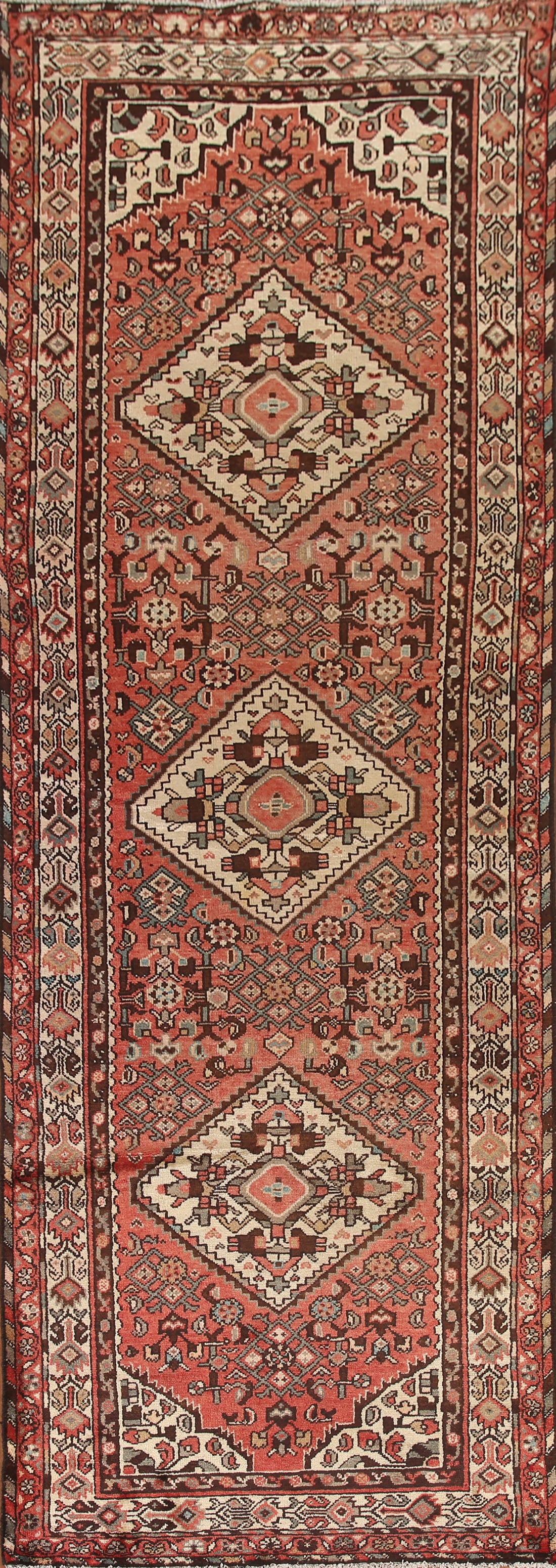 A Beautiful Genuine Persia ( Persia ) Hamedan rug is Hand Knotted by skillful weavers in Persia ( Persia ) with 100% Wool Material. This rug is in Very Good condition. dimensions are 10' 3'' X 3' 6'' in foot and 312 X 107 in centimeter. the primary color is Red.