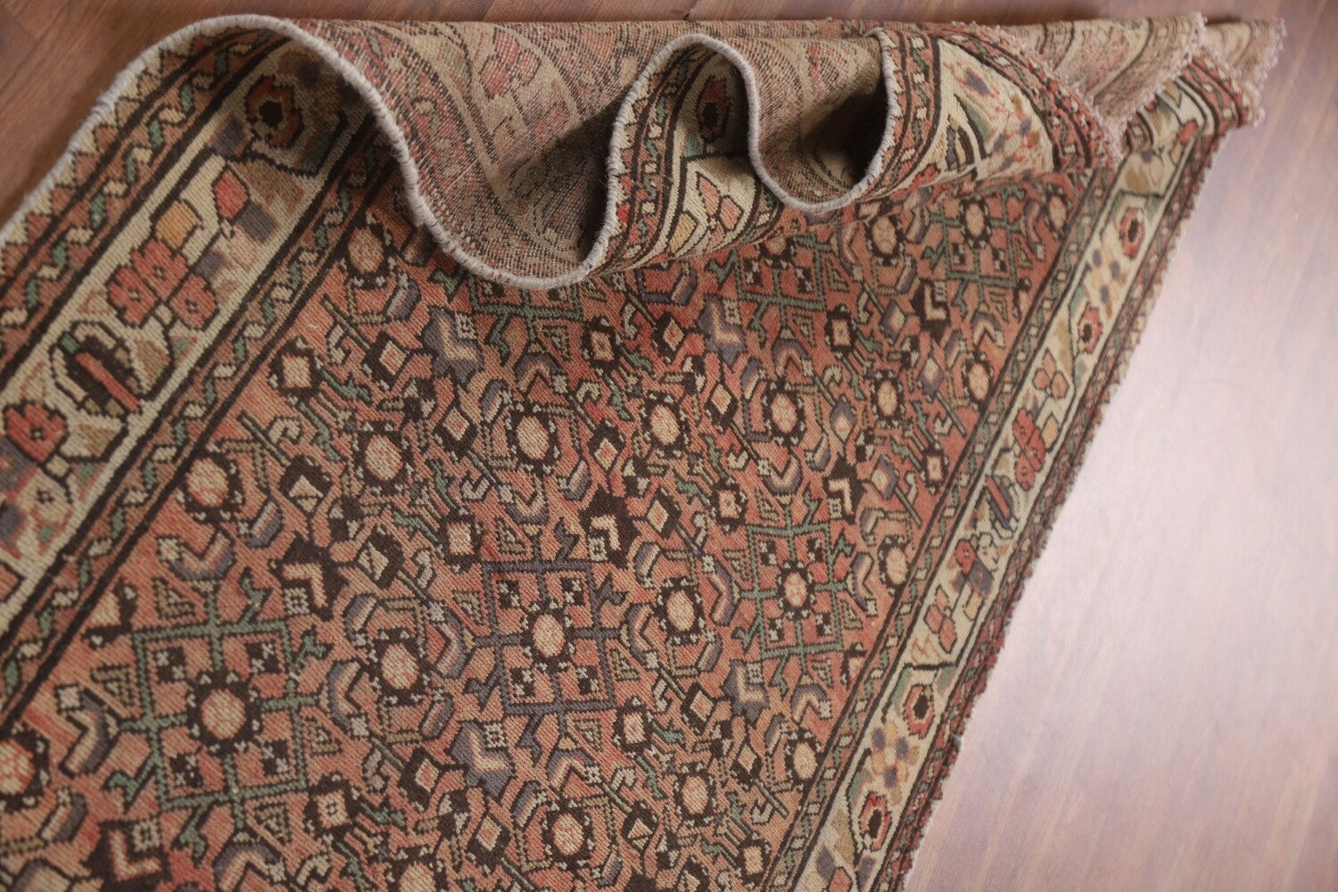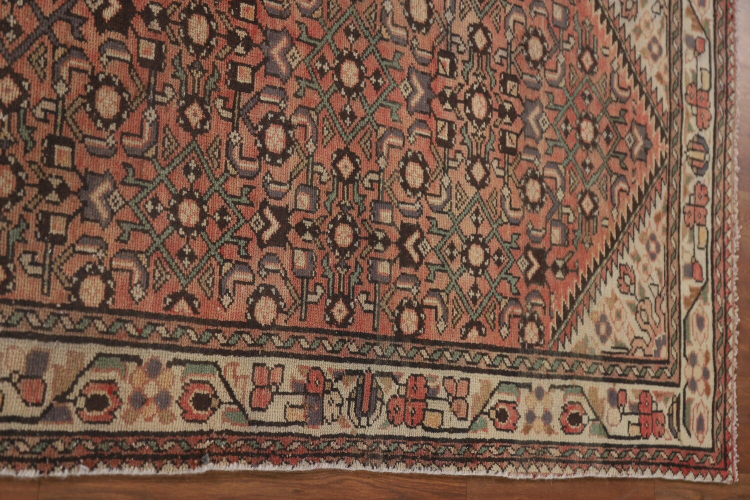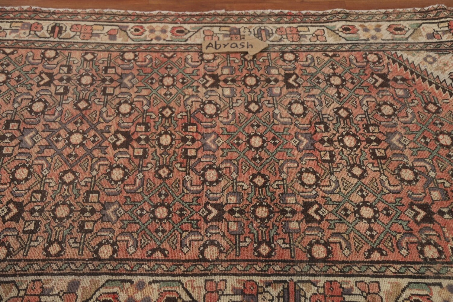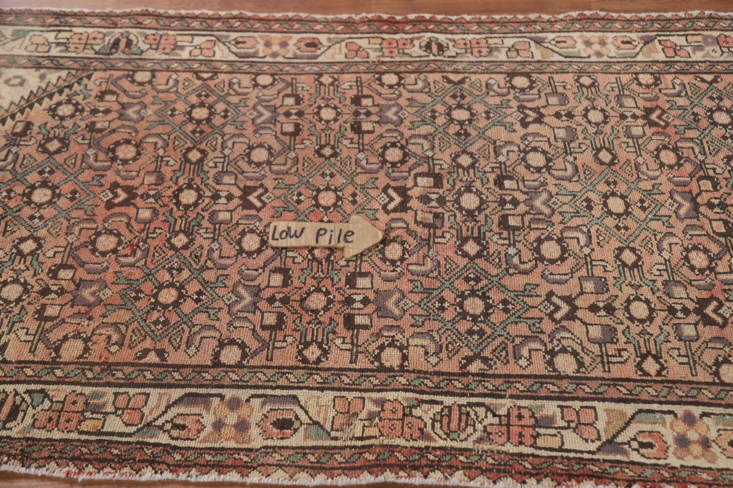 A Beautiful Genuine Persia ( Persia ) Hamedan rug is Hand Knotted by skillful weavers in Persia ( Persia ) with 100% Wool Material. This rug is in Very Good (Abrash-Low Pile) condition. dimensions are 10' 2'' X 3' 6'' in foot and 310 X 107 in centimeter. the primary color is Pink.
