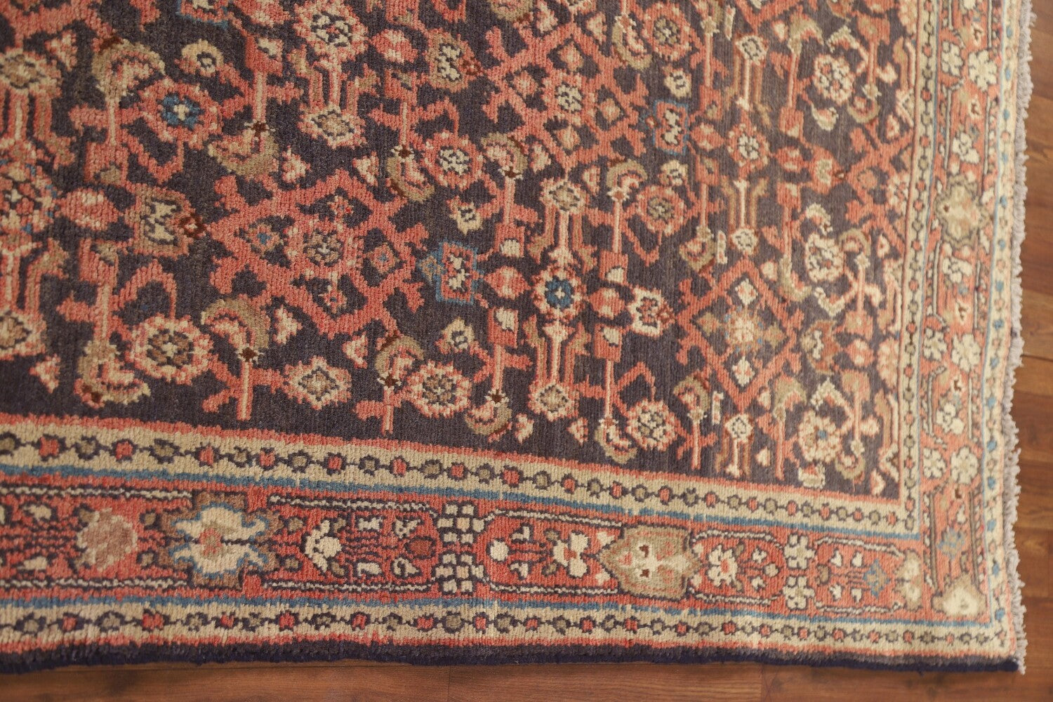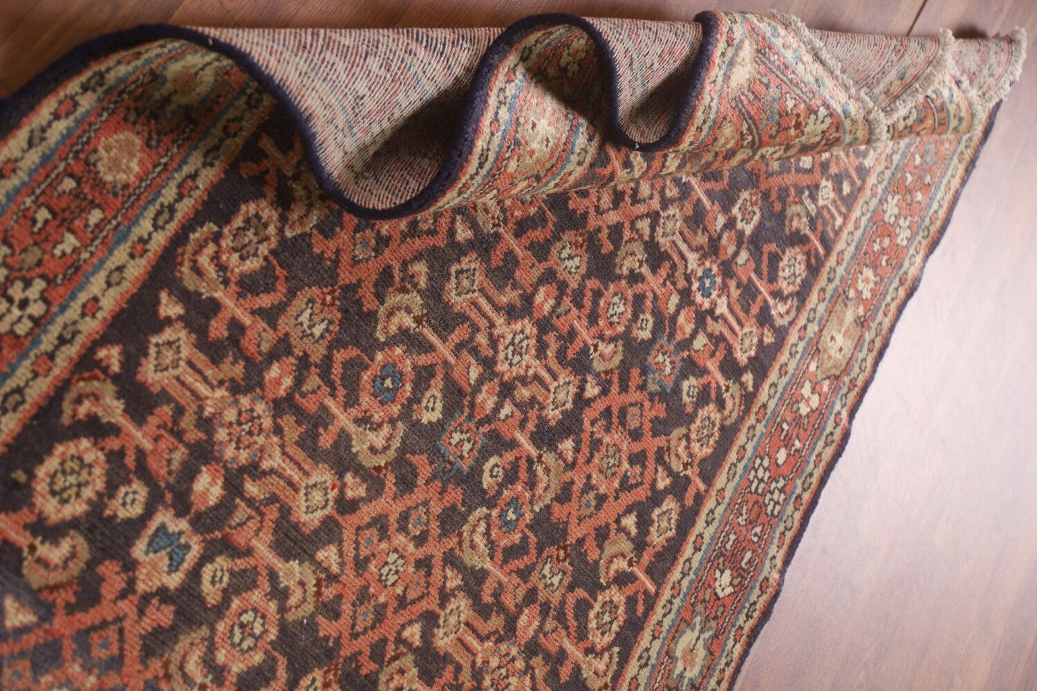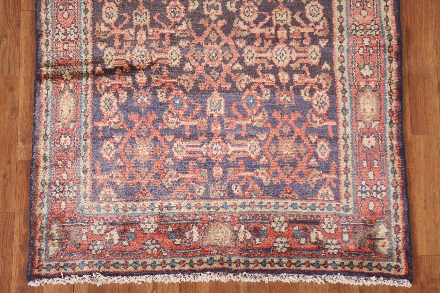 A Beautiful Genuine Persia ( Persia ) Hamedan rug is Hand Knotted by skillful weavers in Persia ( Persia ) with 100% Wool Material. This rug is in Very Good (Abrash) condition. dimensions are 9' 8'' X 3' 7'' in foot and 295 X 109 in centimeter. the primary color is Navy Blue & Blues.