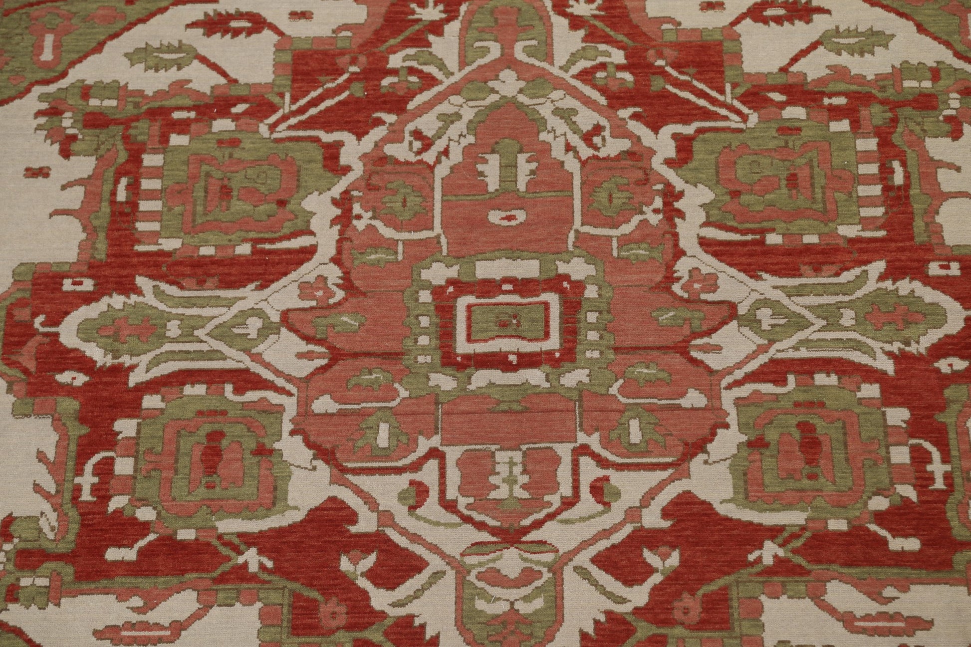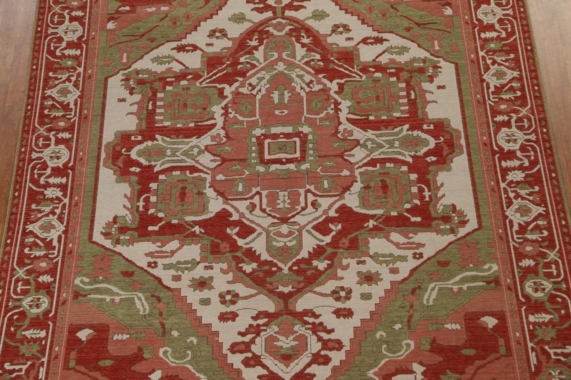 A Beautiful Genuine Turkey Heriz (serapi) rug is Hand Knotted by skillful weavers in Turkey with 100% Wool Material. This rug is in New, First Quality condition. dimensions are 9' 9'' X 8' 0'' in foot and 297 X 244 in centimeter. the primary color is Beige & Ivories.