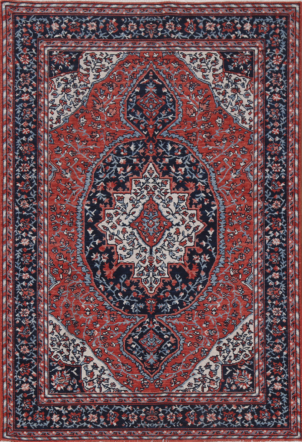 A Beautiful Genuine Turkey Sarouk (Farahan) rug is Hand Knotted by skillful weavers in Turkey with 100% Wool Material. This rug is in New, First Quality condition. dimensions are 5' 10'' X 3' 11'' in foot and 178 X 119 in centimeter. the primary color is Red.